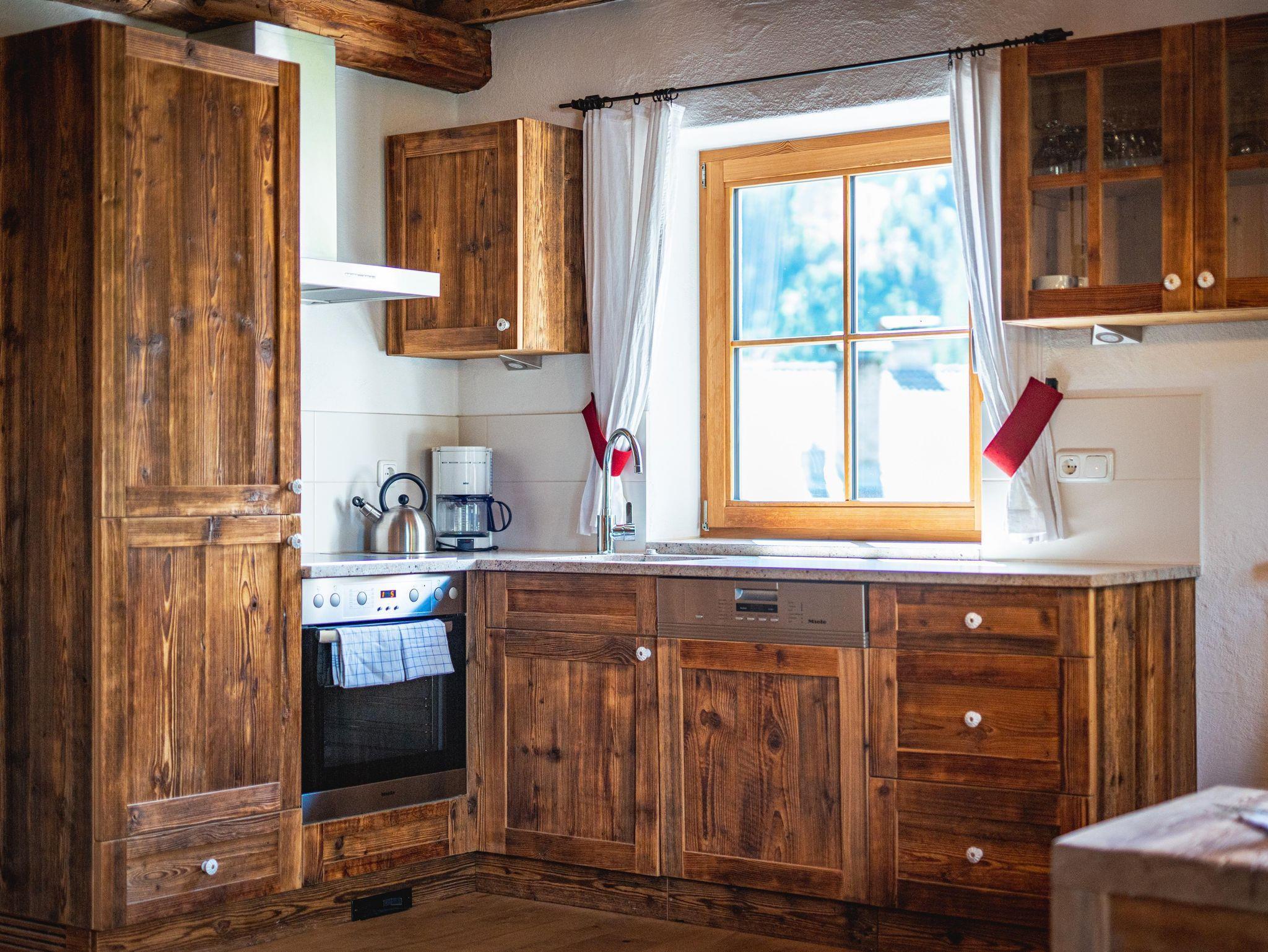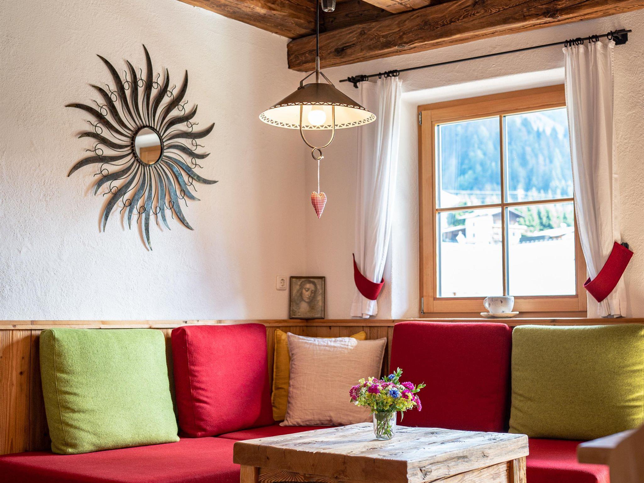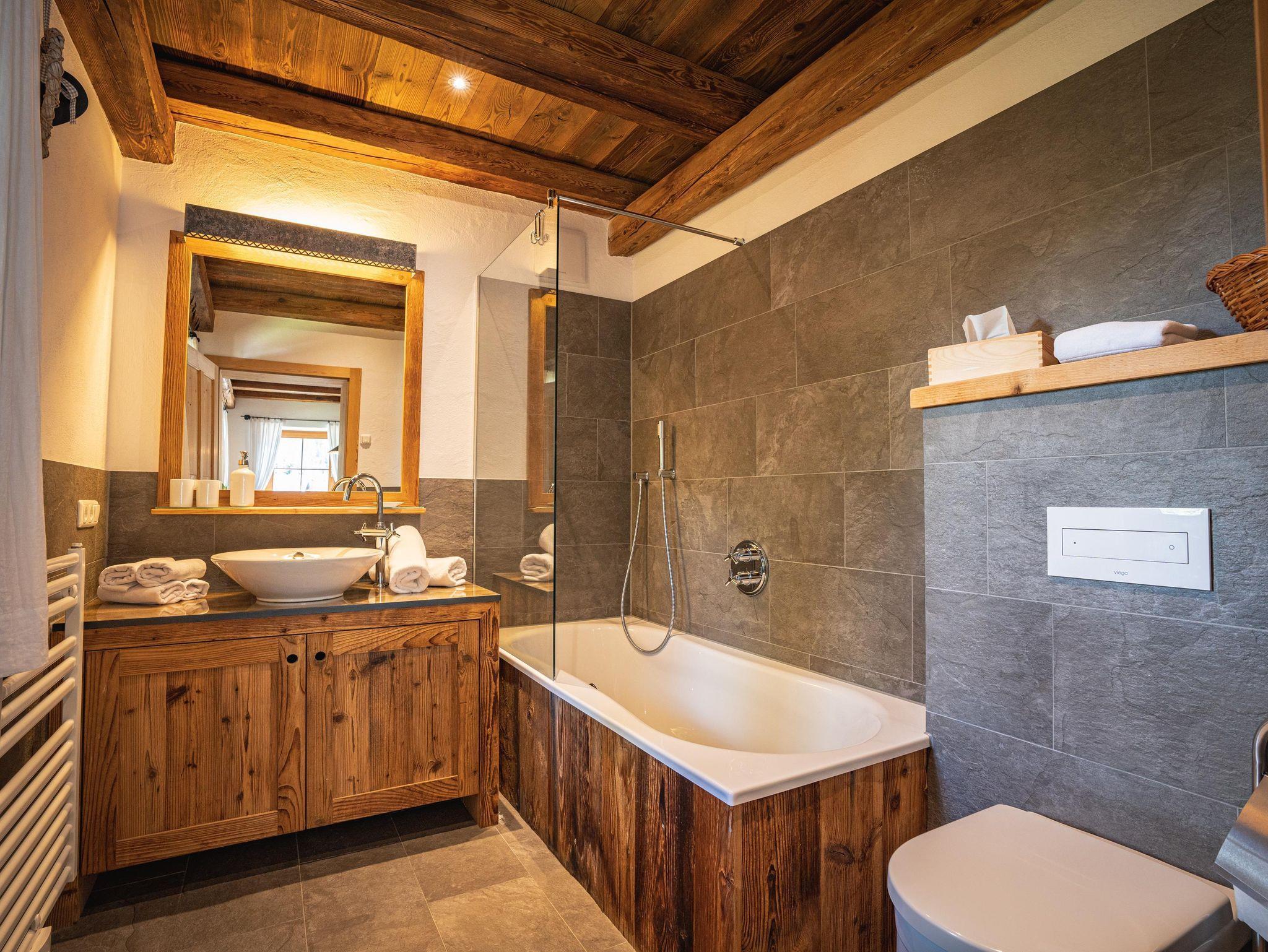 Apartment im Chalet Stil hochwertig mit natürlichen Materialien wie z.B. Holztramdecken, heimischem Holz, Naturstein & Loden ausgestattet.