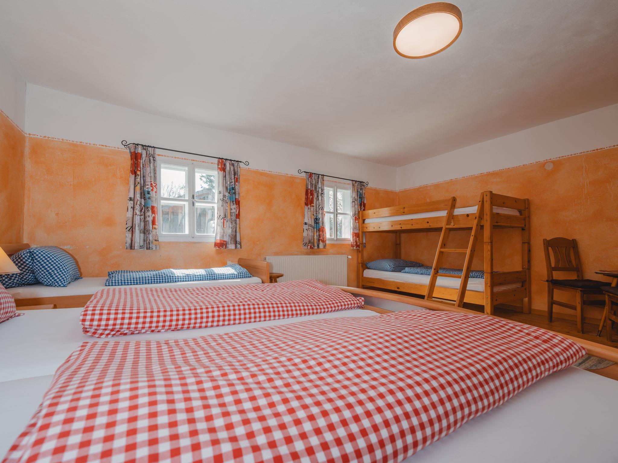 6-room farmhouse 150 m2 on 2 levels. Rustic and cosy furnishings: entrance hall. Small living room with Scandinavian wood stove and satellite TV (flat screen). Large kitchen-/living room (oven, dishwasher, 4 ceramic glass hob hotplates, microwave, electric coffee machine) with dining table and wood-burning stove. 2 showers, 2 sep. WC's. Upper floor: 1 room with 2 beds and 1 double bed. 1 double bedroom. 1 room with 1 french bed (160 cm). 1 large room with 1 bed and 1 x 2 bunk beds, 1 double bed. Wooden floors. Box-room. Very beautiful view of the mountains. Facilities: Internet (WiFi, free). Please note: smoke alarm. The large communal shower room with 2 showers, 2 sinks and 2 toilets is situated on the ground floor. 50201-000225-2020