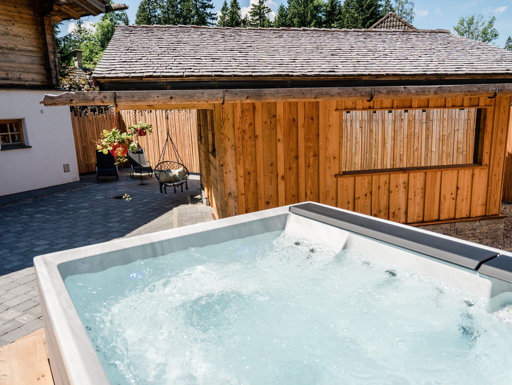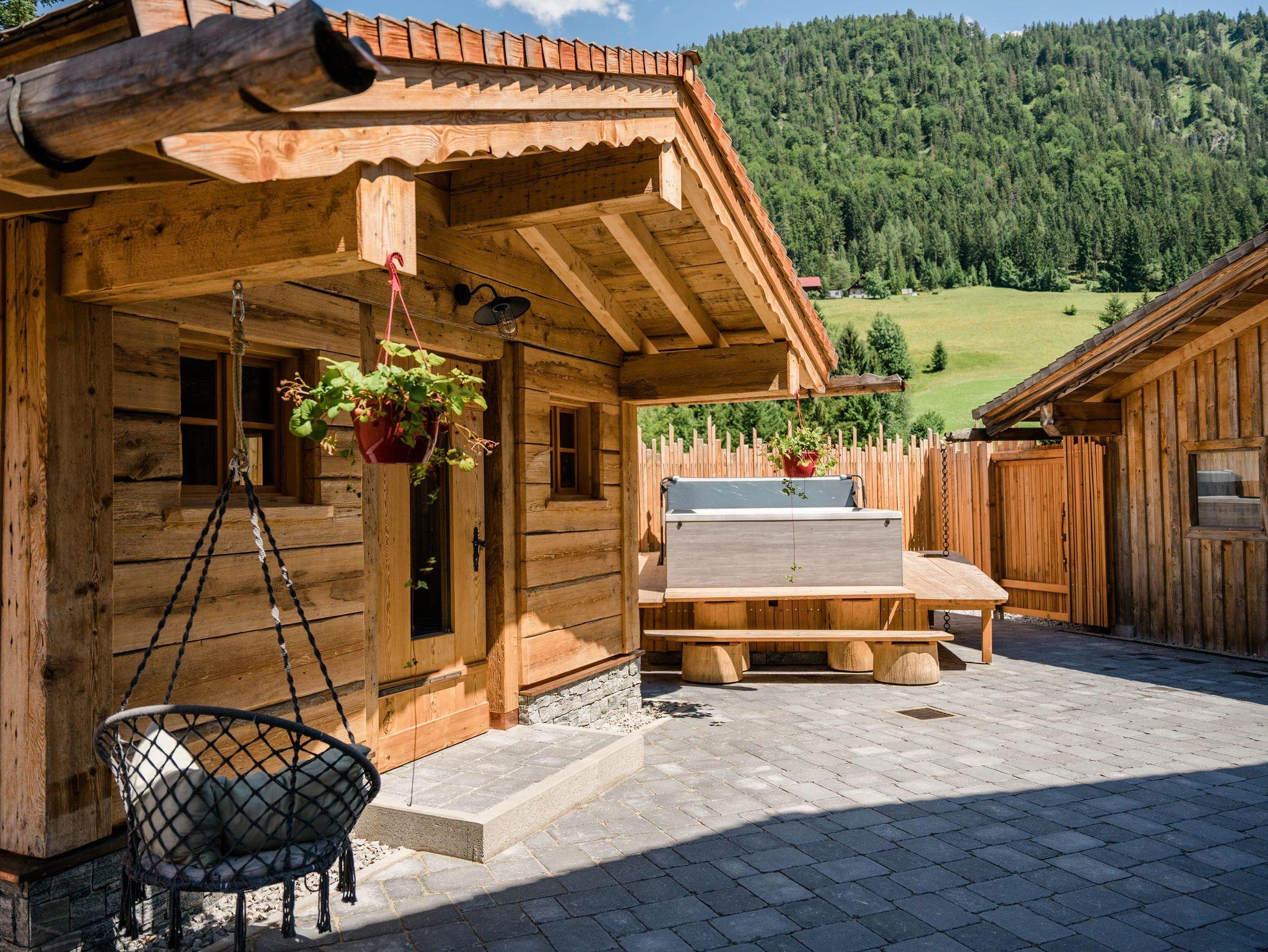Die gemütliche Terasse lädt zum Verweilen und Entspannen ein - genießen Sie die herrliche Luft und die Ruhe nach einem Saunagang in unserer neuen Zirben-Sauna!