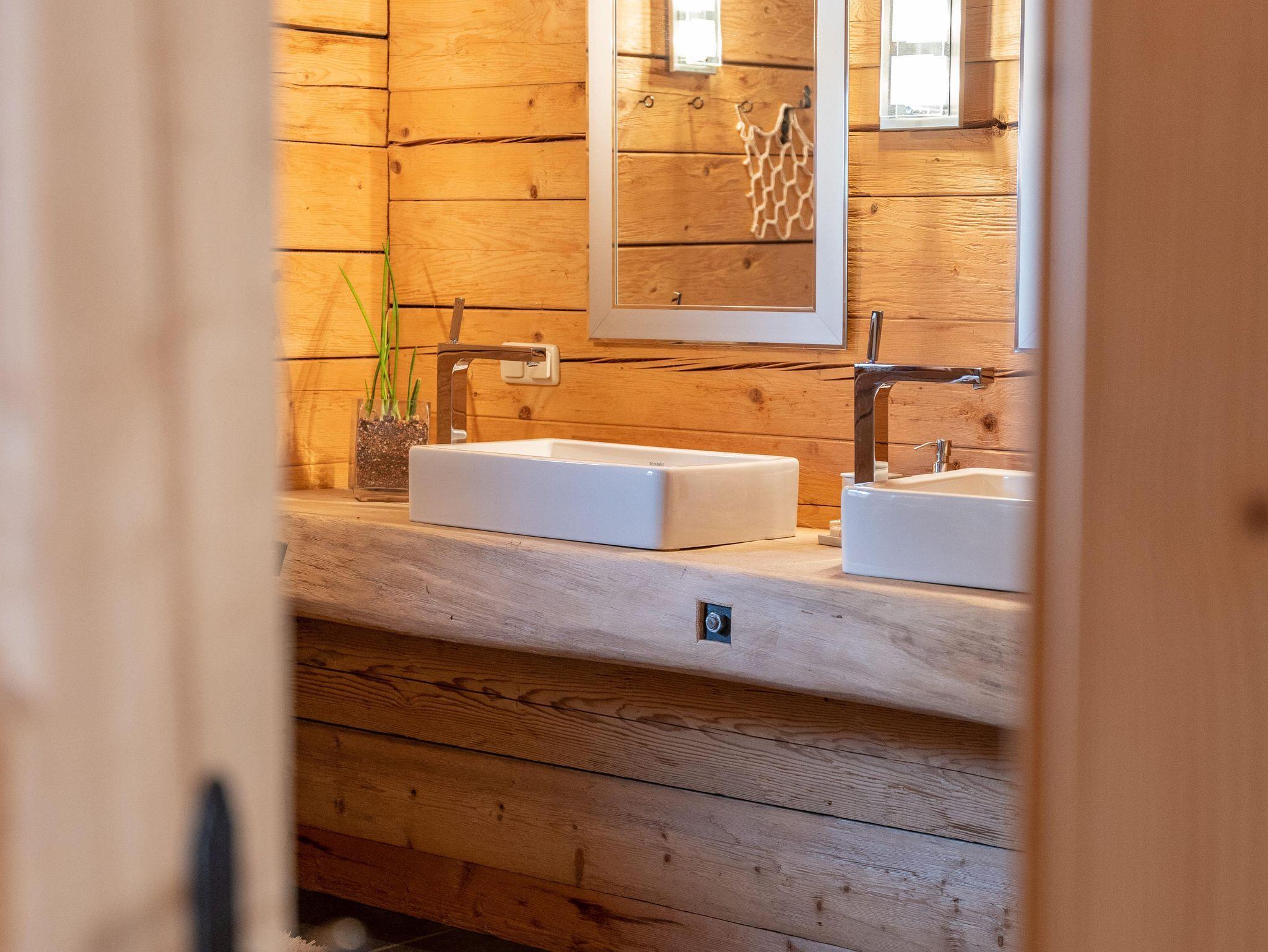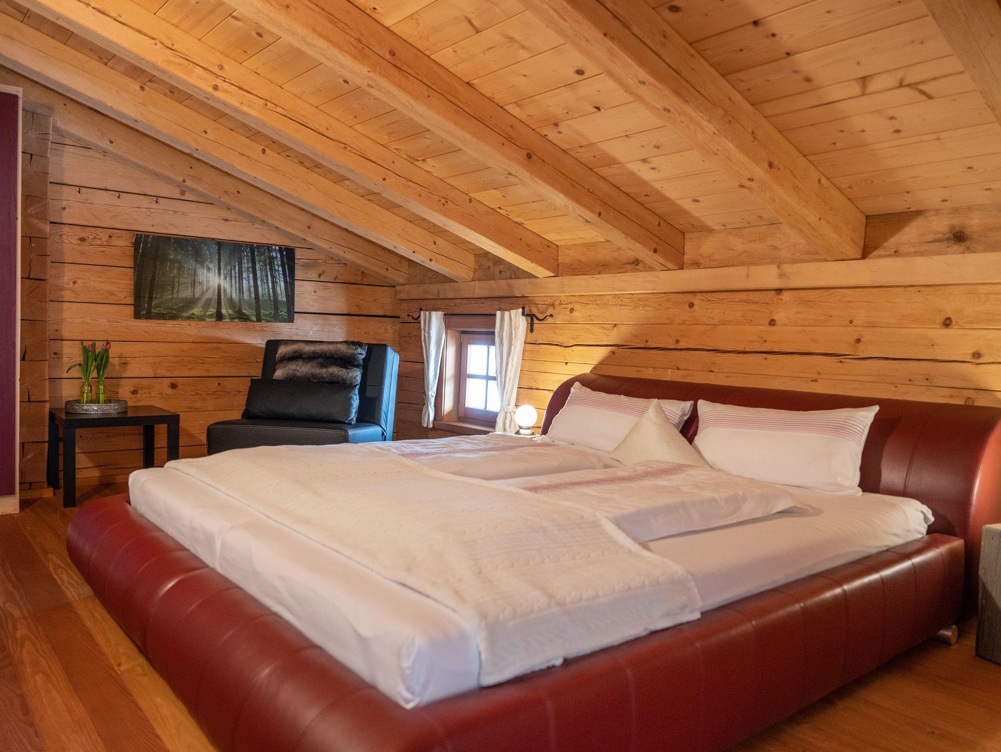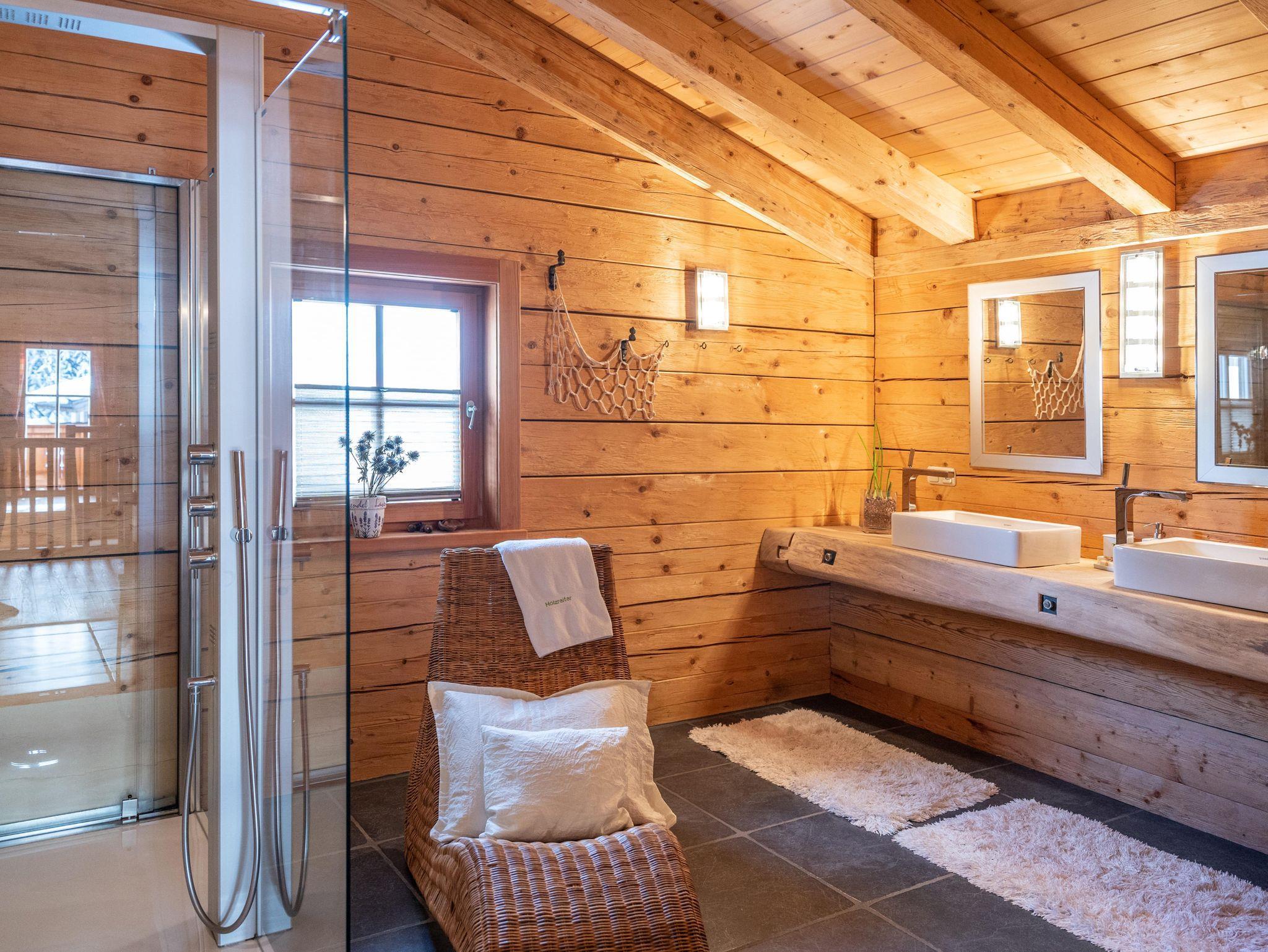 Zusätzlich ein Zirbenholz-Saunahaus für 8 Personen an. Wir haben es im gleichen Stil wie unser Haus erbaut.