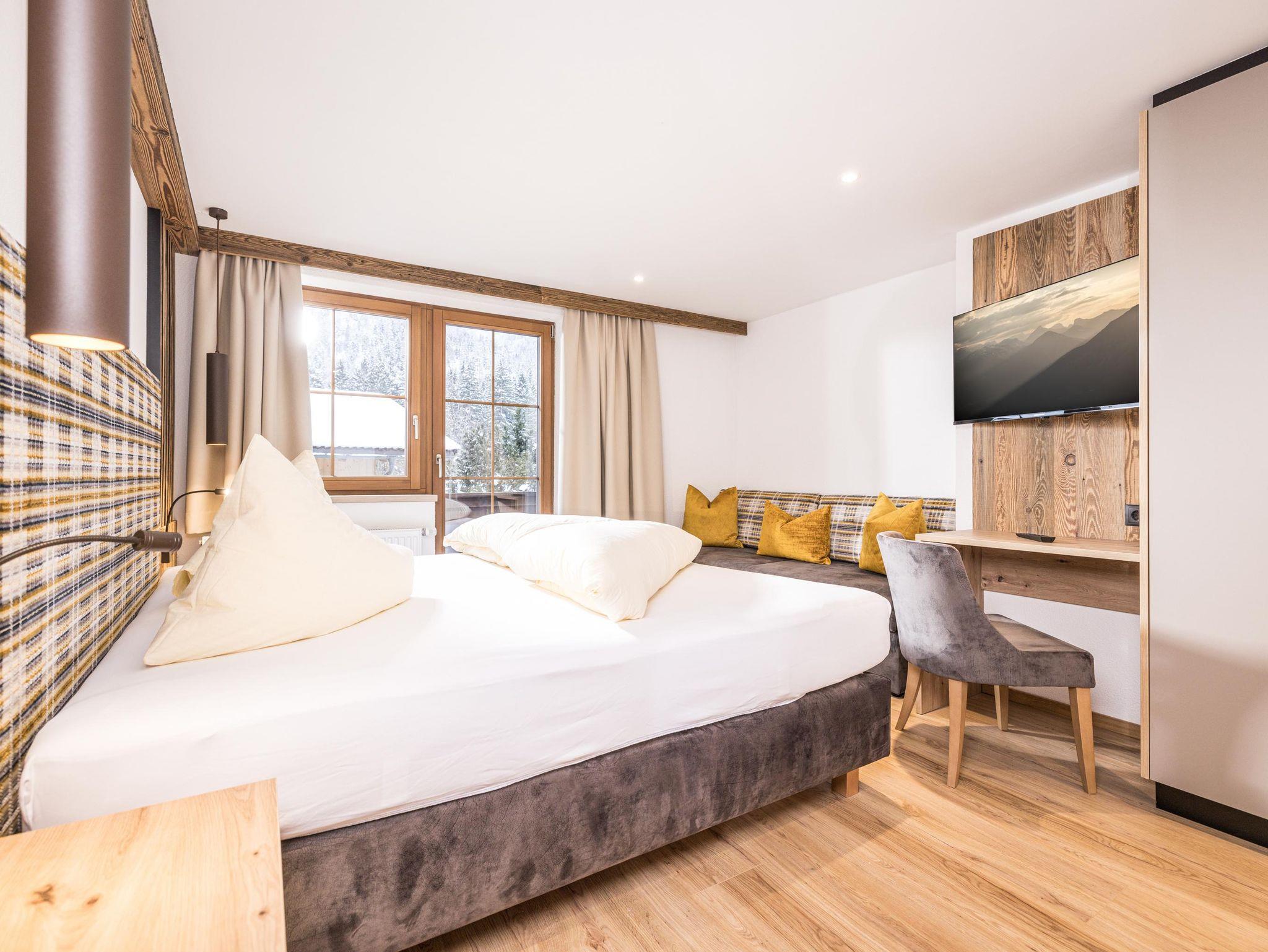 Großräumiges Appartement im edlen Tiroler Holzdesign. Drei großzügige Schlafzimmer mit gemütlichen Doppelbetten, Schreibtisch, Flat-TV und komfortable Wohn-Schlaf Couch. Zwei Badezimmer mit begehbarer Dusche und WC, Fön, Handtüchern und Naturpflegeprodukte. Voll ausgestattete Wohnküche mit gemütlicher Essecke, Couch und großem Flat-TV, großer sonniger Balkon mit Blick auf den Berg Seekar und wunderbaren Bergpanorama. Freie W-Lan Benützung. Das Appartement Enzian wurde mit hochwertigen Naturmaterialien ausgestattet und besticht durch sein gemütliches und warmes Flair. Durch die sehr großzügige räumliche Aufteilung eignet sich das Appartement Enzian perfekt für Urlaube mit großen Familien, Freunden und Paaren und ermöglicht somit eine unvergessliches und erholsames Urlaubserlebnis am Achensee.