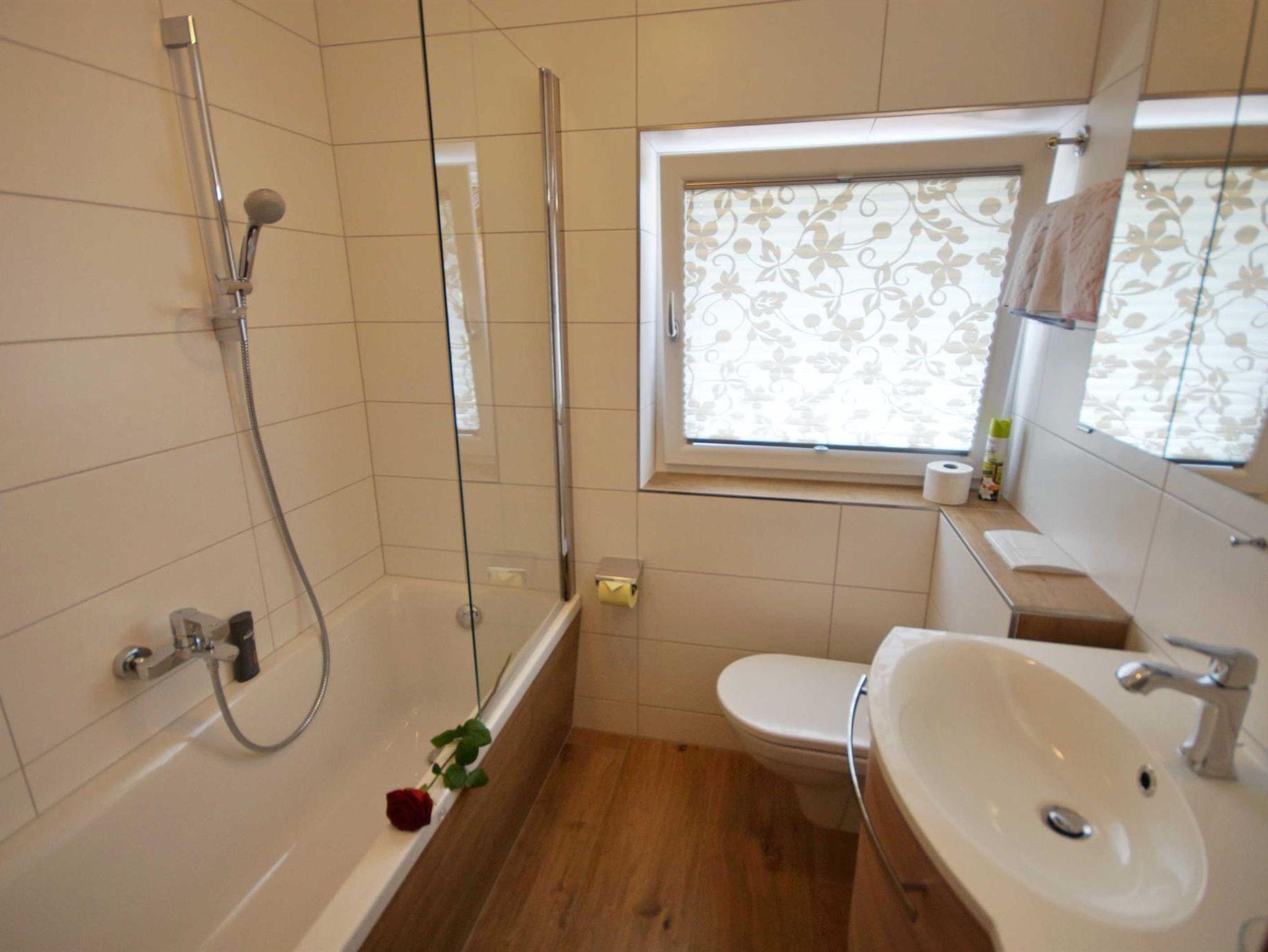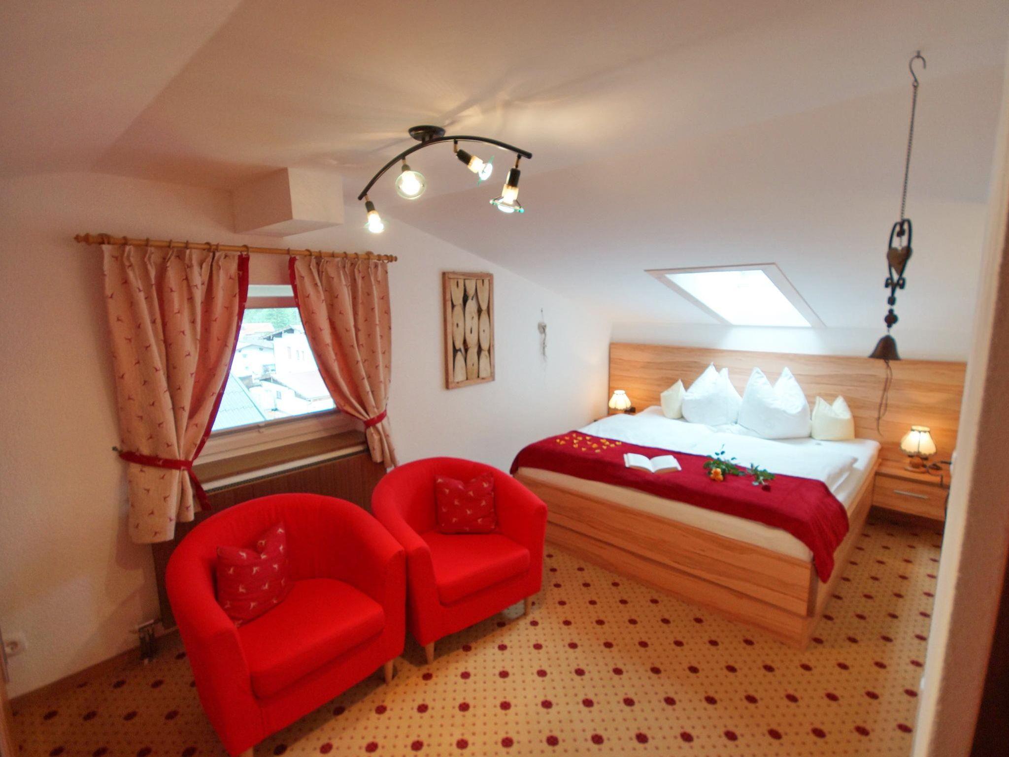 Unser kleineres Appartement NESTL/Mansarde mit 1 extra Schlafzimmer ist durch seinen besonderen Charme sehr beliebt, das Badezimmer hat eine Dusche extra und eine Sitz-Badewanne, Balkon zum Sitzen