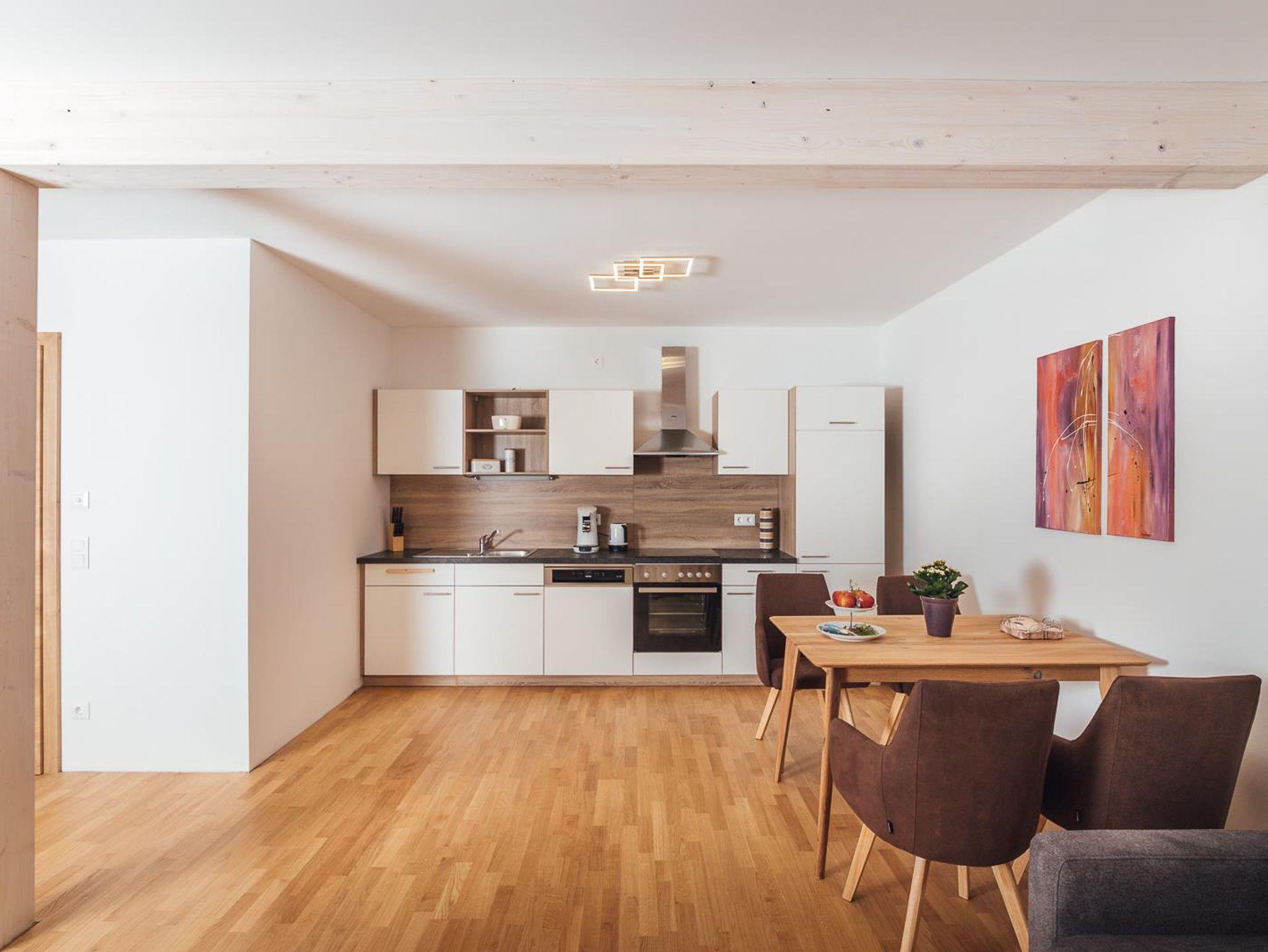 Modern eingerichtetes Appartement für 2 bis 4 Personen, Wohnzimmer mit Schlafcouch, Schlafzimmer, Badezimmer und Küchenzeile