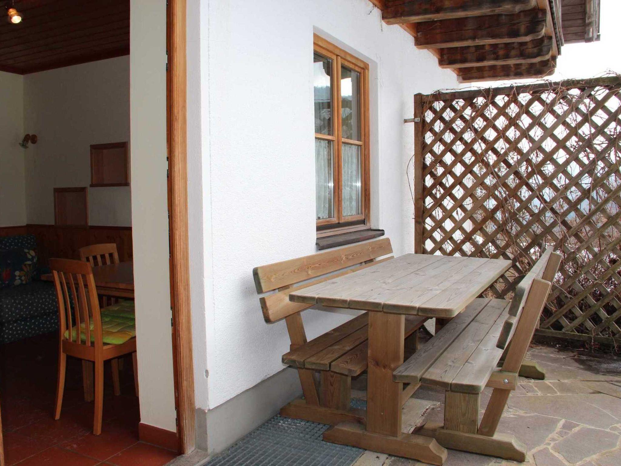 Auf der Terrasse lädt eine Sitzgruppe zum Frühstücken und Sonnenliegen ein.