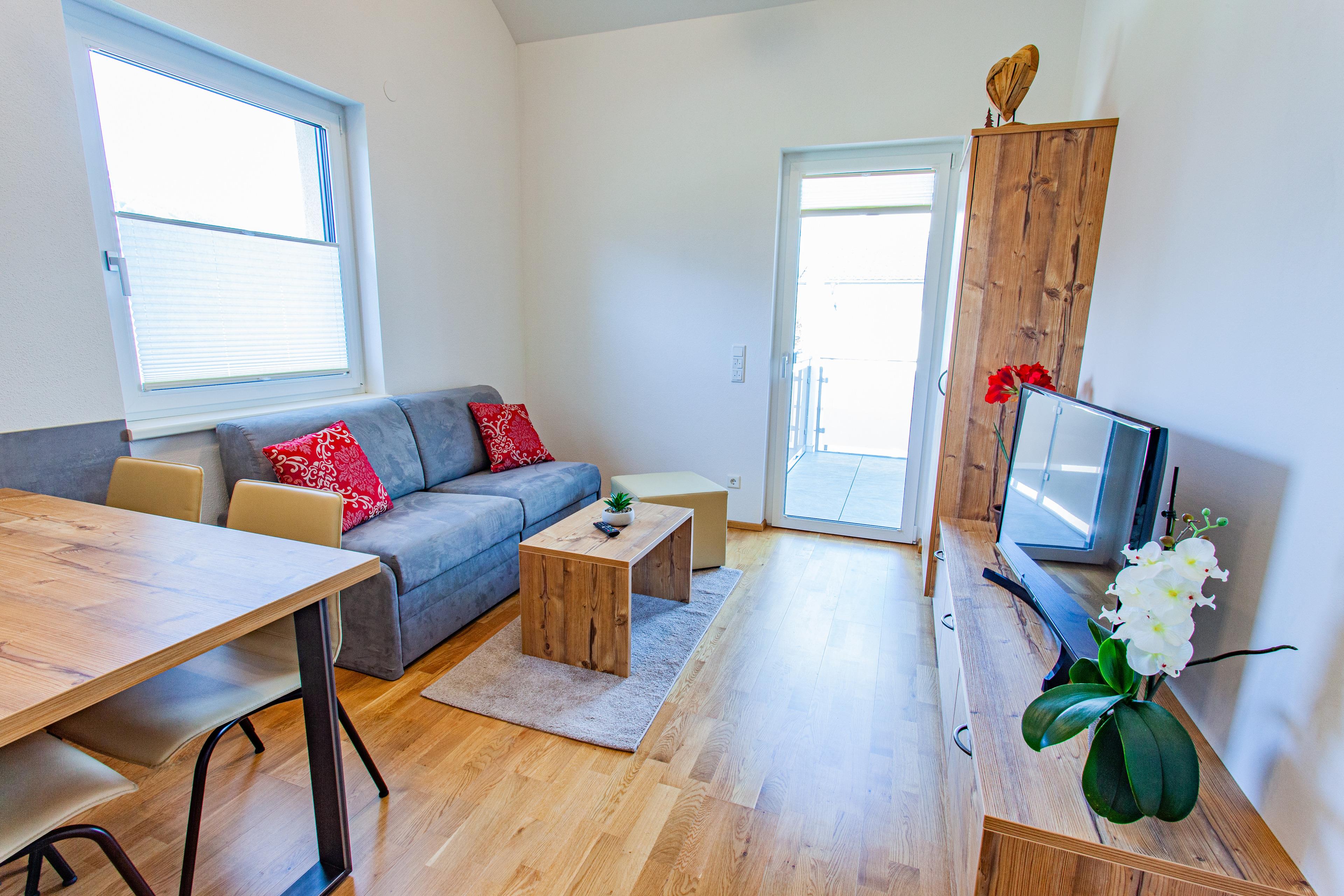 Die gemütliche, modern eingerichtete Wohnung für bis zu 6 Personen liegt im Obergeschoß eines neu errichteten Gebäudes und besteht aus zwei Schlafzimmern, einer Wohnküche (Herd mit Backofen, Geschirrspüler, Toaster, Wasserkocher), einem Bad und einem großzügigen Balkon.