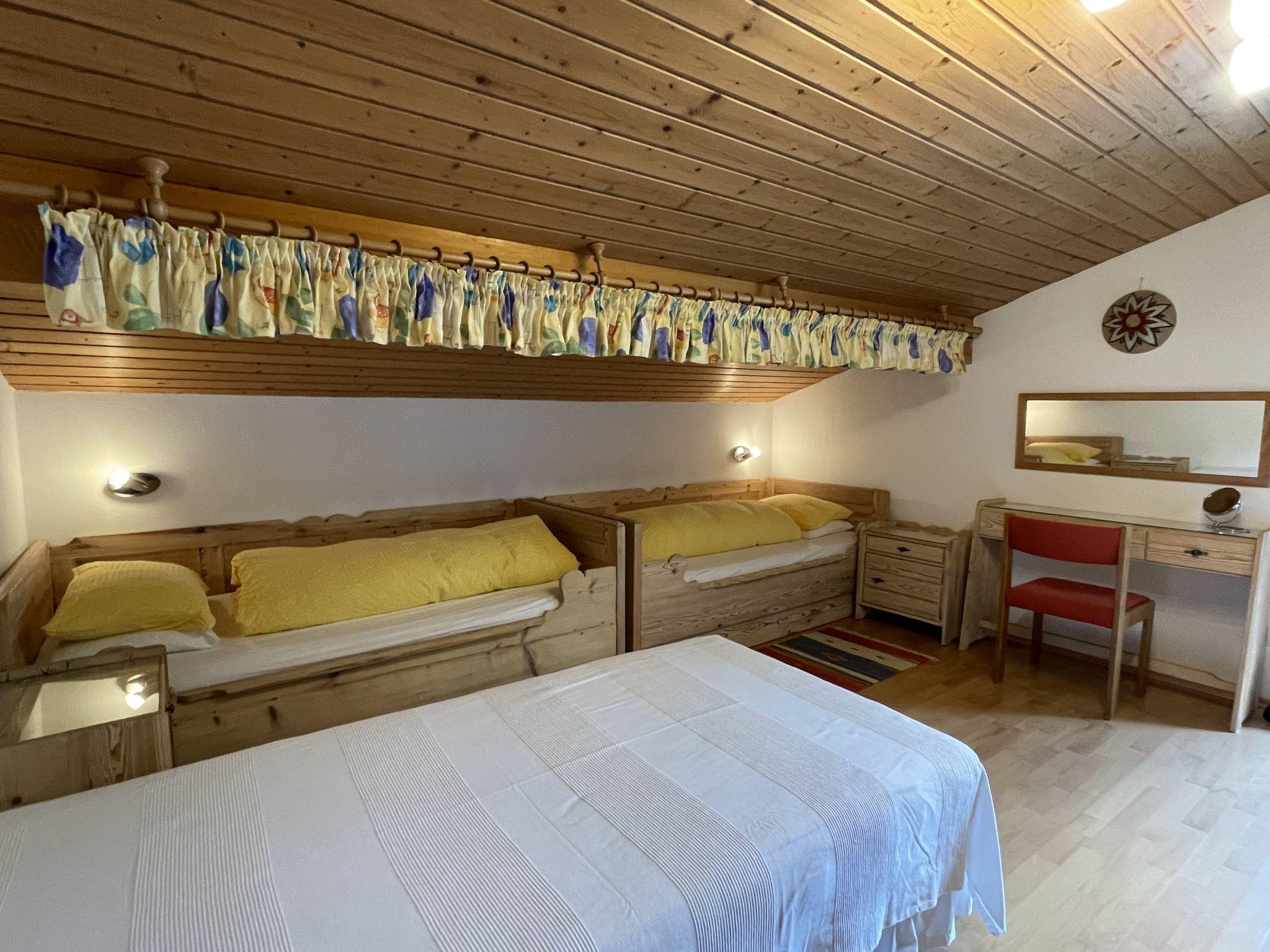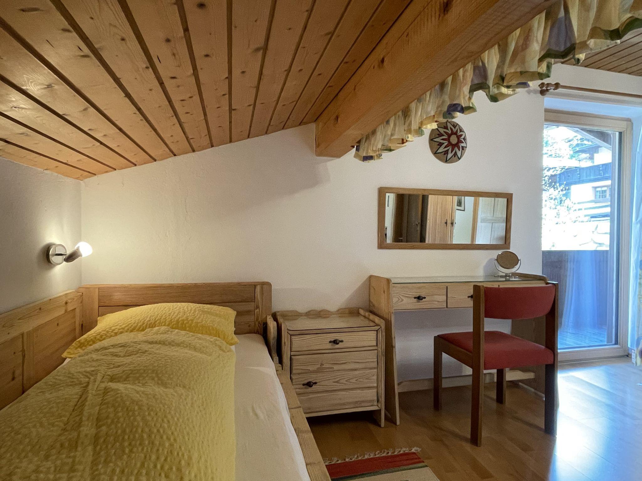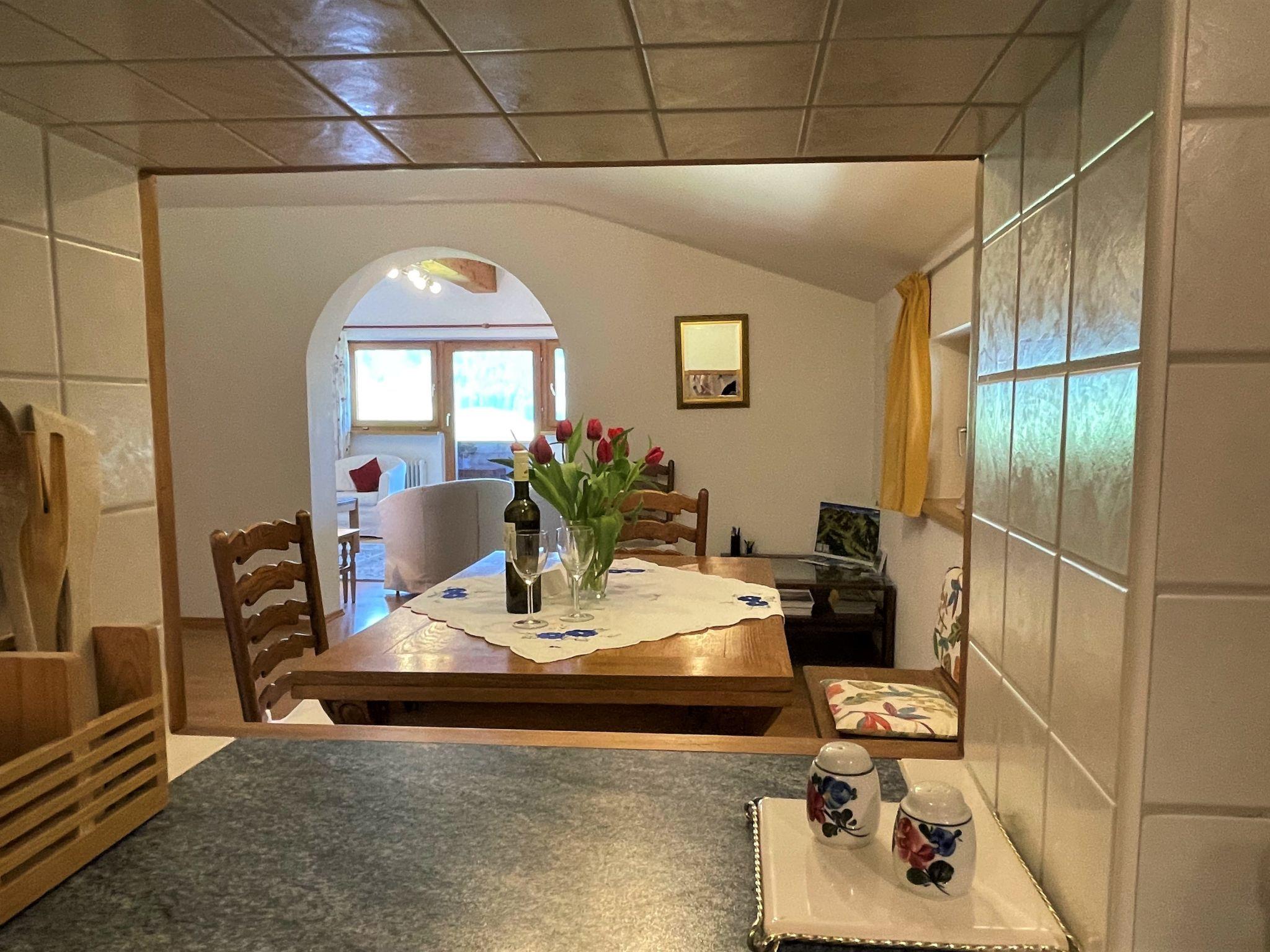 3-room apartment 87 m2, on the top floor. Spacious and bright, partly with sloping ceilings, beautiful furnishings: open living room with satellite TV and radio. Exit to the balcony. 1 double bedroom with hand-basin. 1 room with 3 beds. Exit to the balcony. Open dining room with dining nook. Kitchen (4 hot plates, oven, dishwasher, toaster, kettle, microwave, electric coffee machine) with hatch. Bath/WC, sep. WC. Balcony, south-west facing position. Balcony furniture. Very beautiful panoramic view of the mountains and the valley. Facilities: children's high chair. Internet (WiFi, free). Please note: smoke alarm.