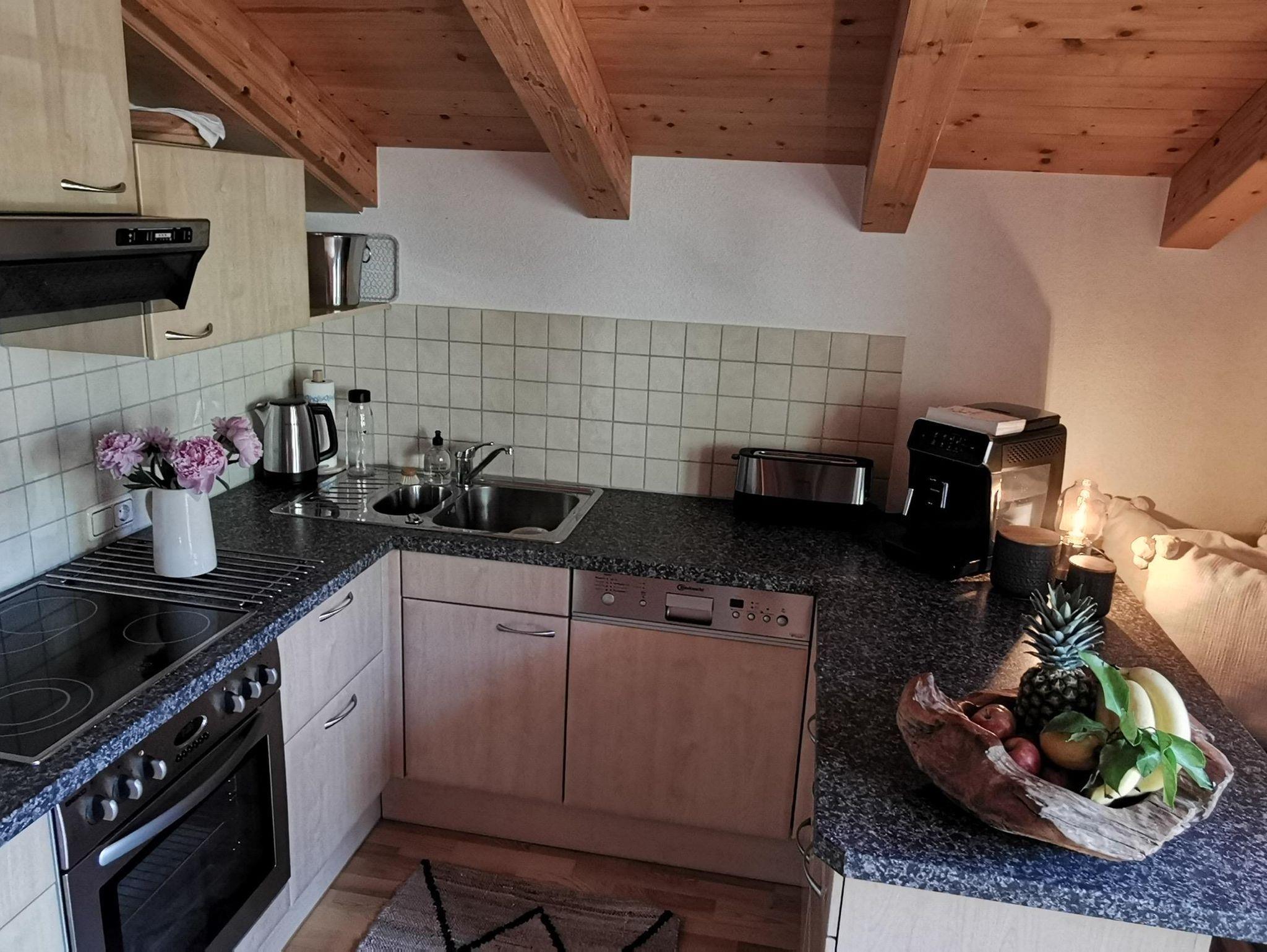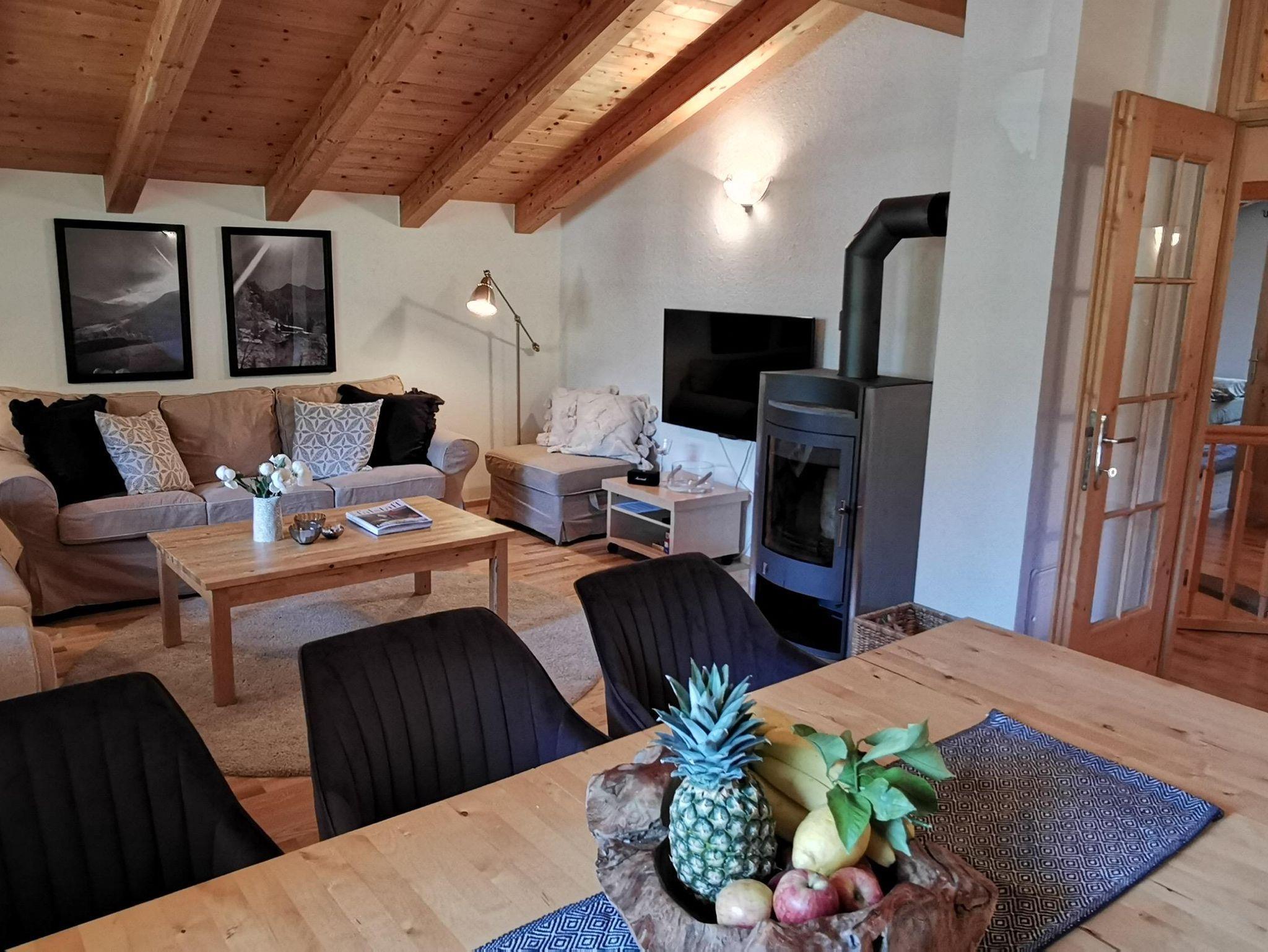 Drei Schlafzimmer mit französischen Doppelbetten, ein Badezimmer mit Doppelwaschbecken, Dusche und Badewanne, ein extra WC, eine gemütliche Chillout-Ecke zum Lesen oder Musik hören, eine voll ausgestattete Küche mit Frühstücksbar sowie ein luftiges Wohn- esszimmer mit gemütlicher Couch, Flat-TV mit internationalen Sendern inkl. Soundsystem, gemütlichem Schwedenofen sowie ein großer Esstisch laden zu gemütlichen Stunden im Kreise von Familie oder Freunden ein.Sowohl der Balkon mit Morgensonne sowie ein Südbalkon für die Nachmittagsstunden bietet herrliche Aussichten - und das zu jeder Jahreszeit.