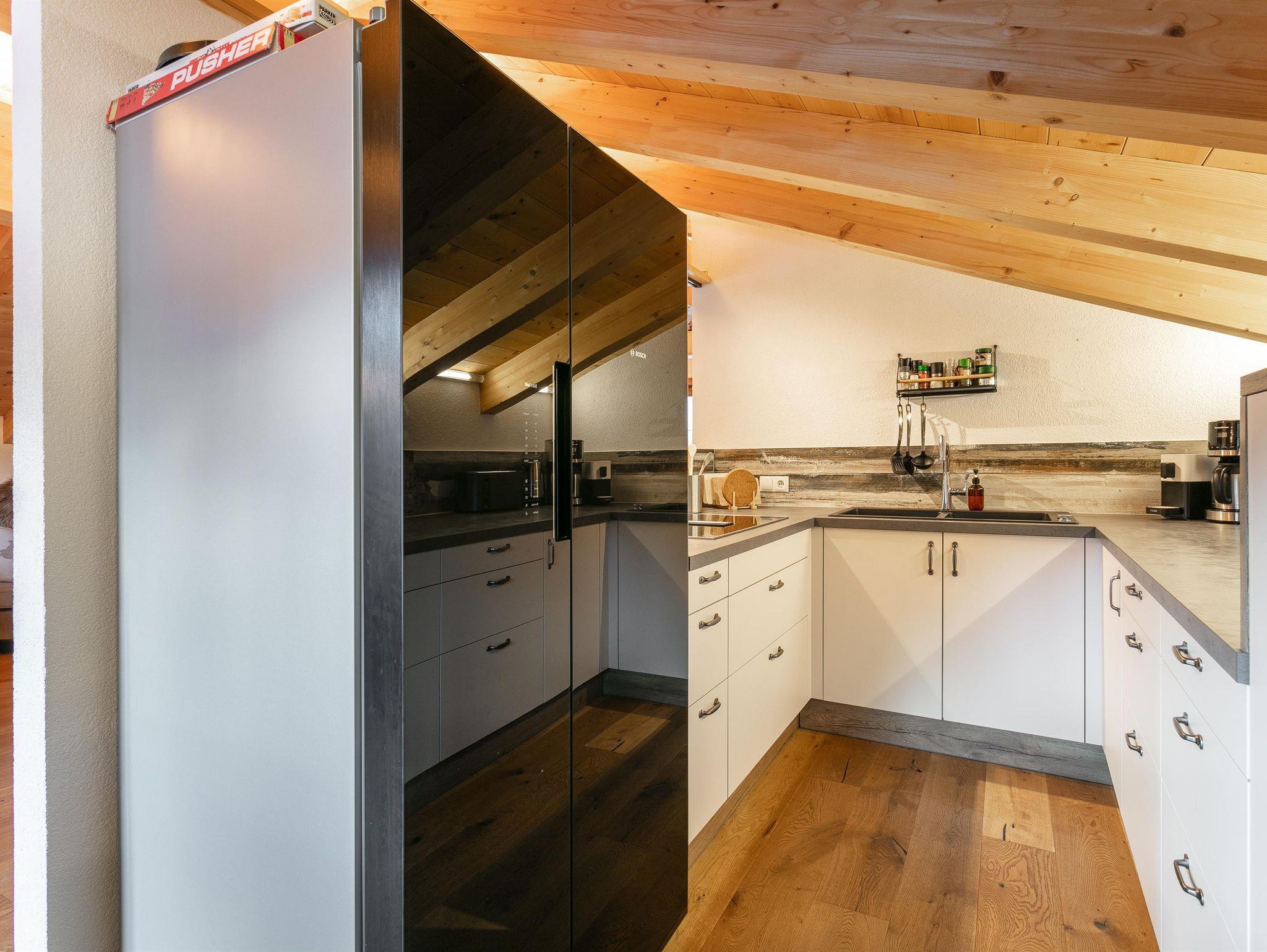 Ein besonderes Highlight ist die rund 25 m² große Terrasse – ideal, um laue Sommerabende mit Blick auf das beeindruckende Bergpanorama zu genießen. Zwei überdachte Parkplätze stehen Ihnen ebenfalls zur Verfügung.