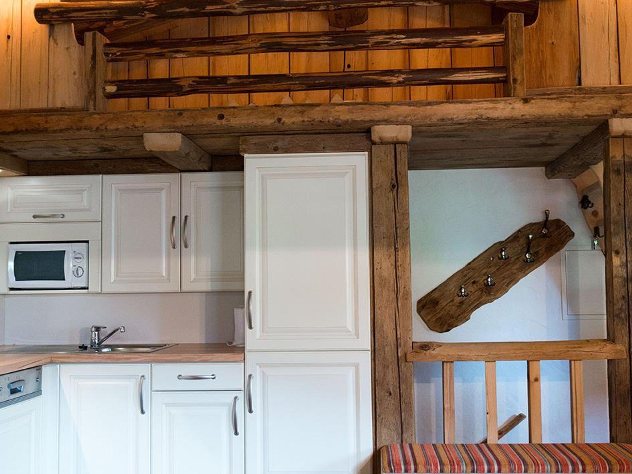 Das Holz von einer ca. 300 Jahr alten Hütte wurde zu einer gemütlichen Almwohnung umgewandelt.