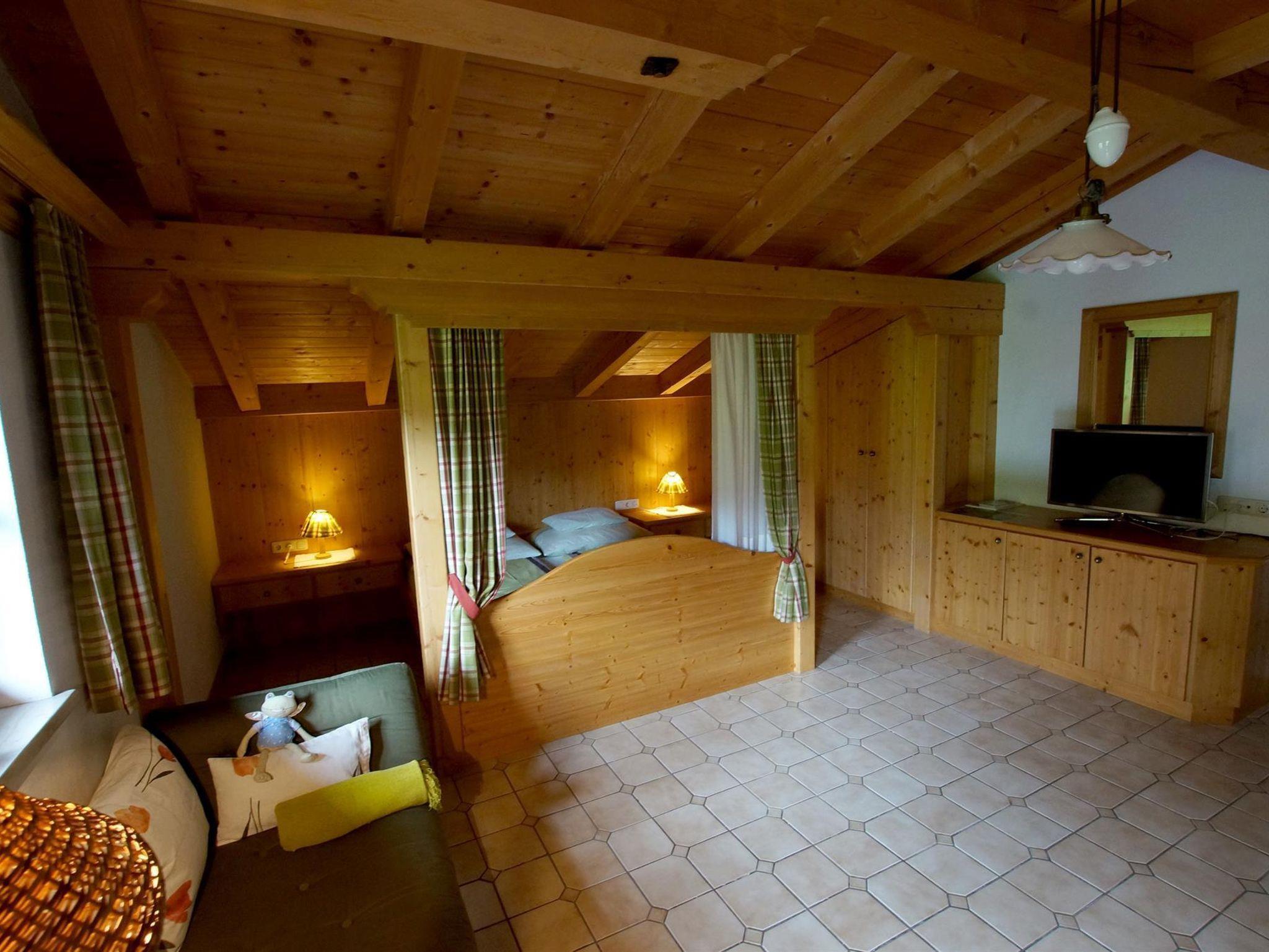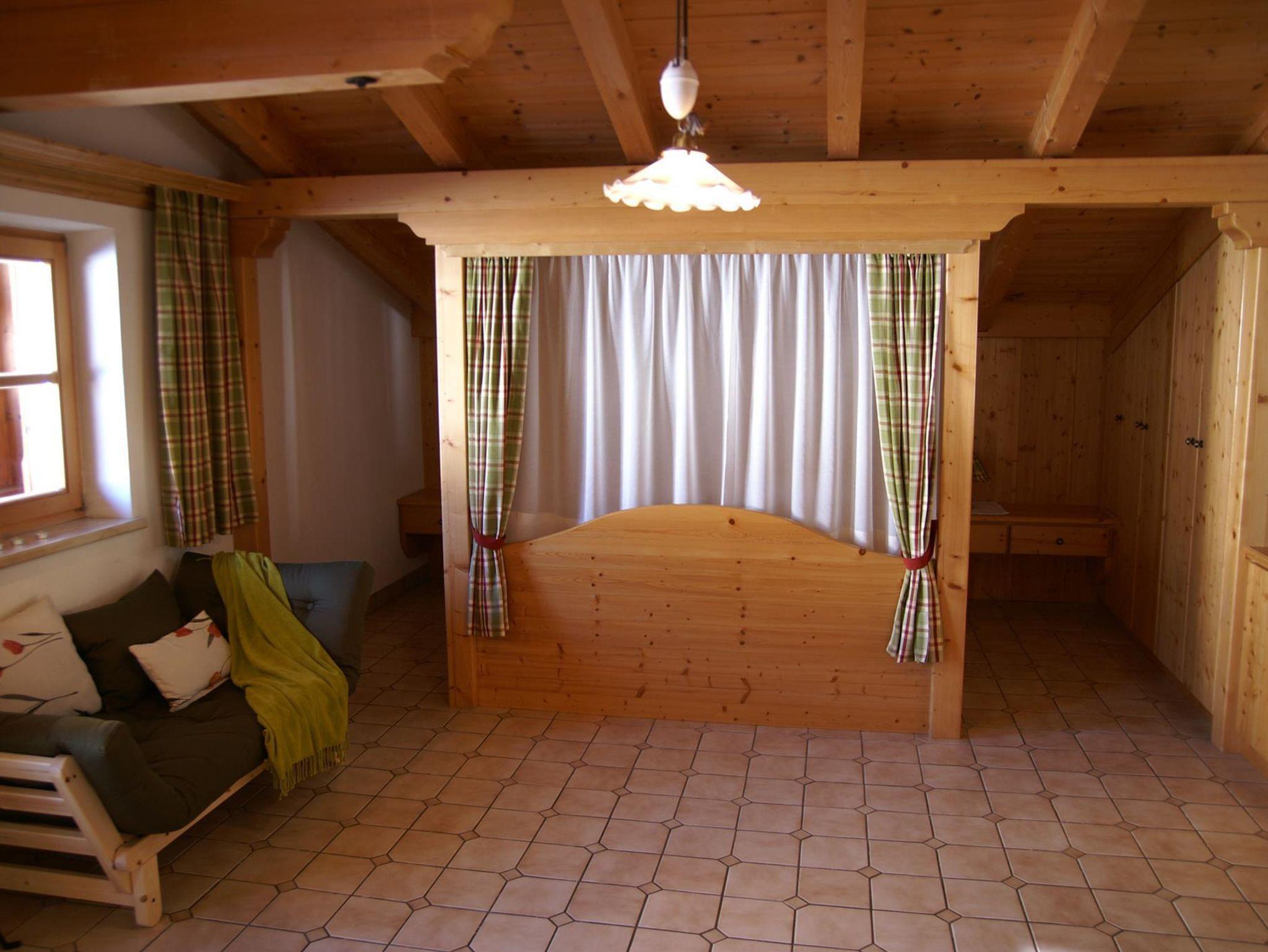 Unsere kleine Wohnung, Wohn-Schlafraum - Betten optisch getrennt vom Wohnraum, romantisch gestaltet mit Holzdecke - Couch für 1-2 Kinder + Eßecke. Ideal für Paare oder kleine Familien...