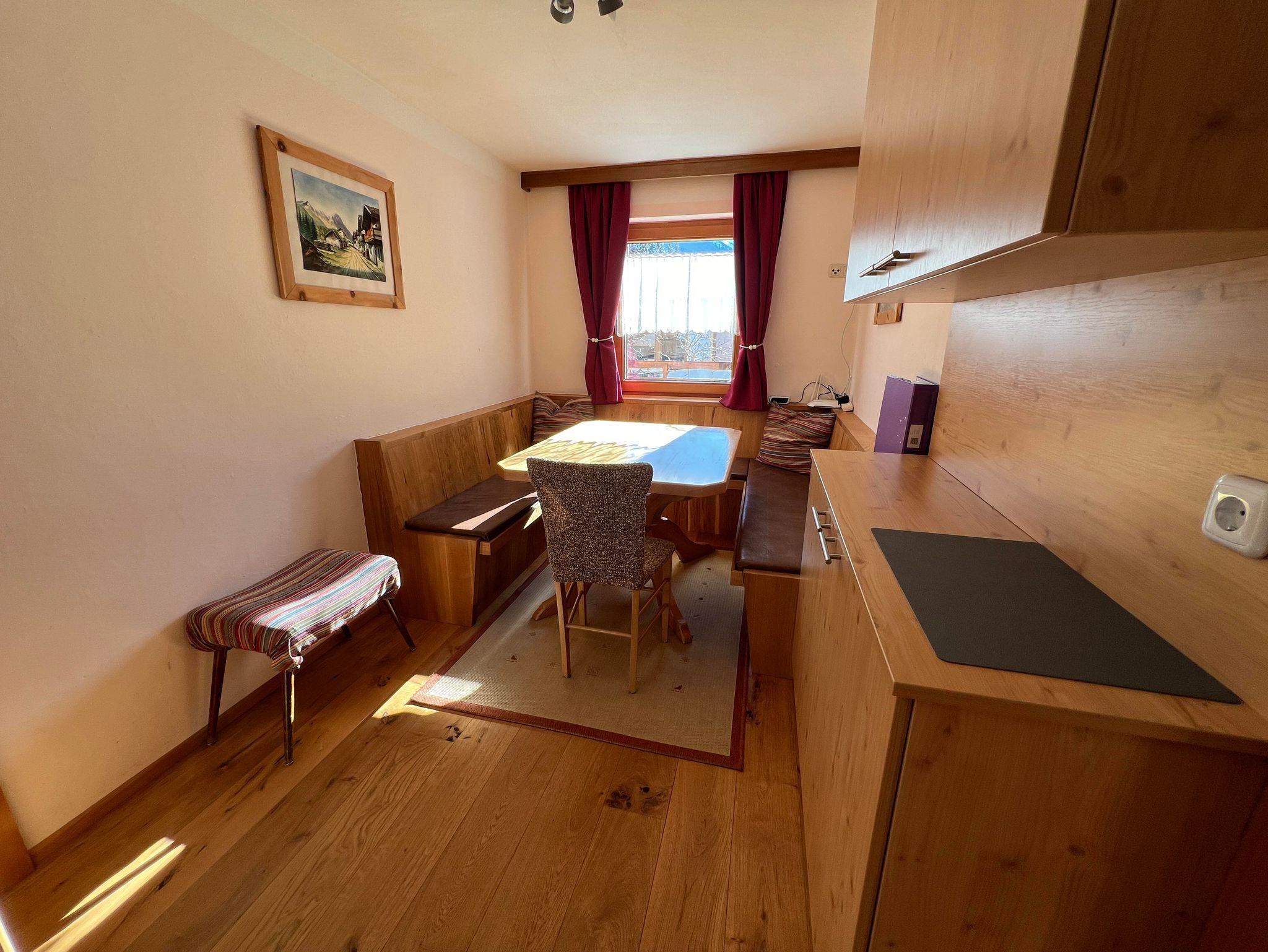 Die Ferienwohnung ist 56m2 und besteht aus 2 Schlafzimmern mit Naturholzböden und Zirbenbetten. Einen Aufenthaltsraum mit Sitzecke. Bad mit Dusche und WC. Und einer Küchenecke mit 2 Cerankochfelder, kleiner Backofen, Mikrowelle, Geschirrspülmaschine, Filtercafemaschine und Eduscho Kapselmaschine, Soda Stream, Toaster, Wasserkocher, Kühlschrank mit Gefrierfach,... Die Ferienwohnung hat einen großen Balkon, die ganze Südseite vom Haus mit Sitzgelegenheit. Es befindet sich auch ein Tresor in der Ferienwohnung.
