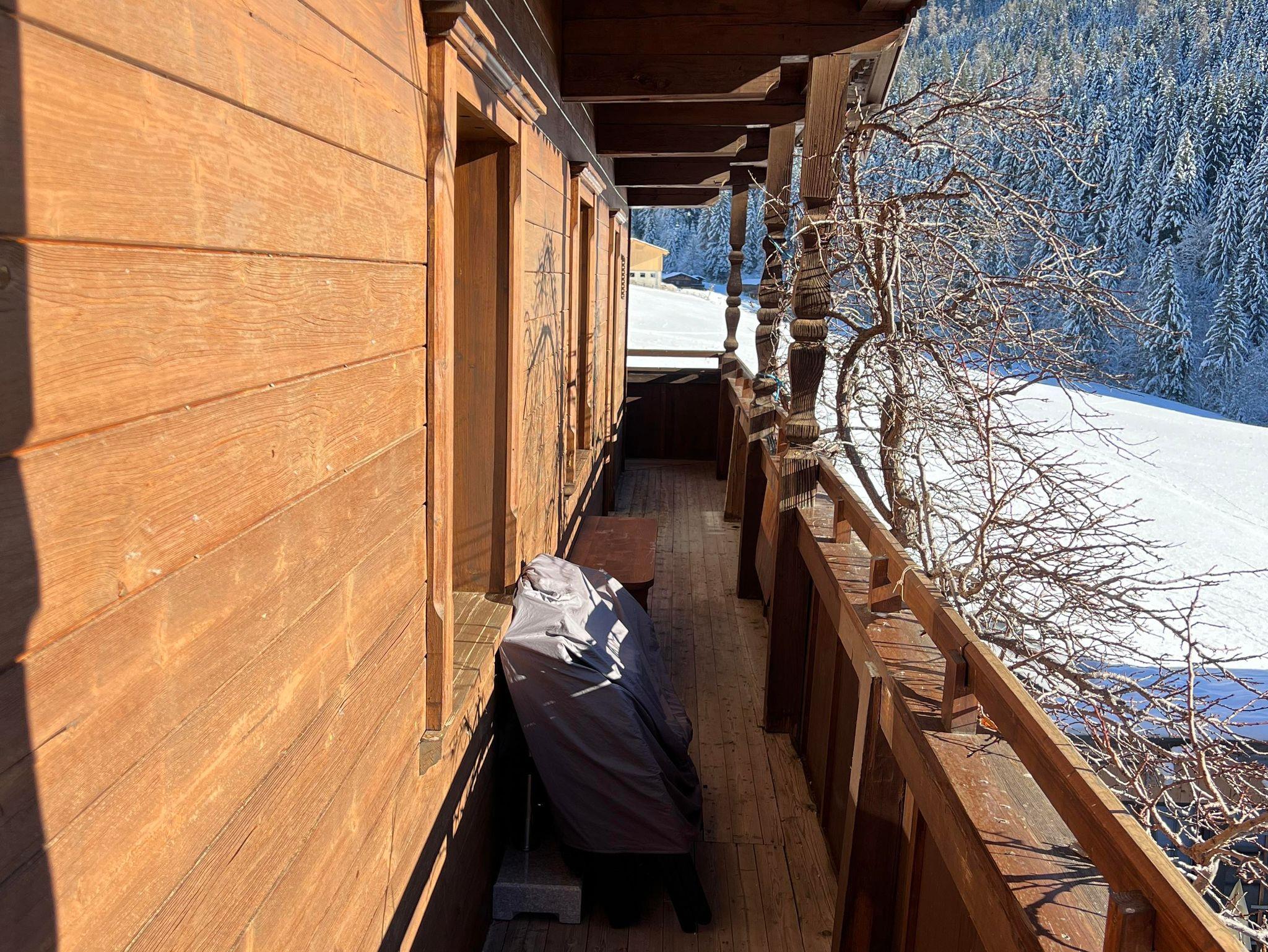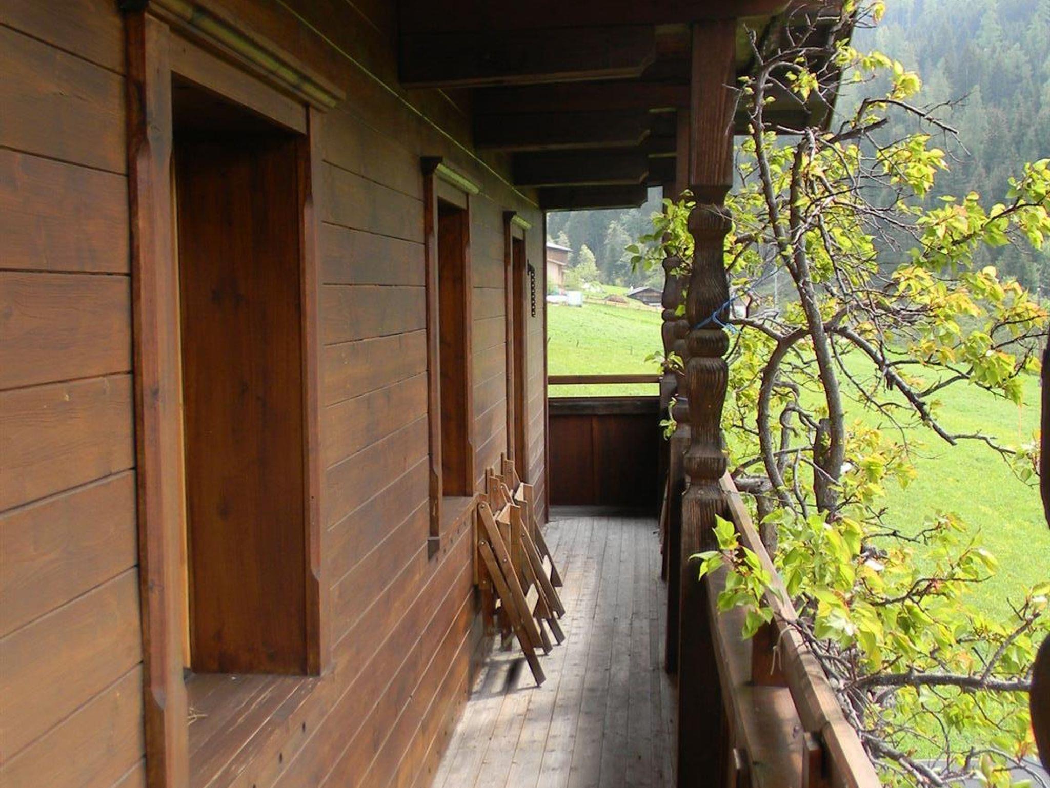 Zum Appartement gehört ein Balkon, der die ganze Südseite des Hauses umfasst. Auf dem Balkon finden Sie eine Sitzgelegenheit mit zwei kleinen ausklappbaren Tischen, um entspannt die Sonne und den wunderschönen Ausblick auf die Berge zu genießen.