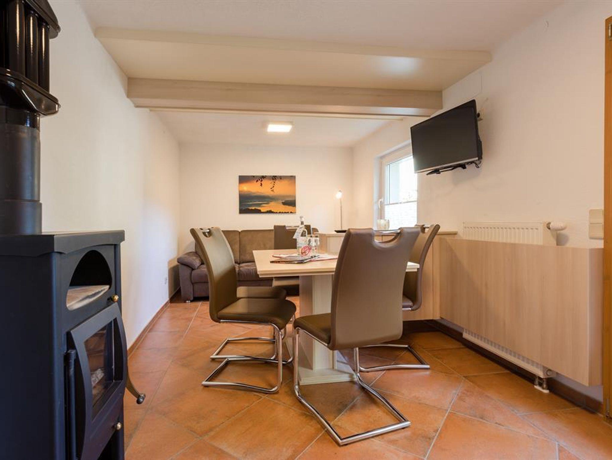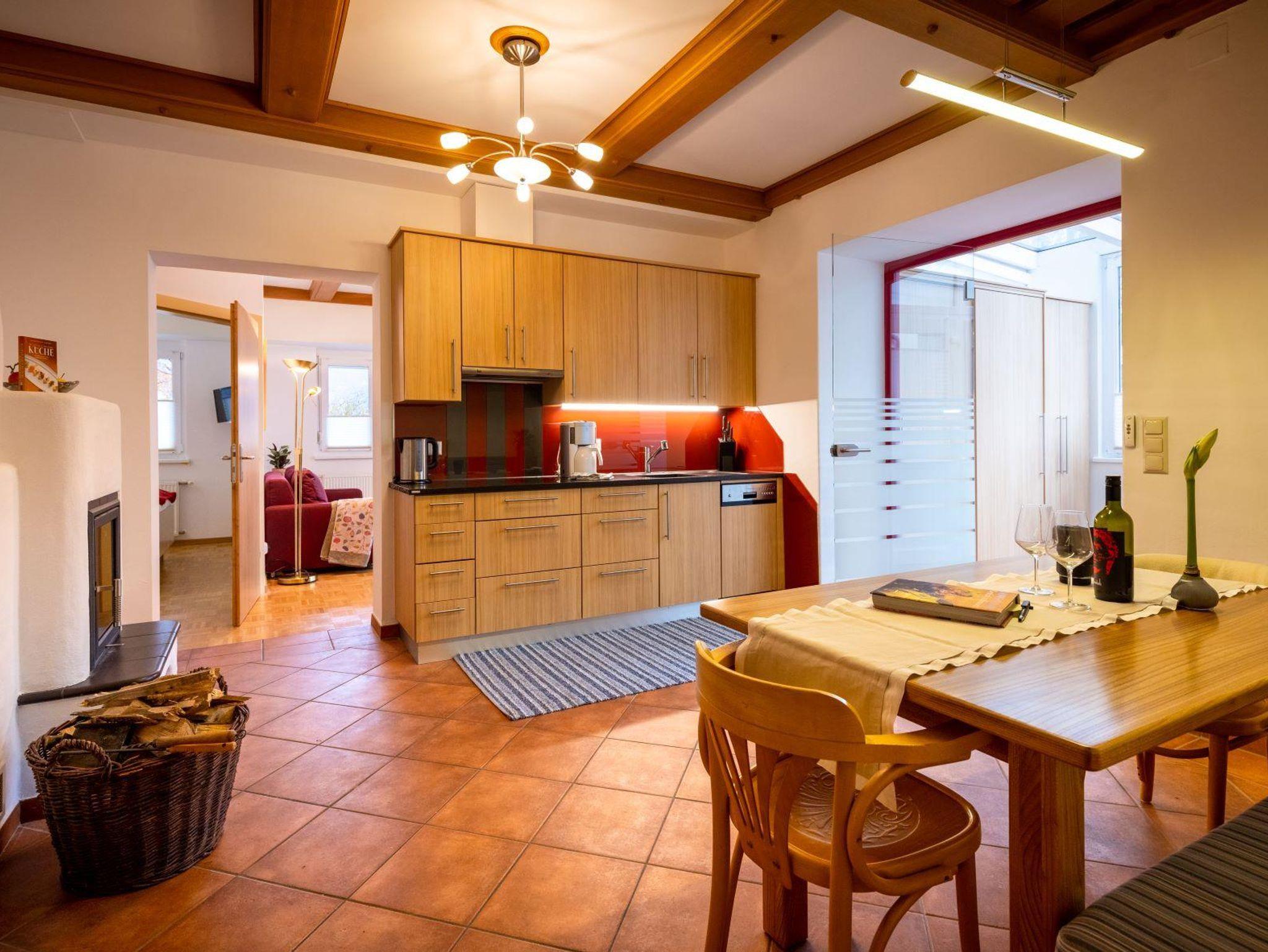 Das Apartment Gartenhaus hat 60 m² und verfügt im Erdgeschoß über eine vollständig ausgestattet Küche mit Geschirrspüler und einen gemütlichen Wohn-Essbereich mit einem Schwedenofen von dem aus man in den Garten mit Terrasse kommt. Das Obergeschoss ist über eine Wendeltreppe erreichbar. Hier befinden sich 2 getrennte Schlafzimmer mit Doppelbetten und ein Badezimmer. Eine fünfte Person kann auf einer ausziehbaren Couch im Wohnbereich schlafen.