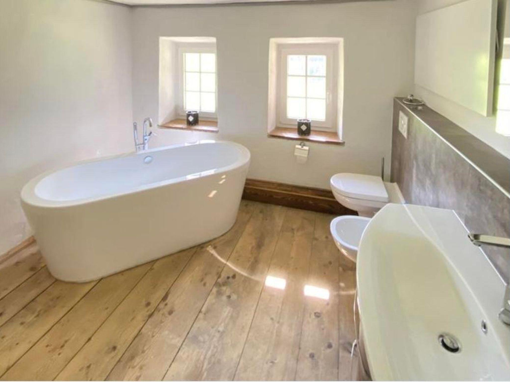 Villa Maria: Entspannen Sie im großen Garten, 3 Schlafzimmer, (2 mit Doppelbett eins mit 2 getrennten Betten) 2 Bäder (Badewanne, Dusche, Sauna), voll ausgestattete Küche und Holzstube. Ihre Oase des Komforts und der Entspannung inmitten der Natur.