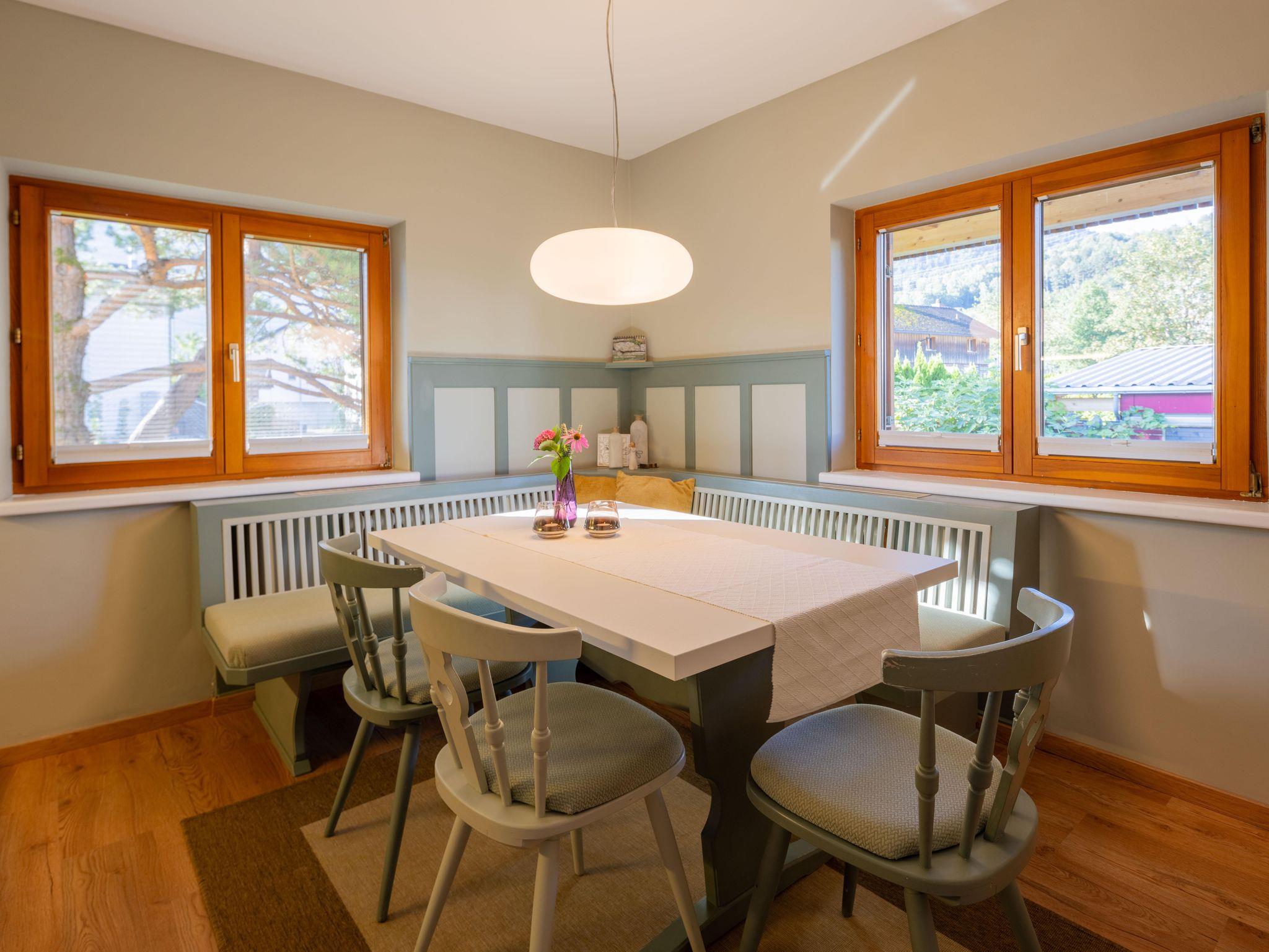 Die Wohnungen bietet jedem Gast ein gemütliches Zuhause, zentral gelegen und ideal zum Wandern, Klettern und Mountainbiken. Mit der Gästekarte könnt ihr kostenlos Bus, Bahn fahren. Mit der V-Card könnt ihr für 77 Euro von Mai bis Okt. jede Seilbahn und jedes Schwimmbad 1 x benützen, informiert euch im Internet. Die Bushaltestelle befindet sich nur 5 Gehminuten vom Haus. Das wunderschöne Brandnertal ist in 10 bis 15 Minuten mit dem Auto oder Bus zu erreichen. Klostertal, Montafon, sowie Golm und Hochjoch sind ca. auch in 15 min. mit dem Auto zu erreichen, Gargellen, Silvretta Nova ca. in 25 min. und Lech/Zürs am Arlberg sind in ca. 30 min. zu erreichen. Unser Juwehl die Bürser Schlucht ist auch nur ein paar Gehminuten vom Haus entfernt.