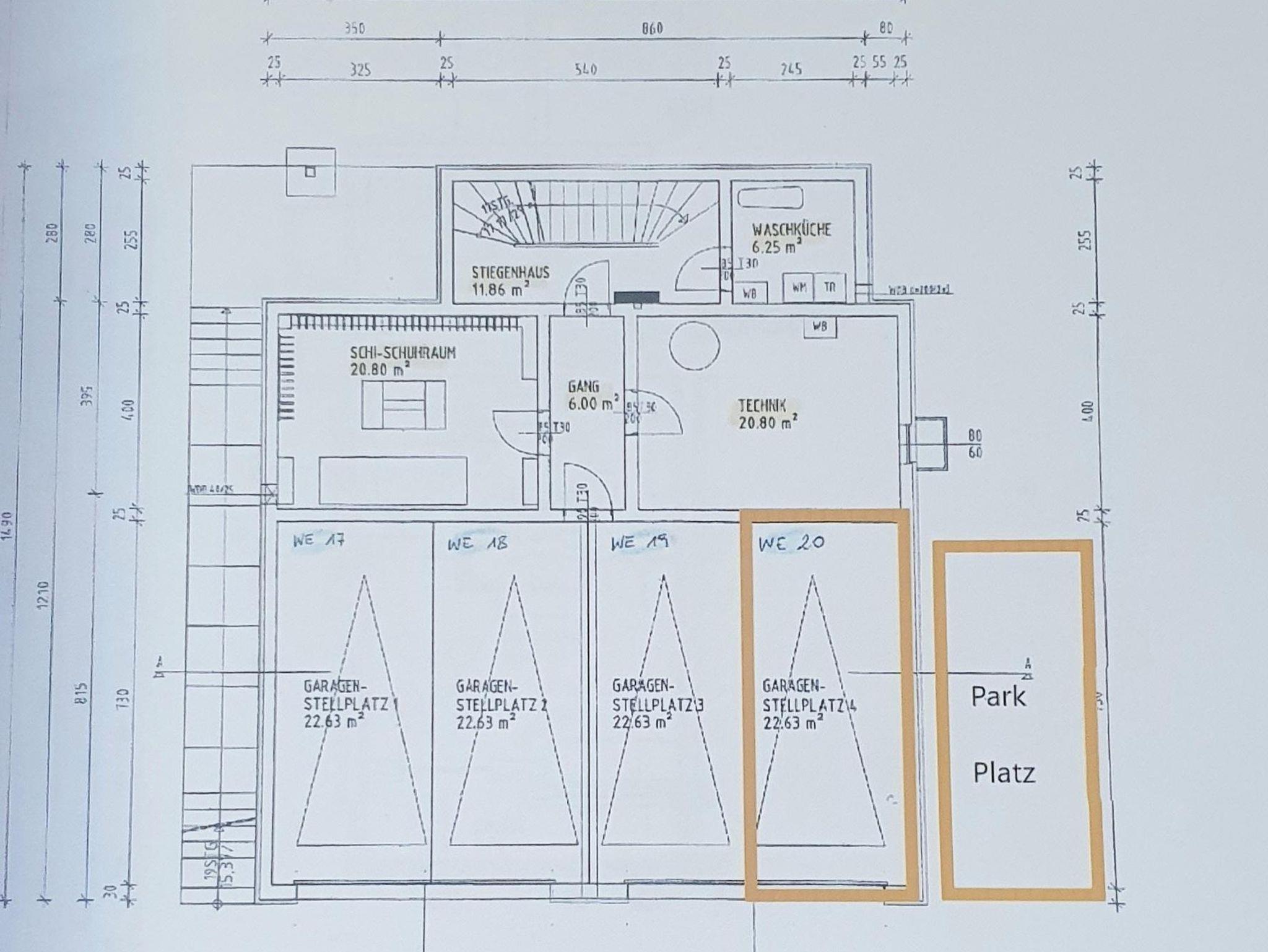 Neben der Tiefgarage gibt es einen extra Außenstellplatz (mit dritter Parkmöglichkeit vor dem Garagentor). Des Weiteren verfügt die Wohnung über einen großzügigen Skikeller inkl. Schuhheizungsanlage.