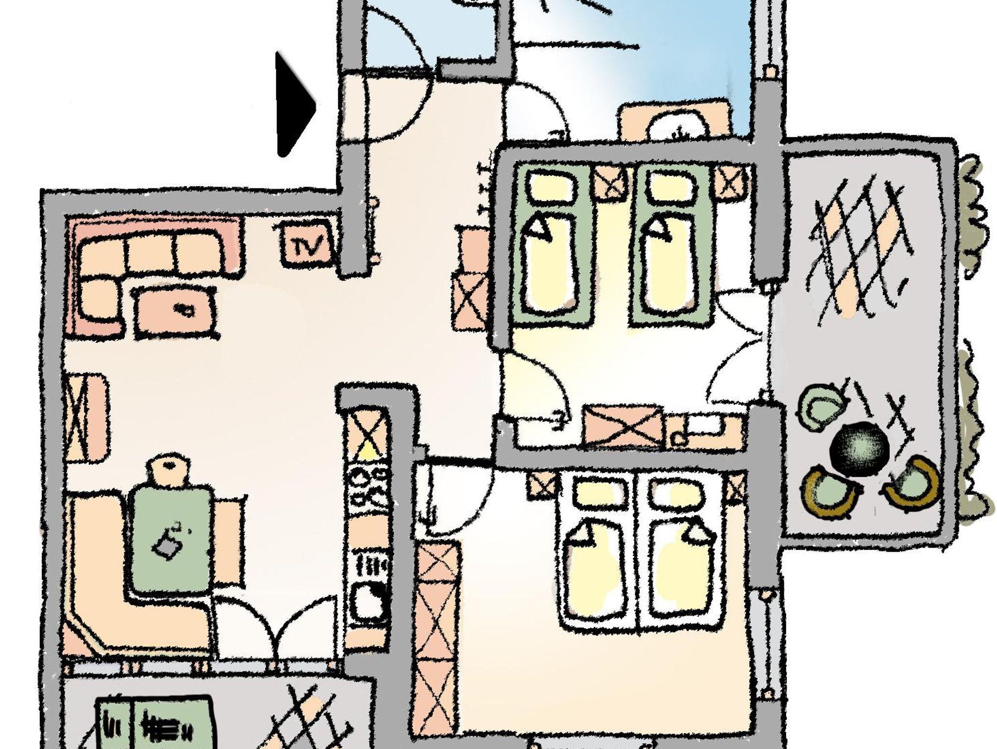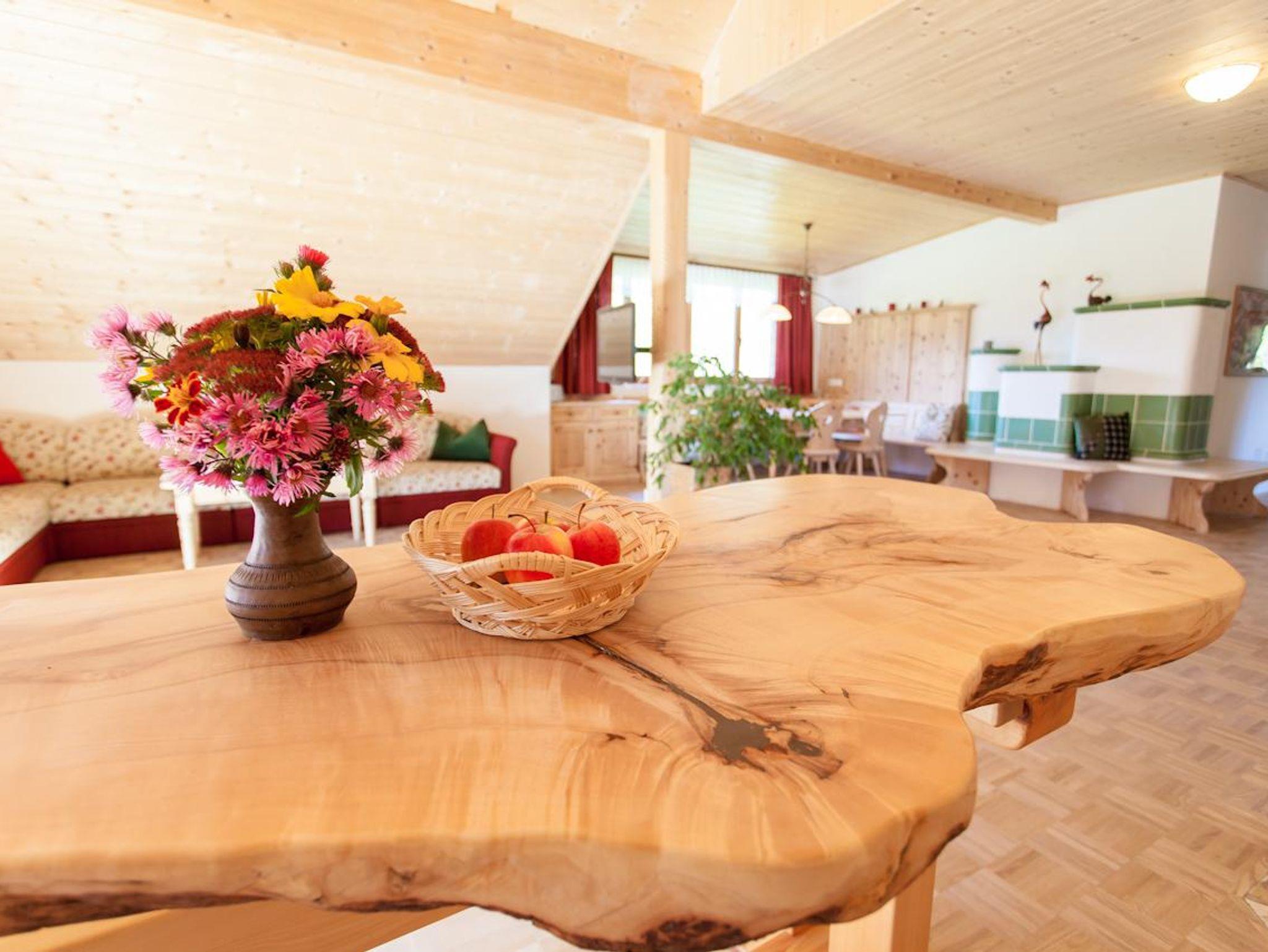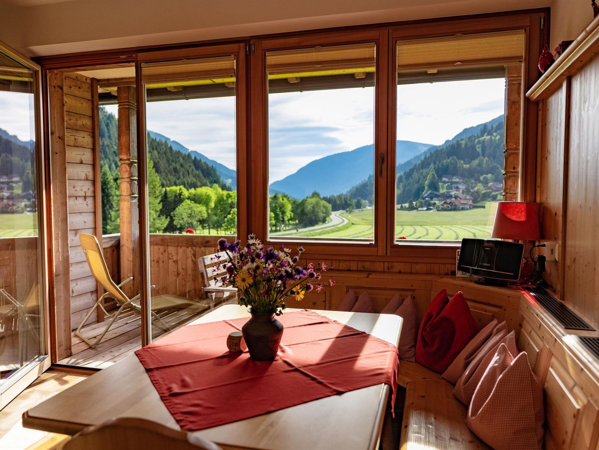 Vitalität, Ausgeglichenheit und Lebensfreude. Das was ein schöner Sonnentag ausmacht gibt es auch in unserer Fichtenwohnung. Die Wohnung bietet ein Elternschlafzimmer mit 2 (3) Betten und ein Kinderschlafzimmer mit 3 Betten. Im Wohnraum gibt es noch alternativ eine Ausziehcouch von höchster Qualität. Auch hier sind Bad und Küche, sowie ExtraWC dabei. Am Balkon mit herrlicher Aussicht über das Tal kann man genüsslich Frühstücken oder beim Sonnenuntergang Abendessen.