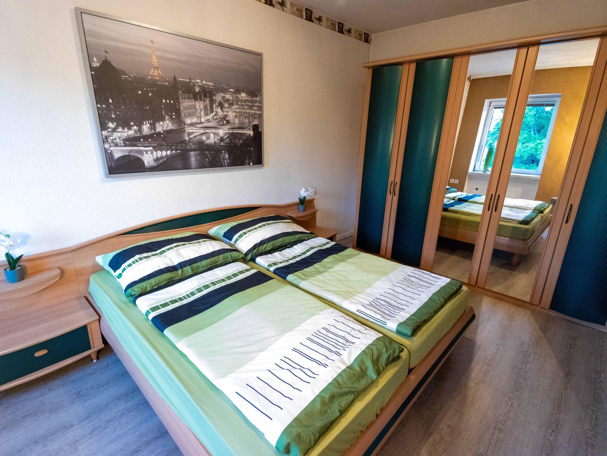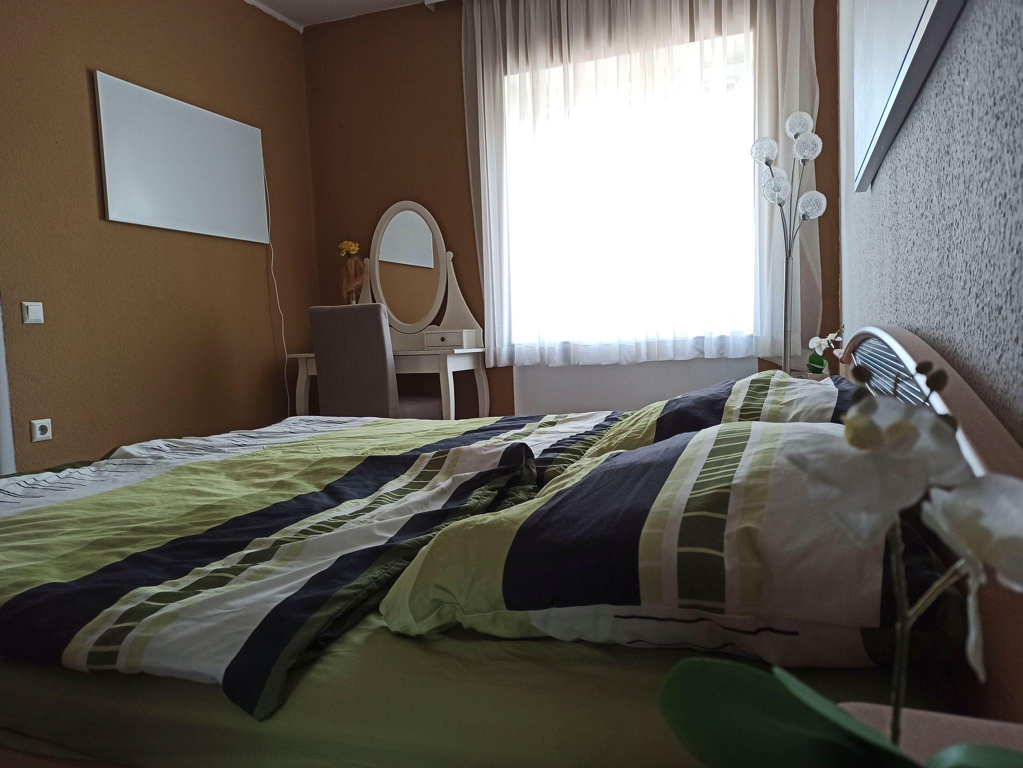 Im Schlafzimmer befindet sich ein großes Doppelbett (1,80 x 2 m) und ein großer Spiegelschrank. Bettwäsche ist vorhanden.