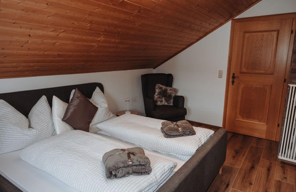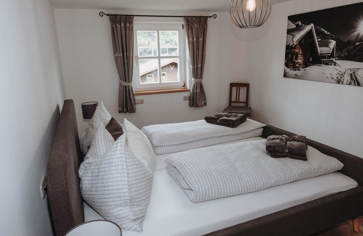 2 Schlafzimmer für je 3 Personen (1 Doppelbett + 1 Einzelbett im Vorzimmer/Durchgangszimmer)