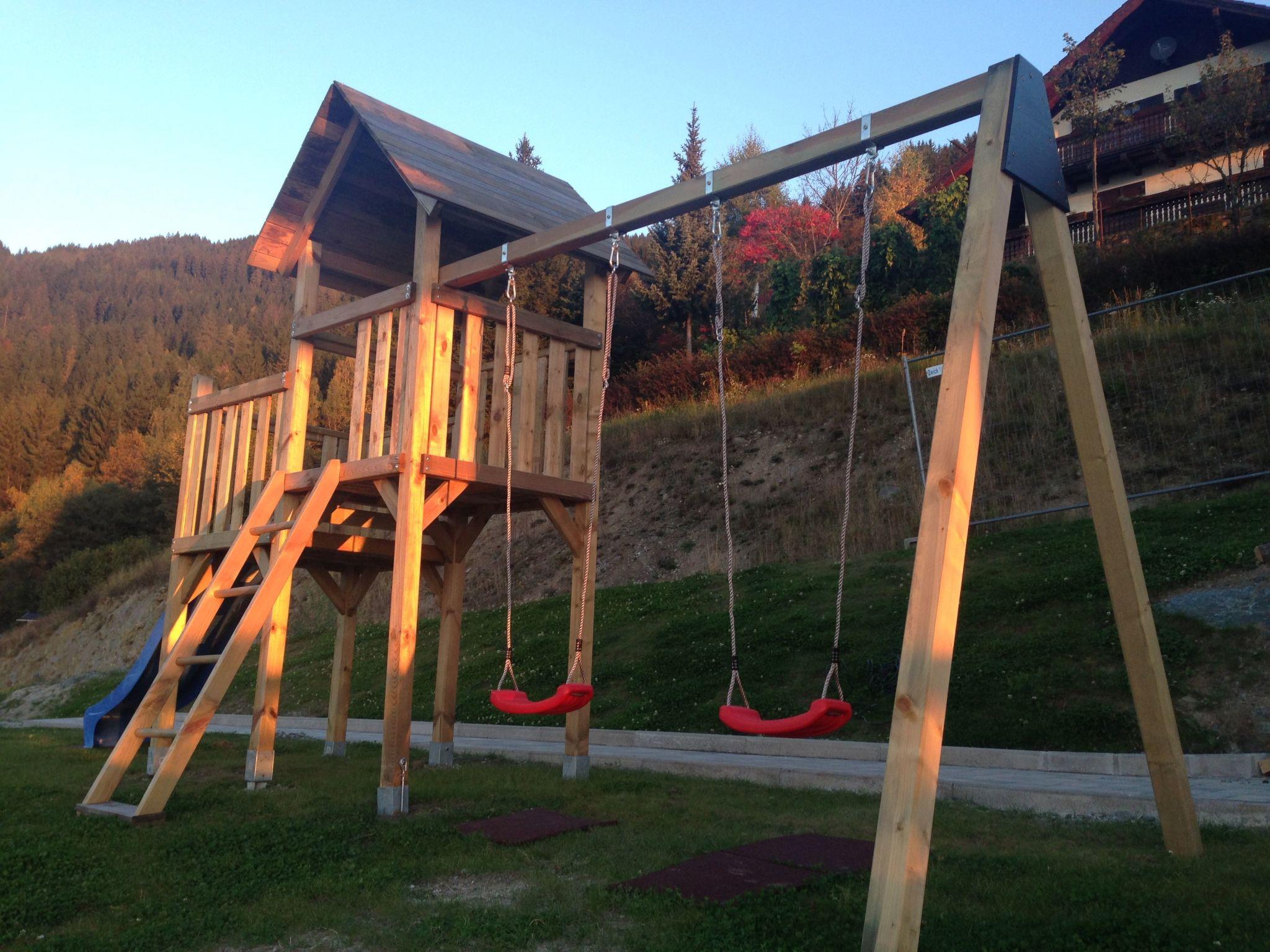 The generous garden provides garden furniture and play equipment and is for shared use with a further apartment. You can relax here, read a good book or spend leisurely evenings with friends and family. Three car parking spaces are available. The big balcony provides a dining table, chairs and a grill. There is also a further balcony. The location of the apartment and the balconies affords a breathtaking view of the mountains and Ossiacher See. Whether in spring, summer, autumn or winter – this view of nature has a special charm in any season.
