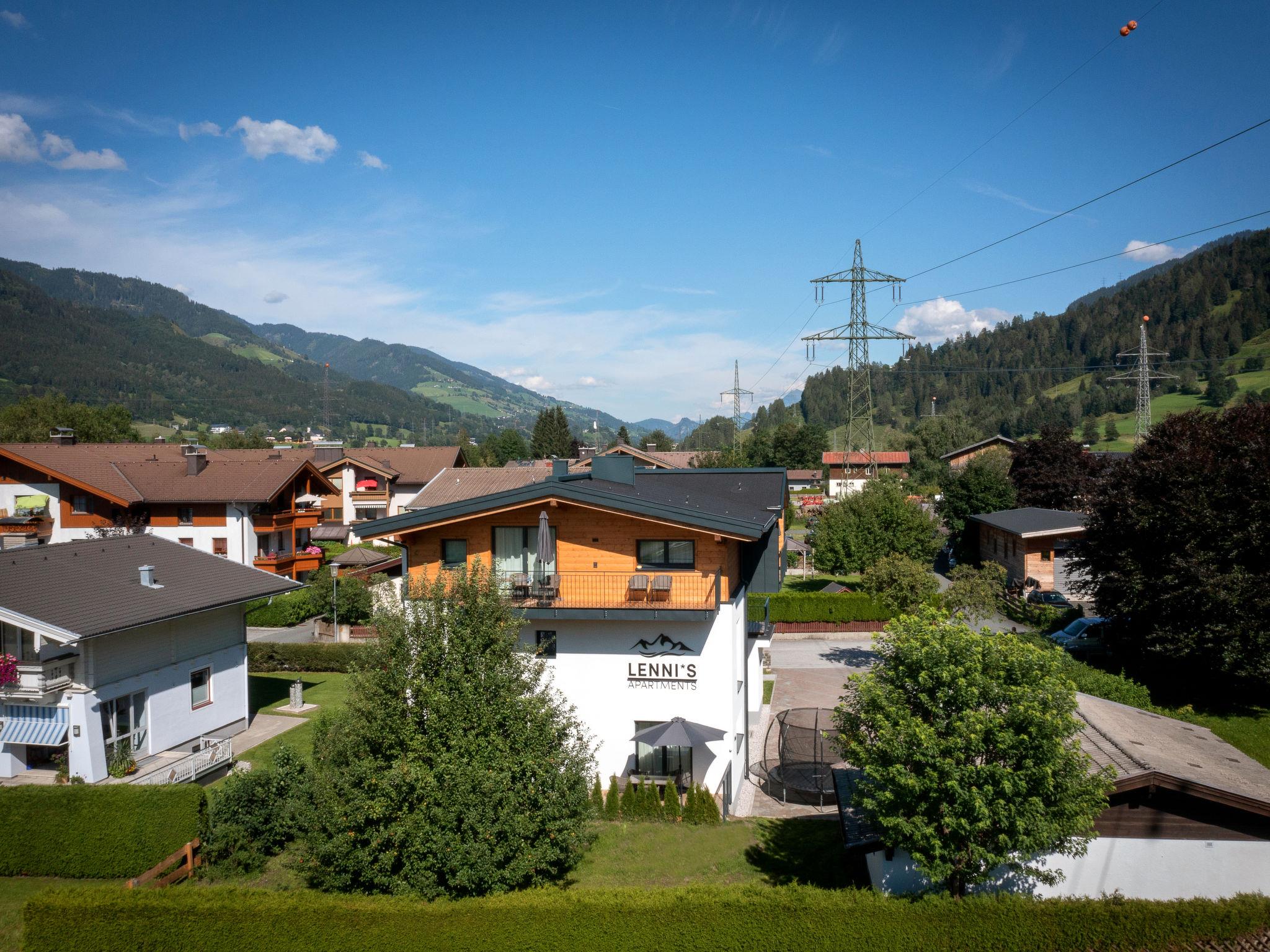 Modern, comfortable apartment block "Lenni´s", 3 storeys, renovated in 2022. 6 apartments in the residence. 800 m from the centre of Bruck, 6 km from the centre of Zell am See, 6 km from the centre of Kaprun, 5 km from the lake, 4 km from the skiing area. For shared use: large, well-kept garden (fenced). Garden furniture, barbecue, children's playground (swing). In the complex: lounge, WiFi, table football, trampoline, storage room for bicycles, storage room for skis, washing machine (extra), tumble dryer (extra), ski boot dryer. Bread roll service. Parking on the premises. Supermarket, bakery 500 m, bus stop 200 m, outdoor swimming pool 2.5 km, thermal baths "Tauern Spa" 9 km, bathing lake "Zeller See" 5 km. Golf course (36 hole) 4.5 km, cycle lane 200 m, skisport facilities 4 km. Well-known ski regions can easily be reached: Schmittenhöhe 4 km, Maiskogel-Kitzsteinhorn 6 km. Well-known lakes can easily be reached: Zeller See 5 km. Hiking paths: Schmittenhöhe 4 km. Please note: suitable for families.