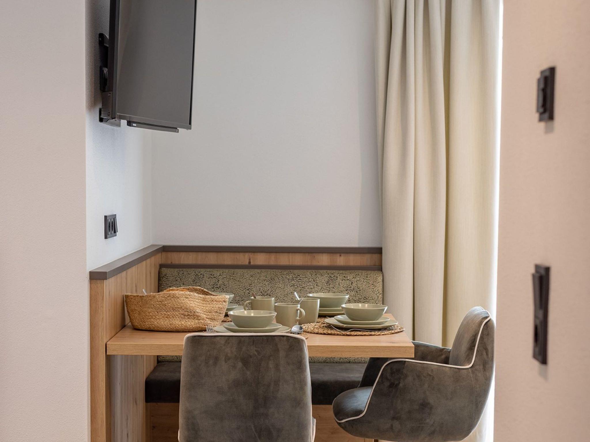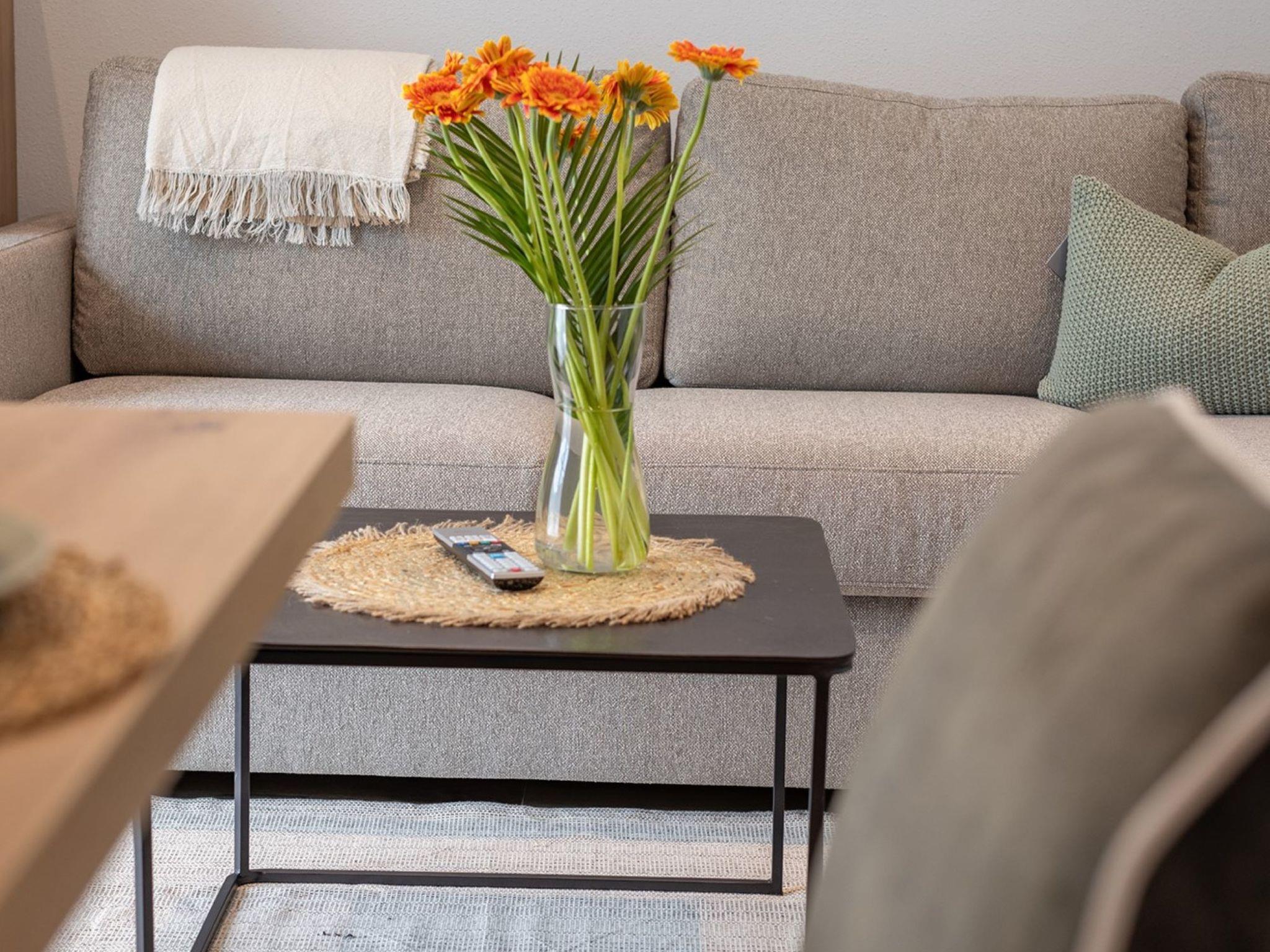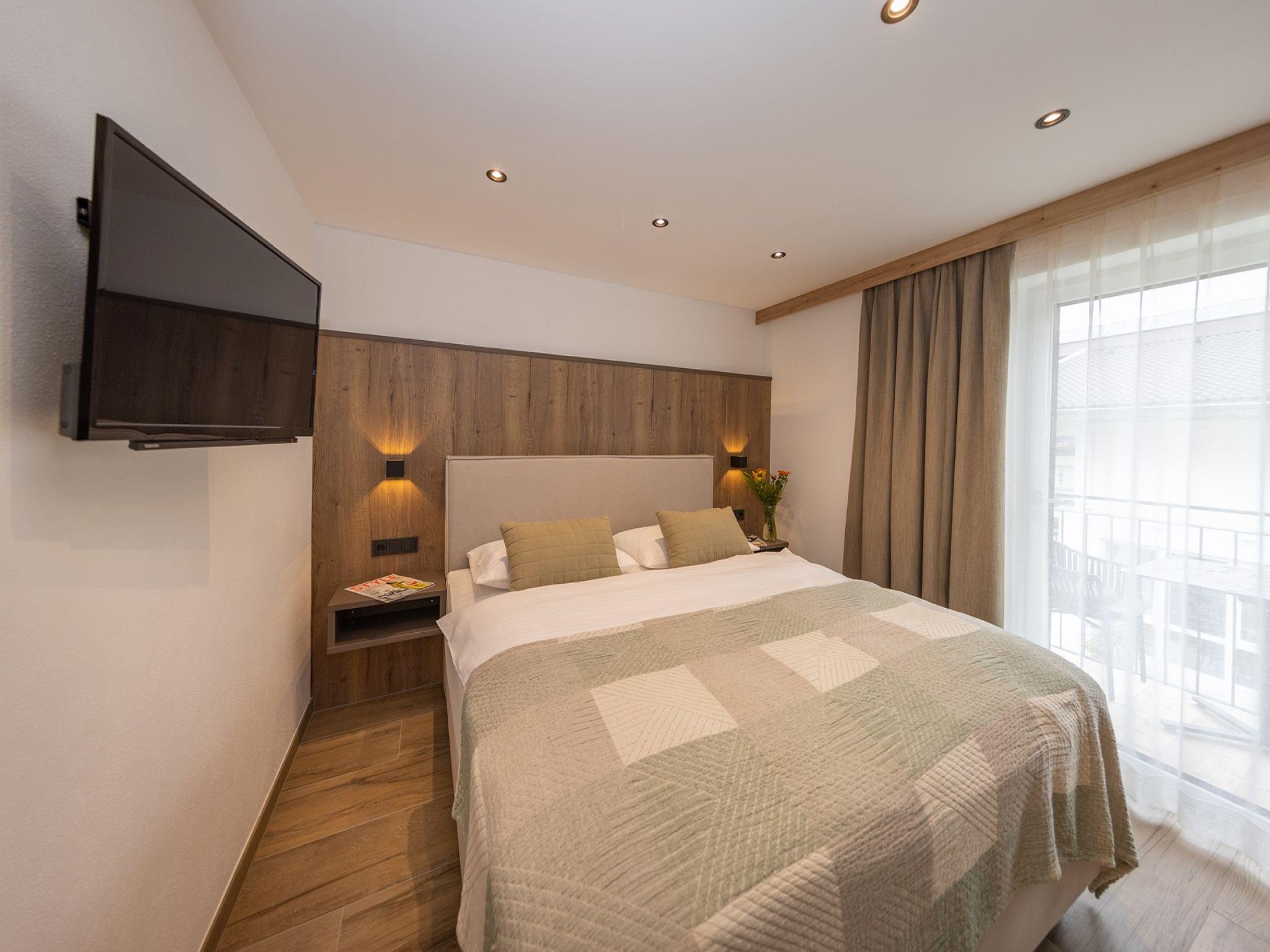 "Top 4", 2-room apartment 55 m2 on 1st floor. Bright, very modern and tasteful furnishings: entrance hall. 1 double bedroom with cable TV (flat screen). Kitchen-/living room (oven, dishwasher, 4 ceramic glass hob hotplates, toaster, kettle, electric coffee machine) with 1 double sofabed, dining table and cable TV (flat screen). Exit to the balcony. Shower/WC. Underfloor heating. Balcony 6 m2. Very beautiful view of the mountains and the countryside. Facilities: Internet (WiFi, free). Please note: 1 pet/ dog allowed. Smoke alarm. 50602-000351-2022