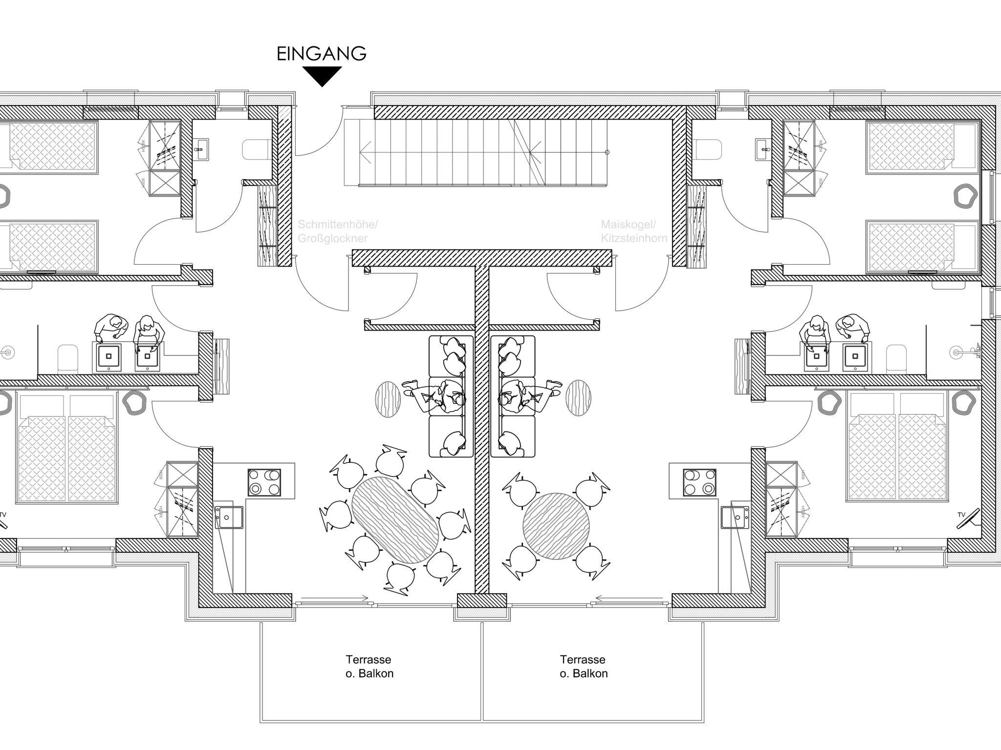 "Das Georgen, Großglockner+Kitzsteinhorn", 6-room apartment 124 m2 on 1st floor. Comfortable furnishings: living/sleeping room with 1 double sofabed, dining table and TV (flat screen). Exit to the balcony. 2 double bedrooms. 2 rooms, each room with 2 beds and TV (flat screen). Living/sleeping room with 1 double sofabed, dining table and TV (flat screen). Exit to the balcony. Open kitchen (dishwasher, 4 ceramic glass hob hotplates, toaster, kettle, microwave, electric coffee machine) with dining table. 2 showers/WC, 2 sep. WC's. Underfloor heating. 2 balconies. Balcony furniture. Facilities: iron, baby cot. Internet (WiFi). Parking (roofed, 2 cars). Please note: non-smokers only. 1 pet/ dog allowed. Smoke alarm. No internal connecting door between the separated properties. This offer consists of the apartments AT5671.616.3 and AT5671.616.4. 50602-000341-2020