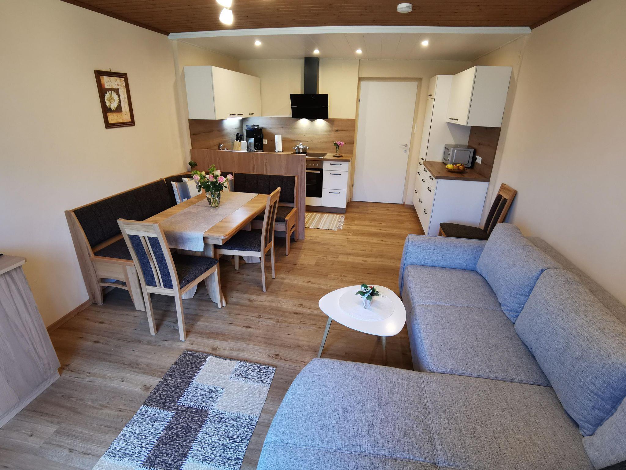 Appartement für 2 – 5 Personen, 2 gemütlich eingerichtete Schlafzimmer, Badezimmer mit Dusche und Fenster, Fön, WC separat mit Fenster, SAT-TV, Radio, WLAN, großer Südbalkon mit Tisch, Stühlen, Liegestühlen und Sonnenschirm; Wohn-Küche mit Geschirrspüler, Mikrowelle, Kaffeemaschine. Selbstversorgung, inkl. Bettwäsche, Handtücher, Strom- und Heizkosten, im Sommer Kärnten Card inklusive, Benützung sämtlicher Freizeiteinrichtungen; Benützung von Waschmaschine und Wäschetrockner auf Anfrage möglich; Endreinigung € 65,--