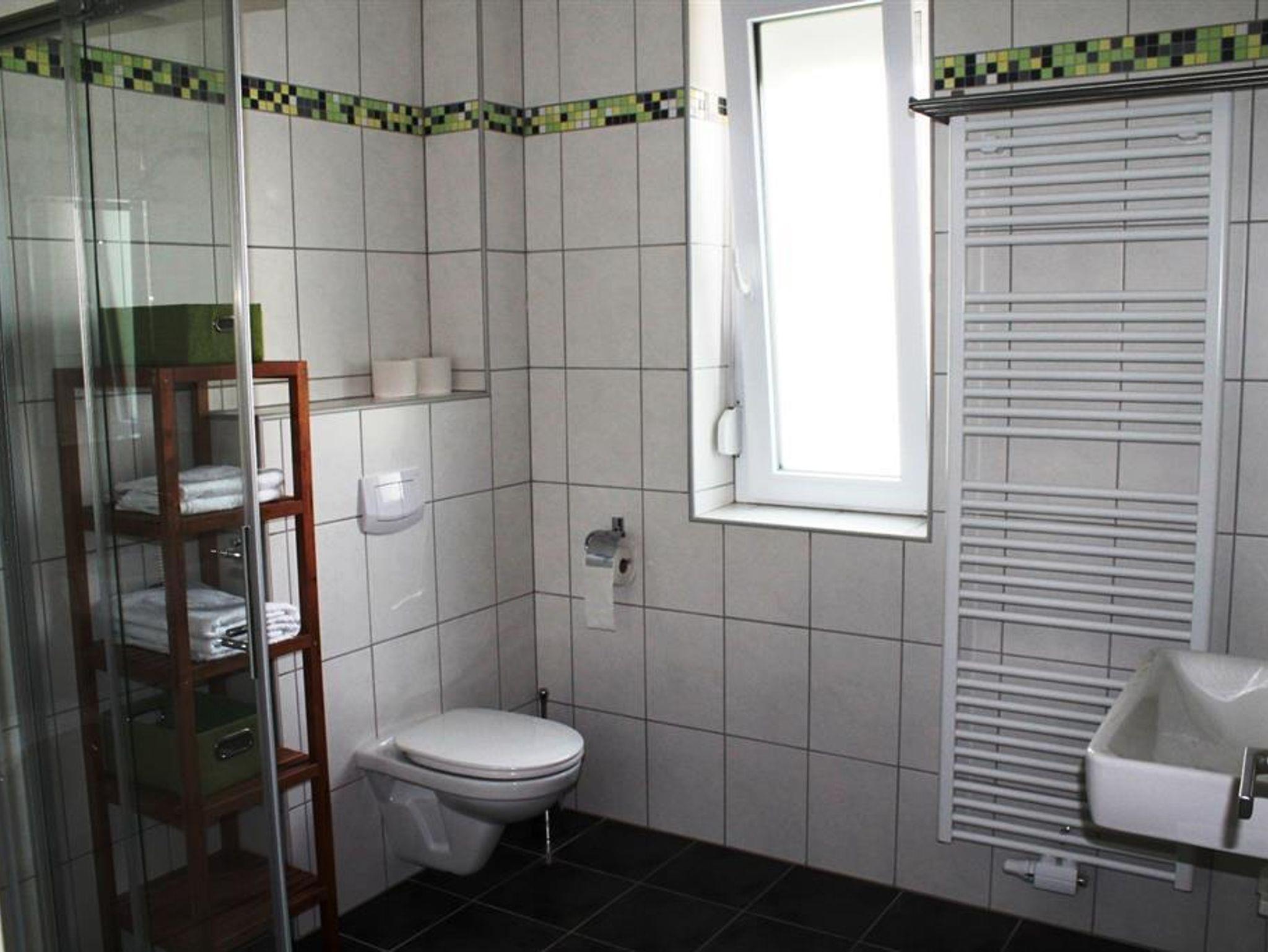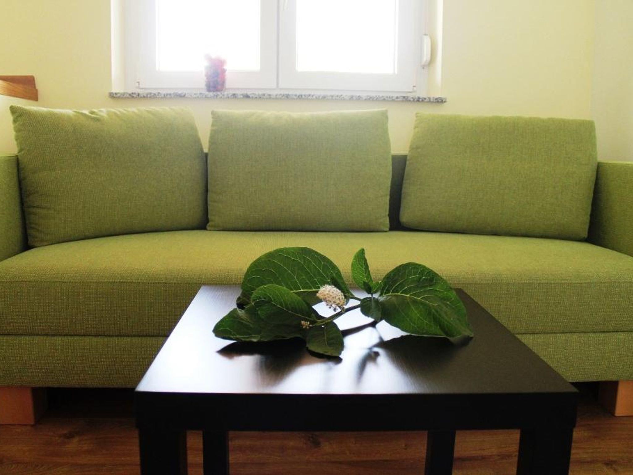 Ferienwohnung mit 1 Schlafzimmer mit Doppelbett und Joka-Einzelsofa, komplett eingerichtete Küche incl. Geschirrspüler, das Sofa im Wohnraum kann auch als Einzelbett umfunktioniert werden, SAT-TV, Dusche, WC, überdachte Terasse mit Sitzgelegenheit, ruhige Lage, Parkmöglichkeit vor dem Haus. Wir freuen uns auf Ihren Besuch.
