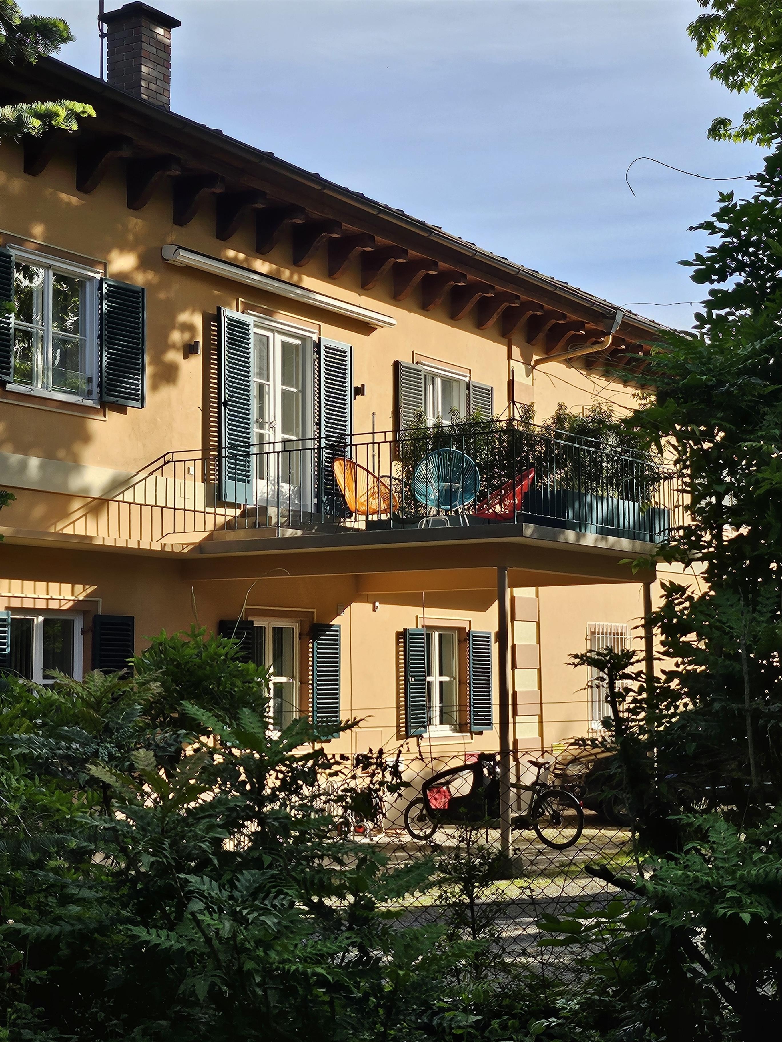Unsere "golden flat" ist die neueste der GrazRentals Wohnungen. Alle Fenster haben einen Blick auf den Garten der 170 Jahre alten und denkmalgeschützten Villa "Markhof".