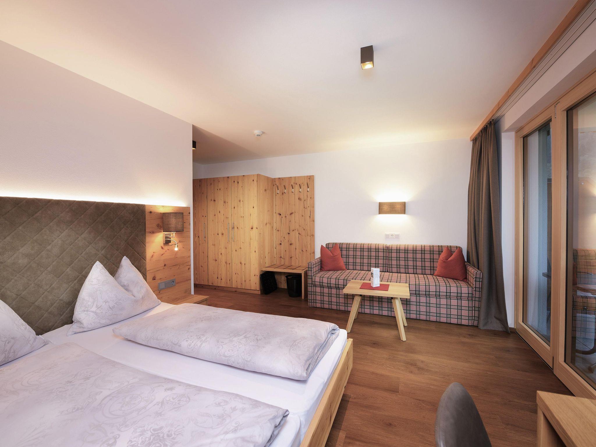Das Appartement Zwergerl ist rund 55 m2 groß und bietet Platz für 2 bis 5 Personen. Der Balkon lädt zum Verweilen ein und die Einrichtung ist im alpinen Stil.