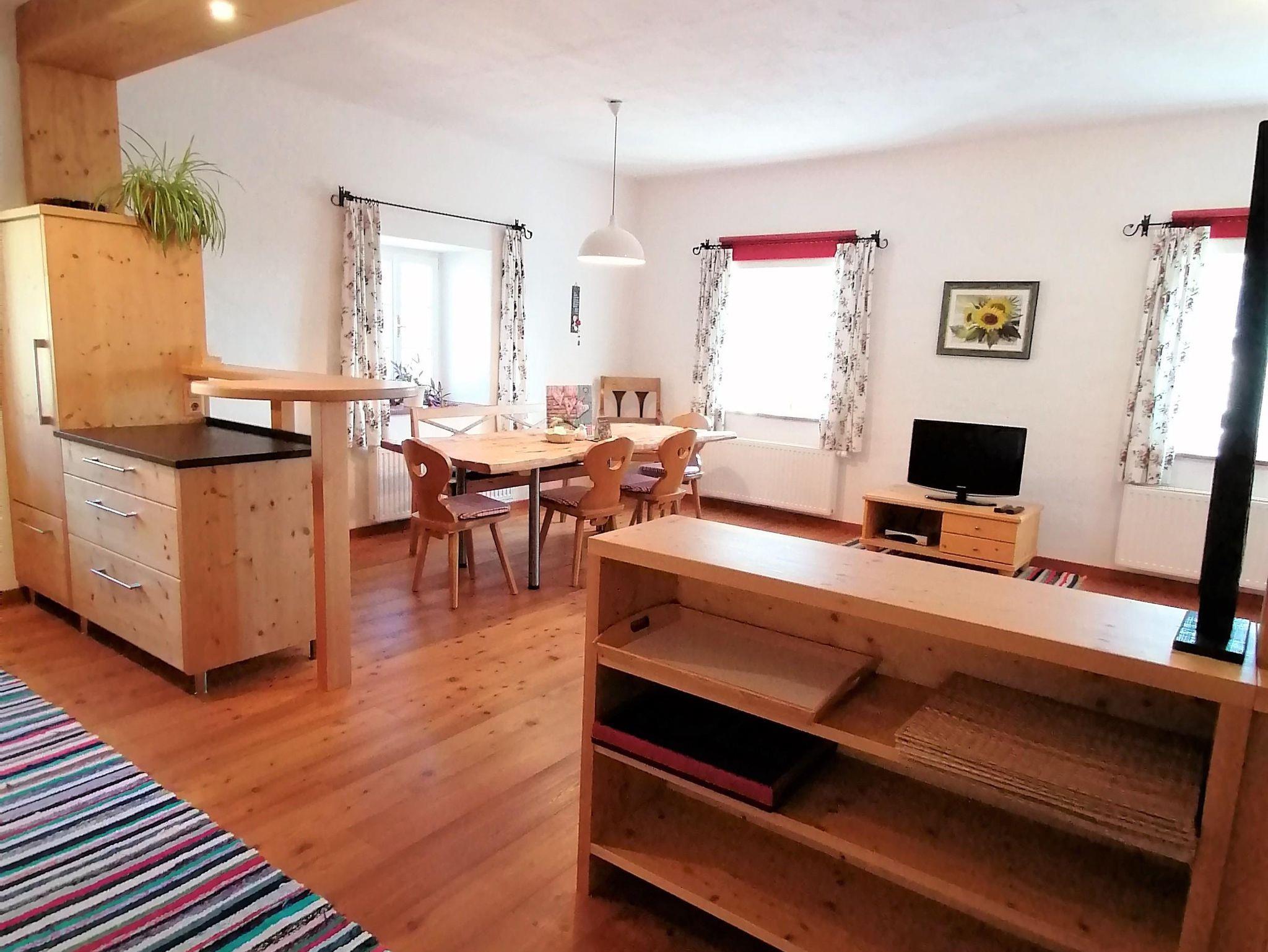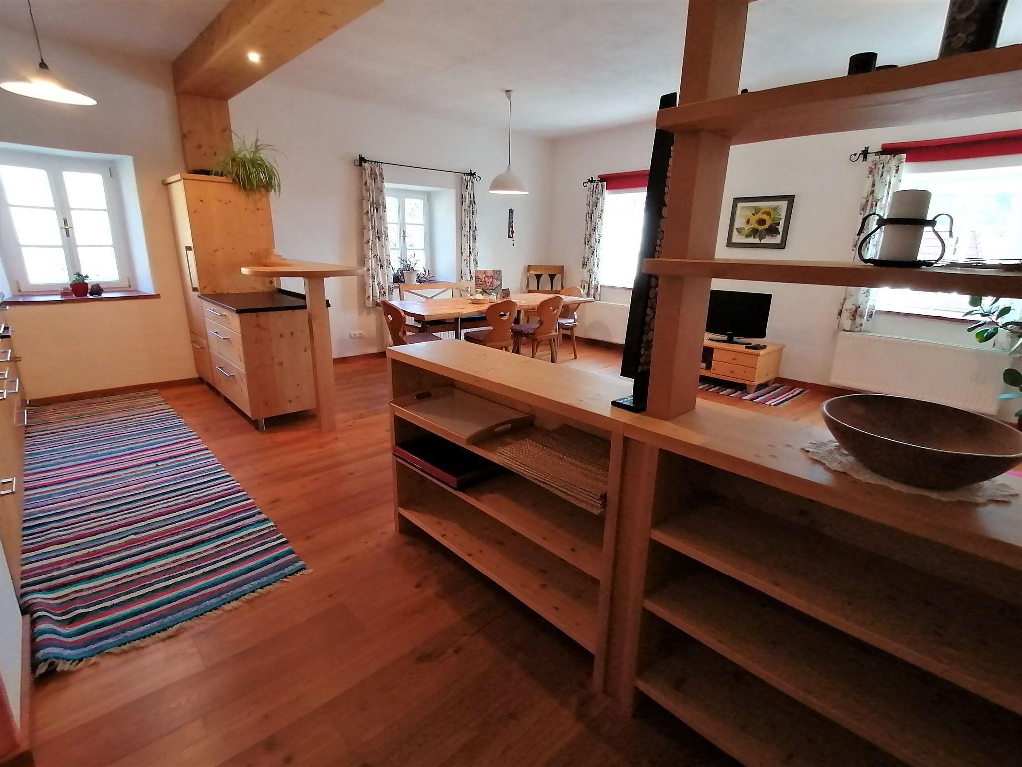 Das Appartement wurde 2014 sehr großzügig errichtet, ist liebevoll und komfortabel mit Möbel und Böden in Massivholz ausgestattet und liegt im 2. Stock unseres „Haupthauses“. Die Wohnung verfügt über eine sehr große, voll ausgestattete Küche mit Kühlschrank plus Gefrierfach, Geschirrspüler, Mikrowelle, E-Herd plus Ceranfeld, Filter-Kaffeemaschine und Wasserkocher, einem Schlafzimmer mit Doppelbett und einem Schlafzimmer mit Stockbett und Couch, einem großen Wohn- und Essbereich mit Fernseher sowie einem Bad mit französischem Balkon, Dusche und WC.