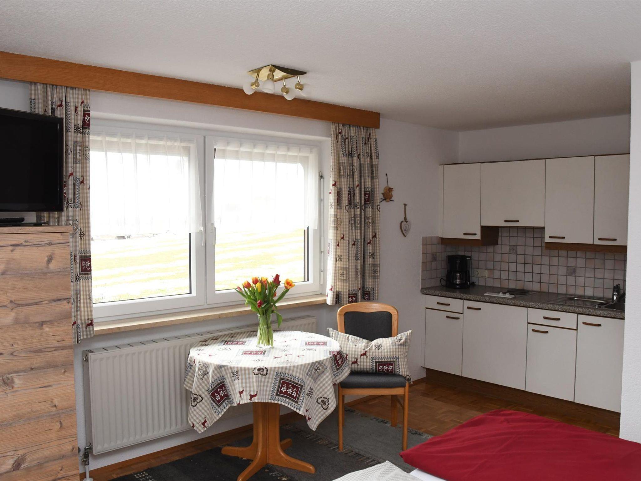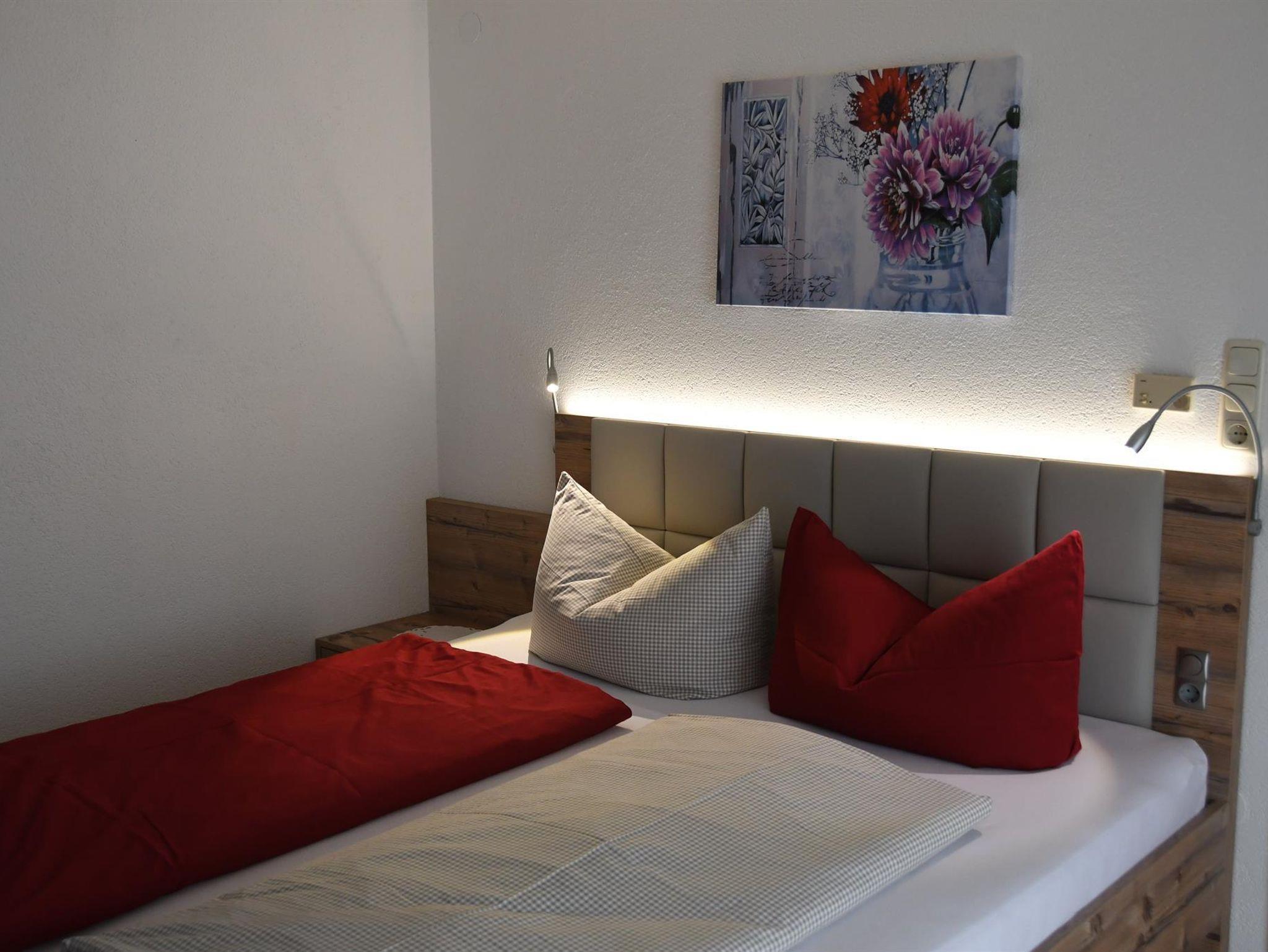 Gemütliche Ferienwohnung für 2 Pers. In ruhiger, sonniger Lage, Balkon, großer Garten. Rad- und Wanderwege, Langlaufloipe, Schilift, sowie die Reuttener Bergbahn sind in nächster Nähe. Handtücher, Bett- und Tischwäsche vorhanden. 1 Ferienwohnung, 2 Pers. 25 m², 1. Stock, 1 Wohnschlafraum, Kochnische, Dusche/WC, Balkon, Kabel TV, WLAN
