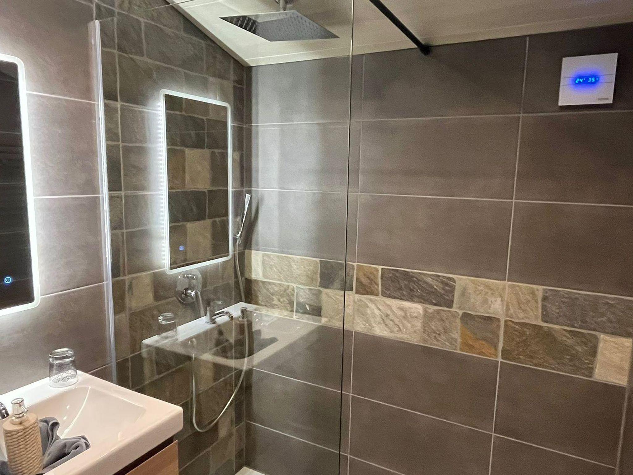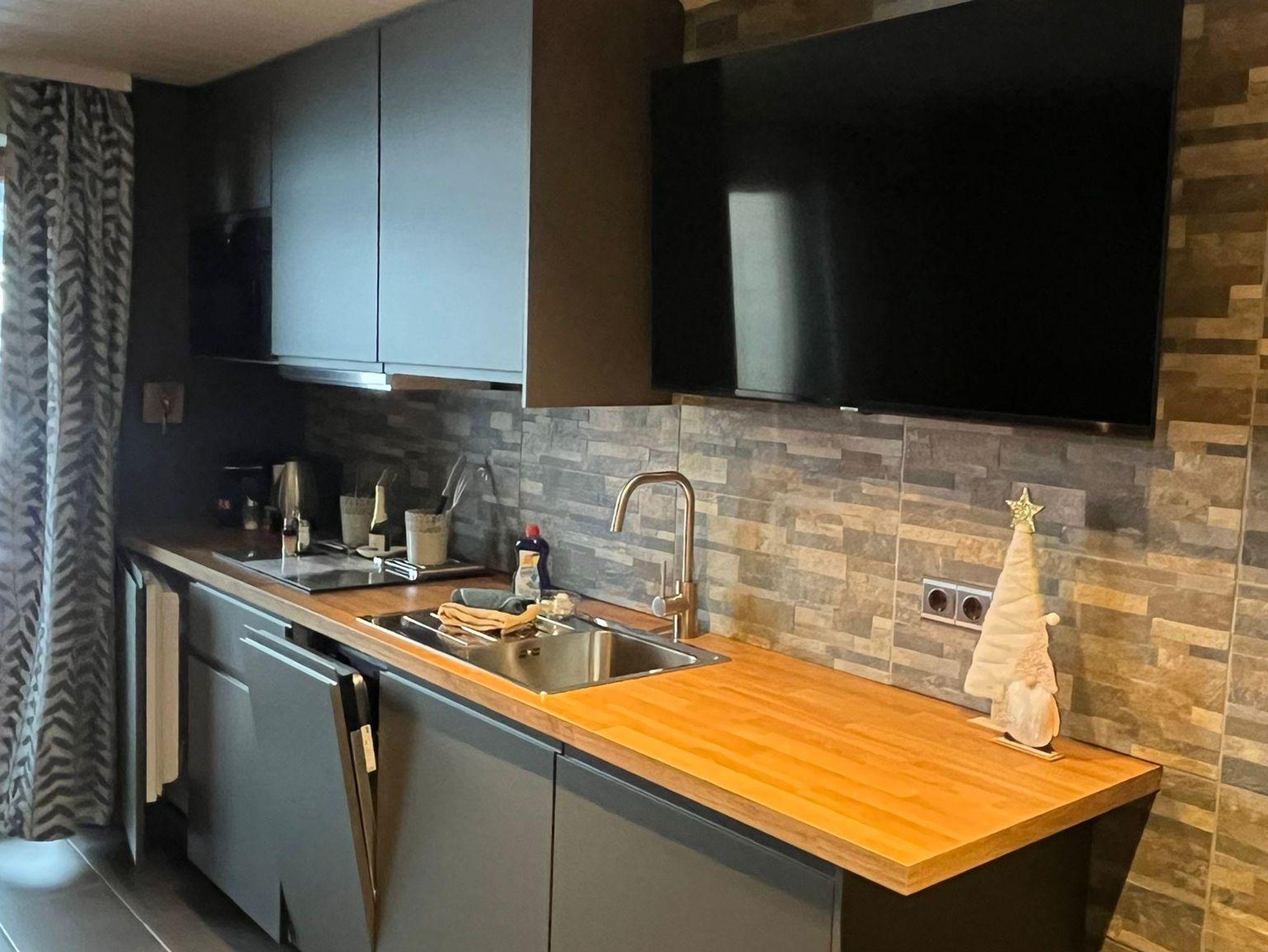Wohnzimmer mit Küche und Essbereich, Schlafsofa, Smart-TV mit Satellitenempfang. Schlafzimmer mit Doppelbett und Etagenbett. Das Badezimmer verfügt über eine Dusche und ein Waschbecken. Separates WC. Diese Wohnung hat einen überdachten Balkon im Süden mit Blick auf den Garten. Kostenlos WLAN