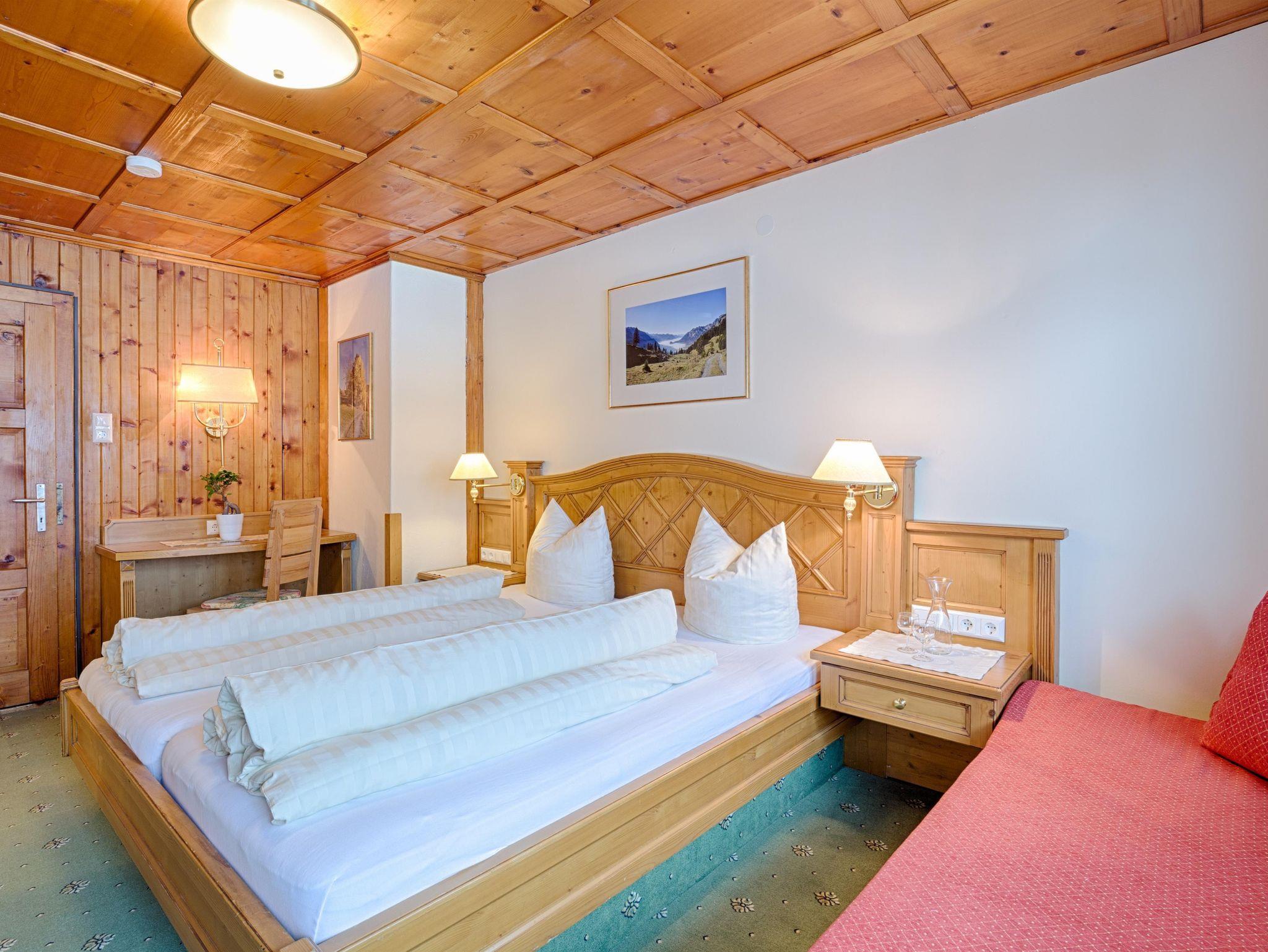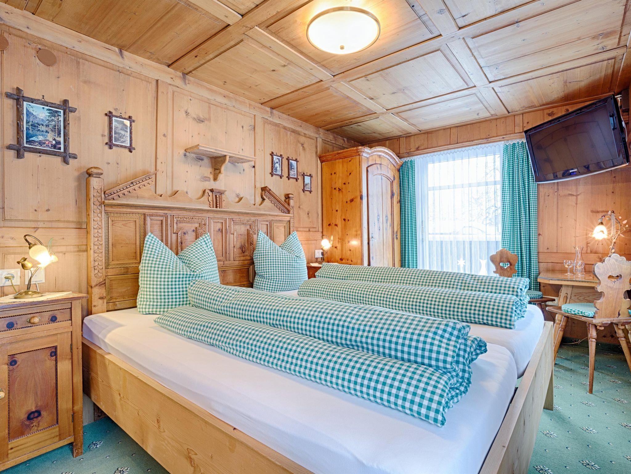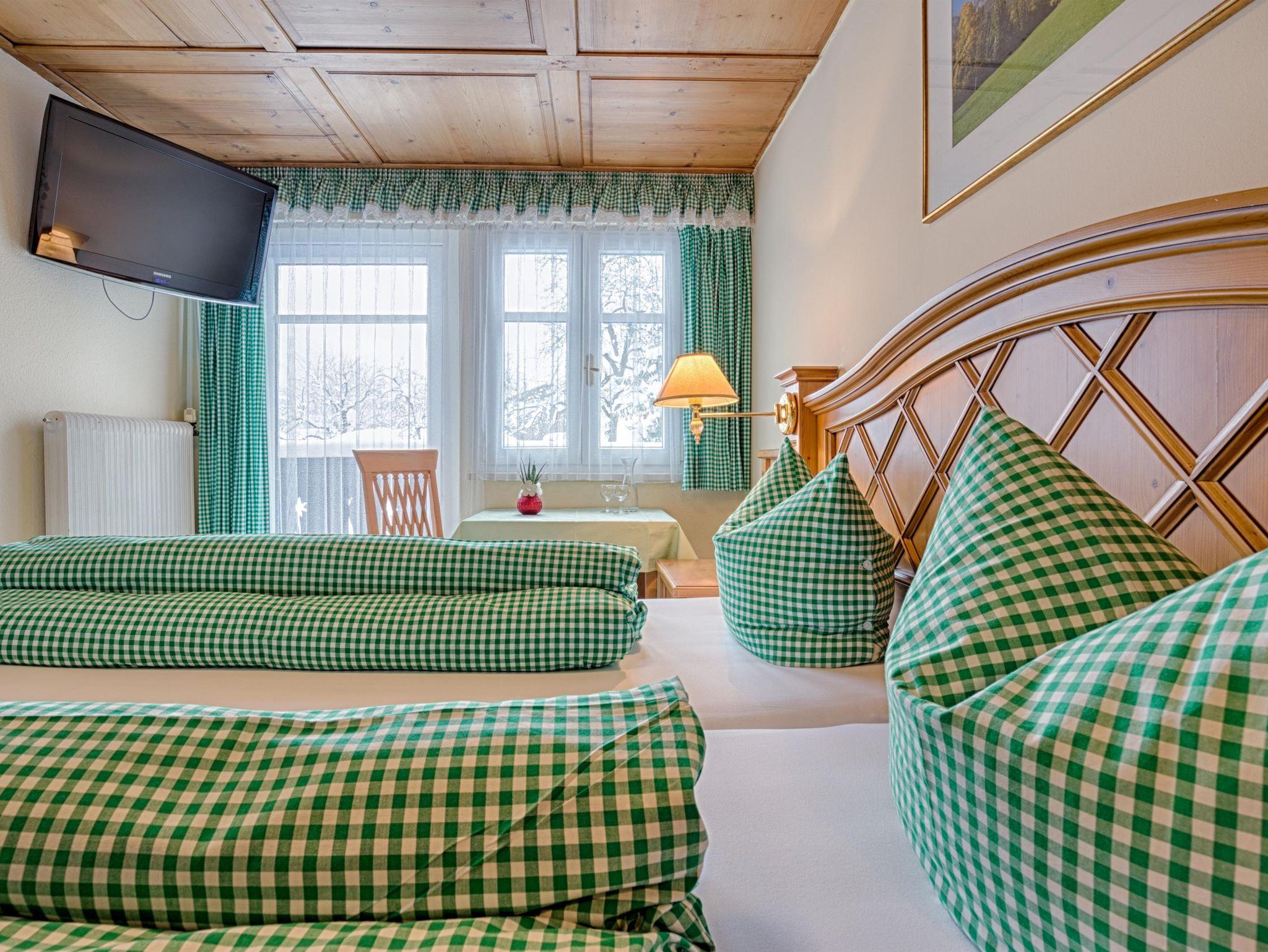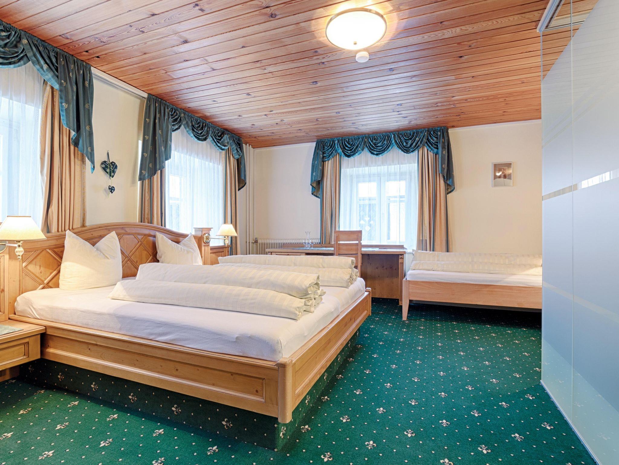 Zwei- oder Dreibettzimmer Arlberg mit Dusche, WC, Fön, SAT-TV, W-LAN, Selbstwahltelefon, Safe und teilweise Balkon