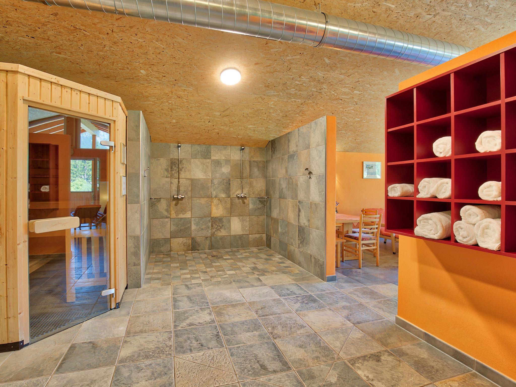 220 m² Wellnessbereich in unserem Campinggebäude mit Finnischer Sauna, Tepidarium (Biosauna) & Infrarot-Wärmekabine und Zirbensauna.