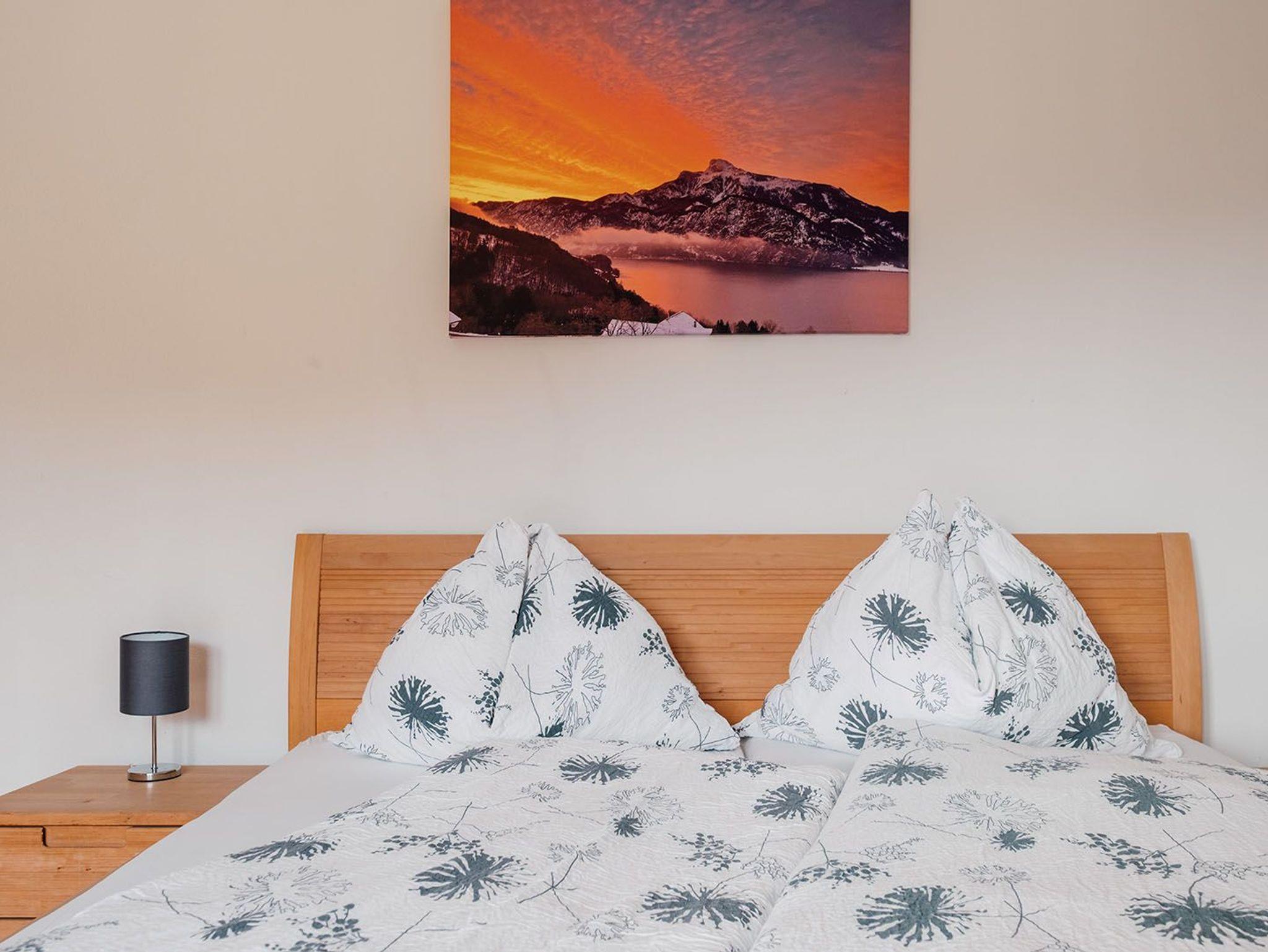 Die gemütliche Wohnung liegt auf einem idyllischen Bauernhof im Salzkammergut, mitten in der Natur, in sonniger Südhnaglage ? ideal für Familien und Ruhesuchende. Die traumhafte Umgebung begeistert mit einem herrlichen Panorama über Mondsee und Schafberg, ebenso wie der beheizte Pool, die Sauna und Infrarotkabine. Wanderungen oder Mountainbike-Touren starten direkt ab der Haustüre.Auf dem wettergeschützen Balkon mit Seeblick können Sie den Abend entspannt ausklingen lassen. Die geräumige Wohnung ist zeitlos modern eingerichtet und bietet einen großzügigen Wohn-Essbereich. Mit dem Flat-Screen-Kabel-TV und WLAN bleiben Sie immer bestens verbunden.
