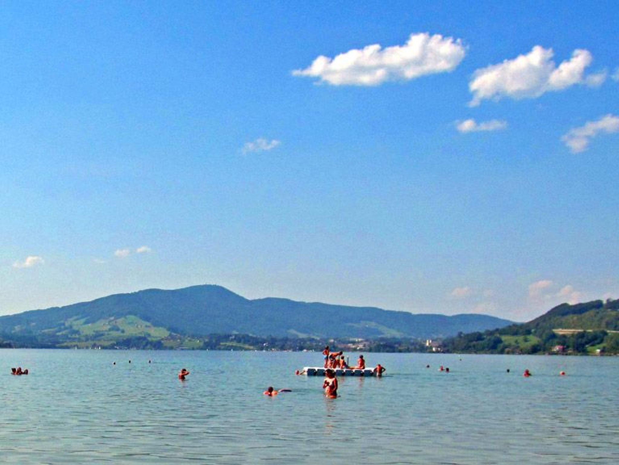 * großer Badeplatz mit vielen Einrichtungen (Sanitär, Beachvolleyballplatz, Kinderstrand, Schwimmplattform...) in Gehreichweite (500 m) und für unsere Gäste kostenfrei