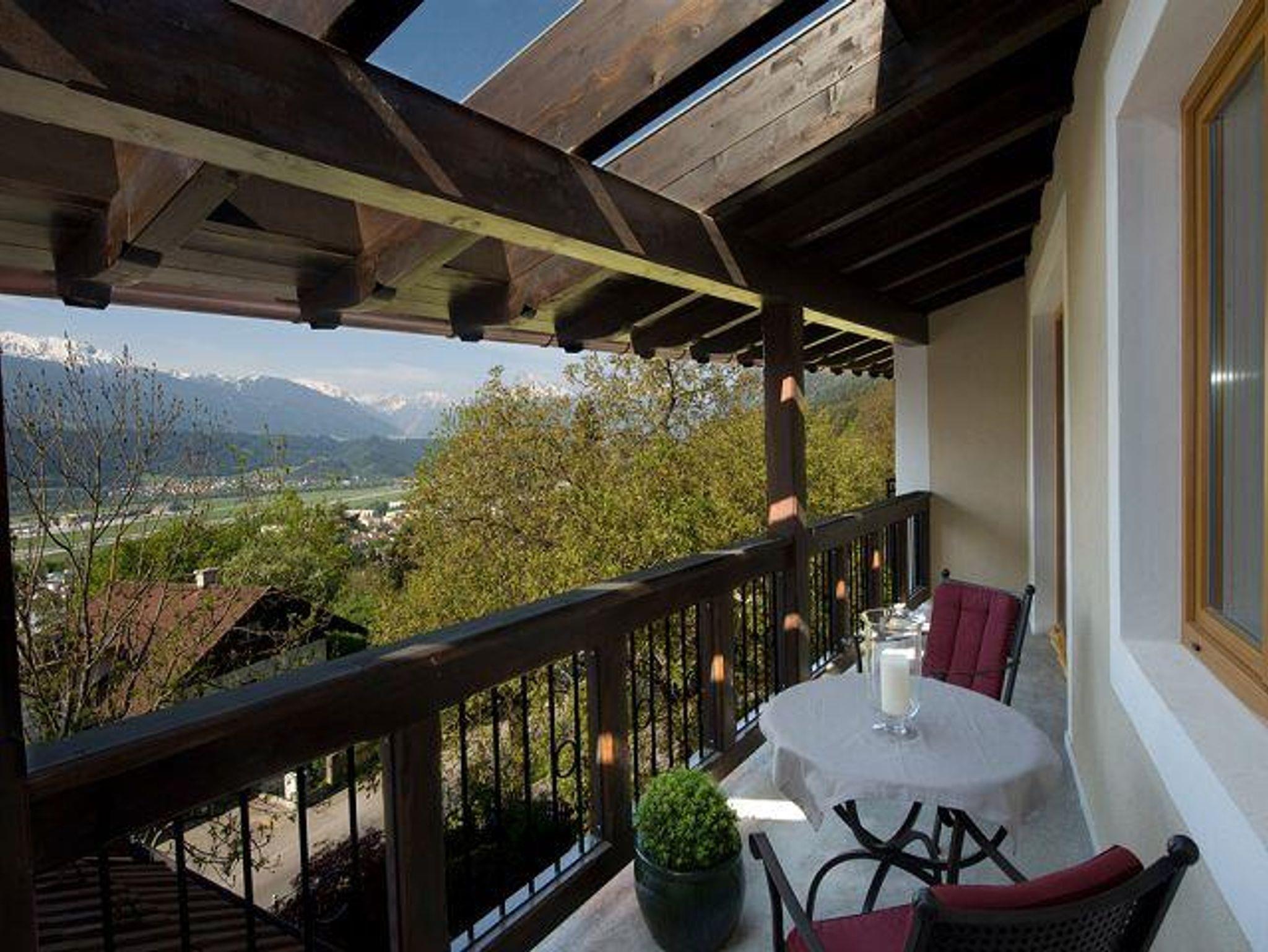 Die ersten Sonnenstrahlen erwarten Sie im Bad unseres Appartements „Morgensonne“. Wenn Sie möchten, können Sie sich auch einen Stuhl schnappen und die Sonne auch auf der Veranda mit Blick auf die majestätische Nordkette begrüßen.