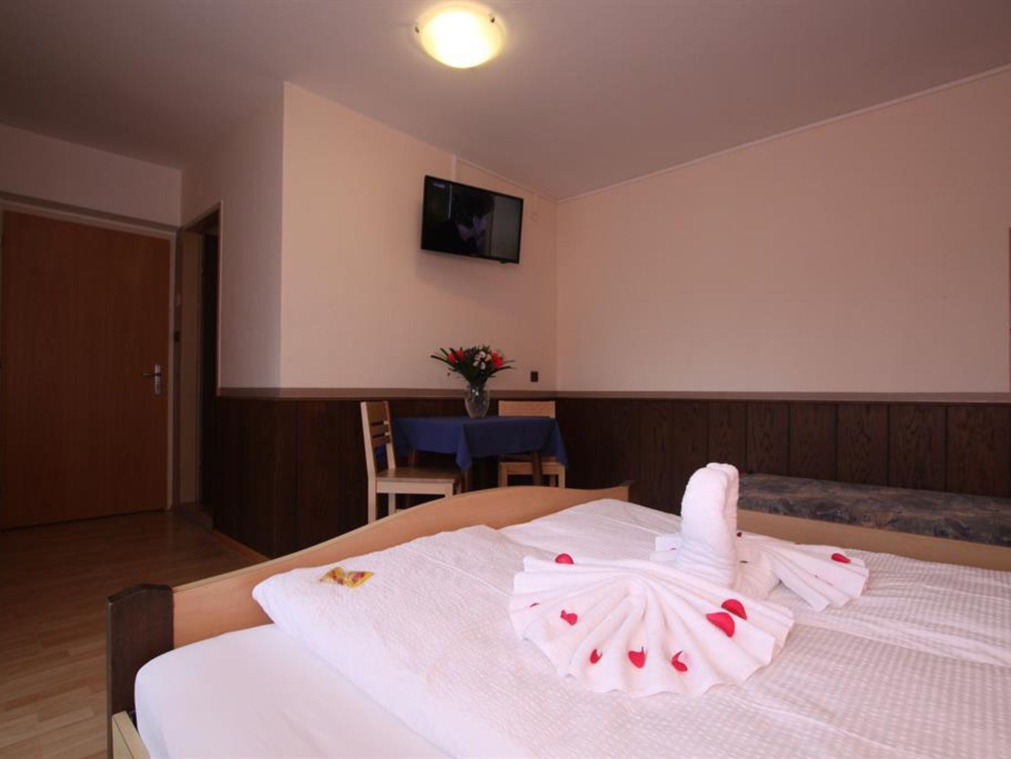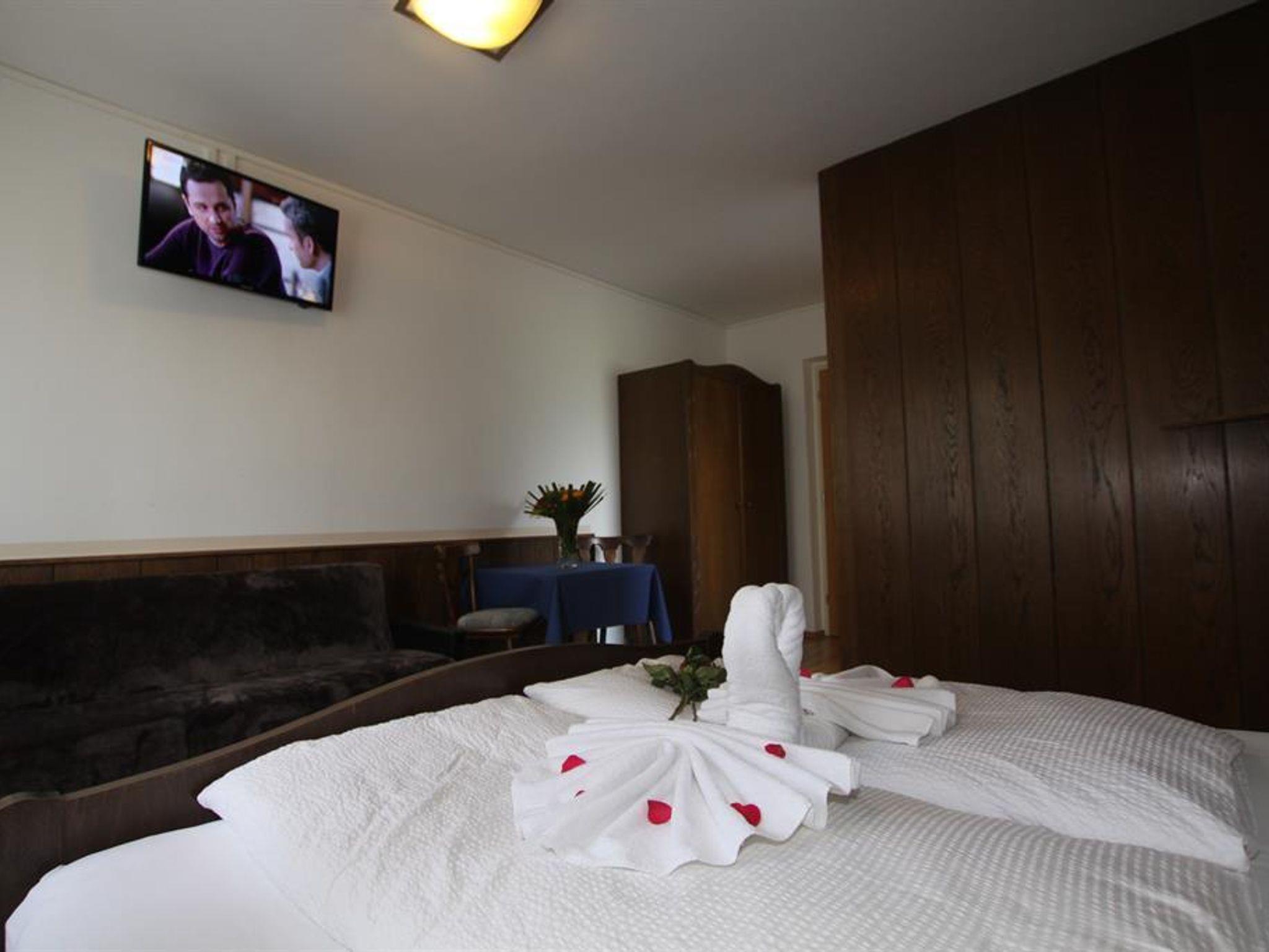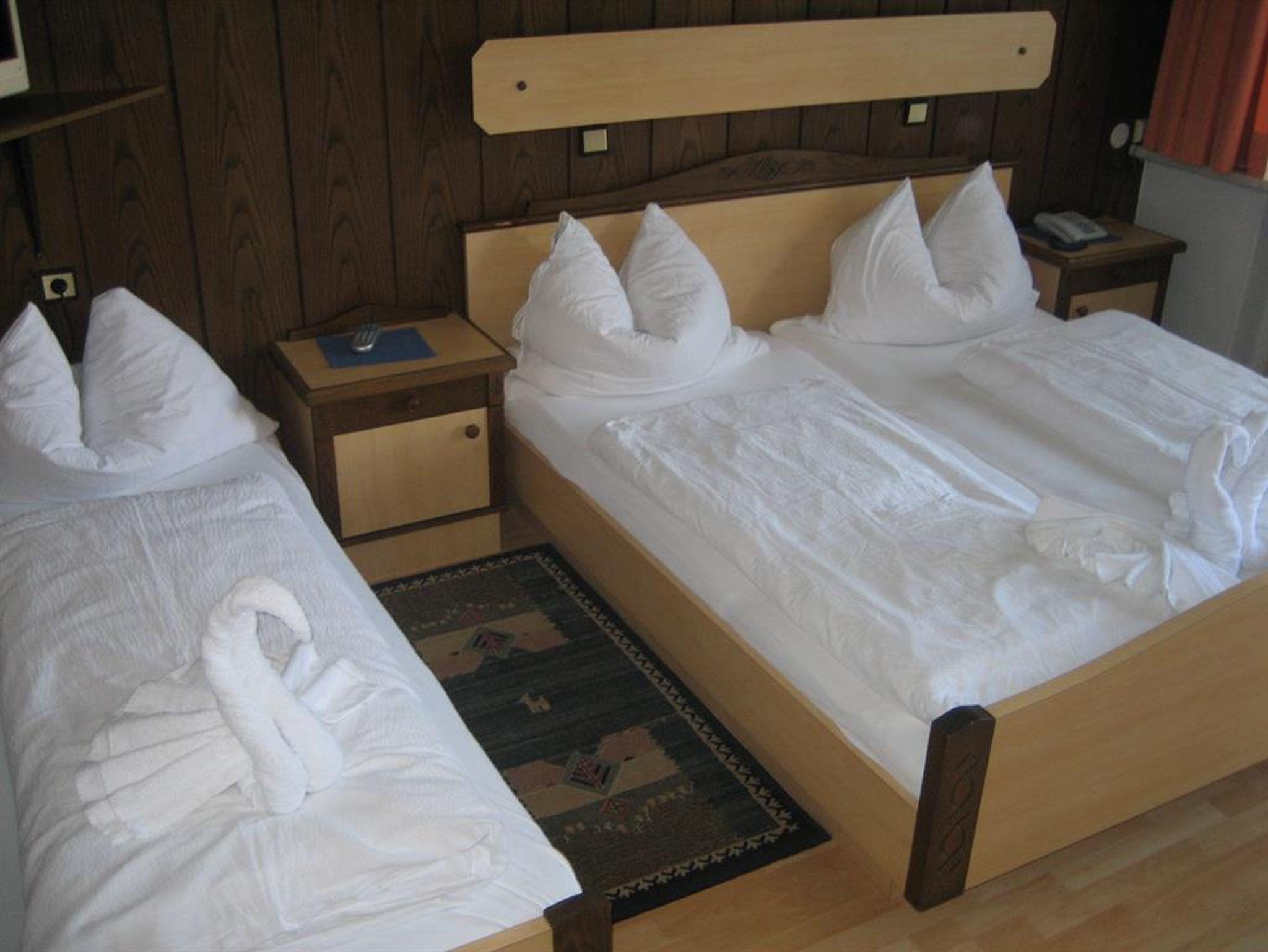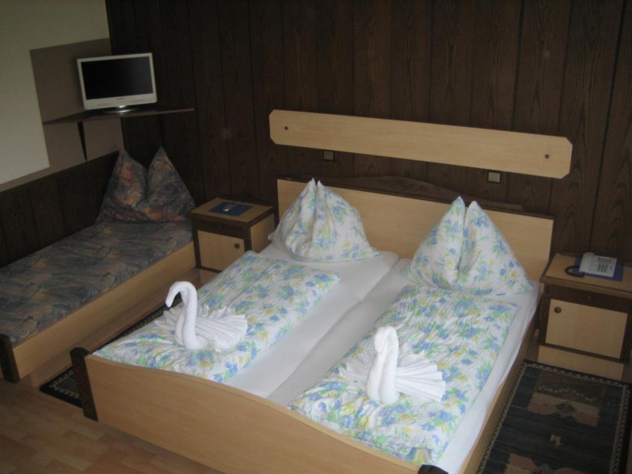 Wir bieten Ihnen gemütliche Doppelzimmer mit Dusche/WC, Telefon, Kabel-TV und Balkon. Gratis-Parkplatz - nachts abgeschlossen. Frühstücksbüffet ist im Zimmerpreis ebenfalls enthalten. In manche Doppelzimmer können auch ein oder zwei Zusatzbetten hineingestellt werden - besonders empfehlenswert ist diese Variante natürlich für Familien. Preis auf Anfrage. Besonders während der Feiertage lohnt es sich oft, kurzfristig telefonisch anzufragen, da die Zimmer zwar früh ausgebucht sind, doch immer wieder kurzfristige Änderungen eintreten können.