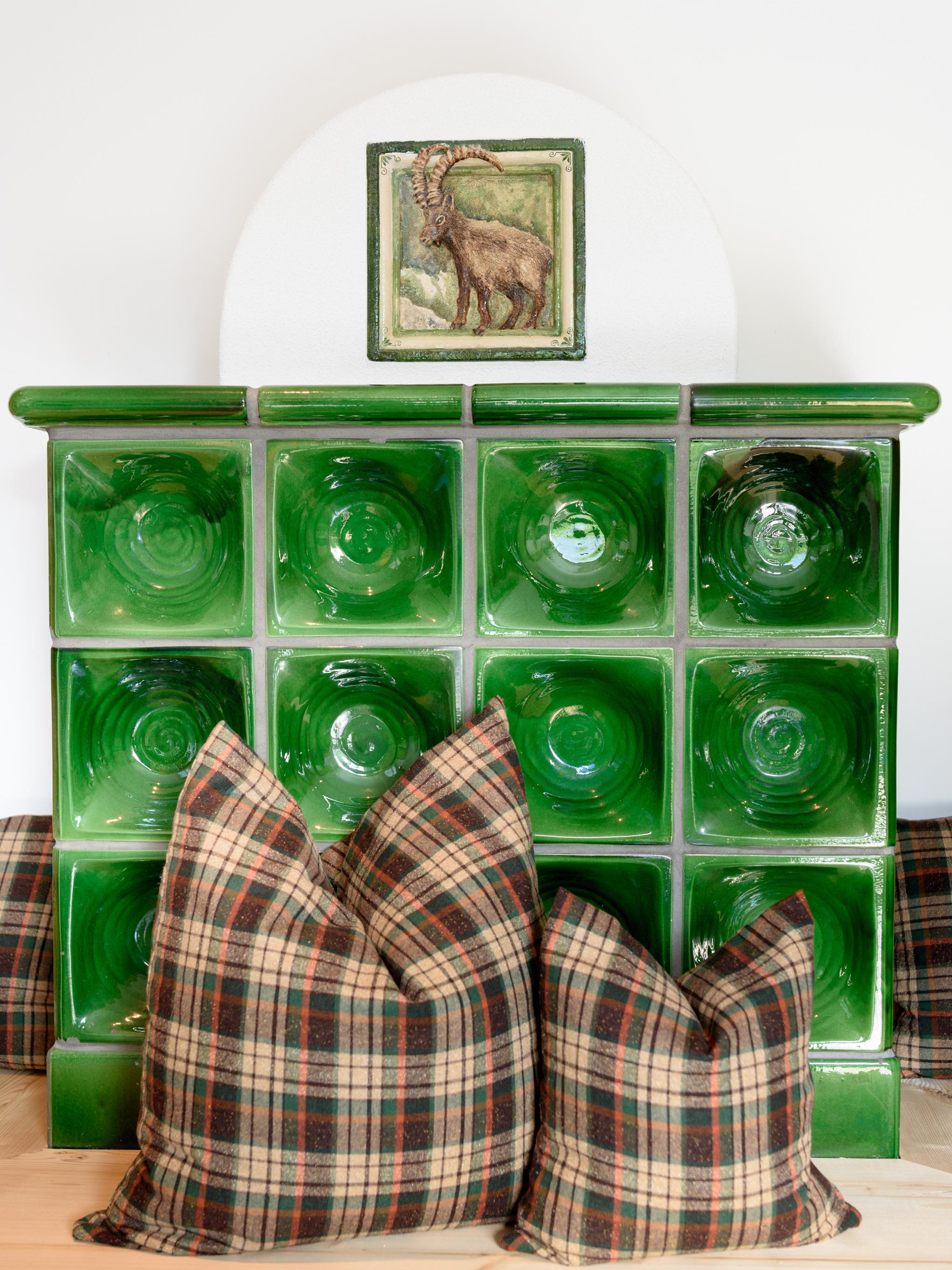 Mit viel Glück können Sie vom Westbalkon des Appartements Gämsen oder Kletterer in den steilen Felswänden hinterm Haus beobachten. Ziemlich sicher aber entdecken Sie im Appartement einen schönen Steinbock. Und zwar in Form der wunderschönen, von einer Tiroler Künstlerin handgefertigten, Ofenkachel.