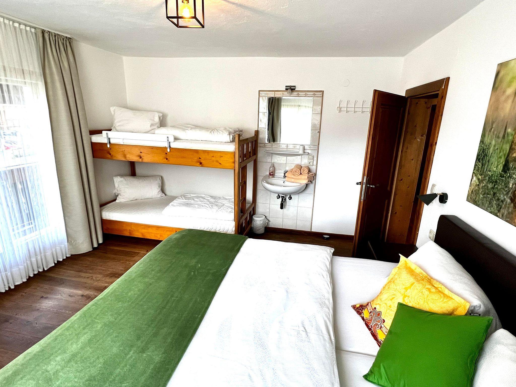 Obergeschoss: 1 Bad (Dusche/WC) + WC extra, 1 Schlafraum 3 Betten, 1 Schlafraum 4 Betten, 1 Schlafraum 2 Betten, Balkon.