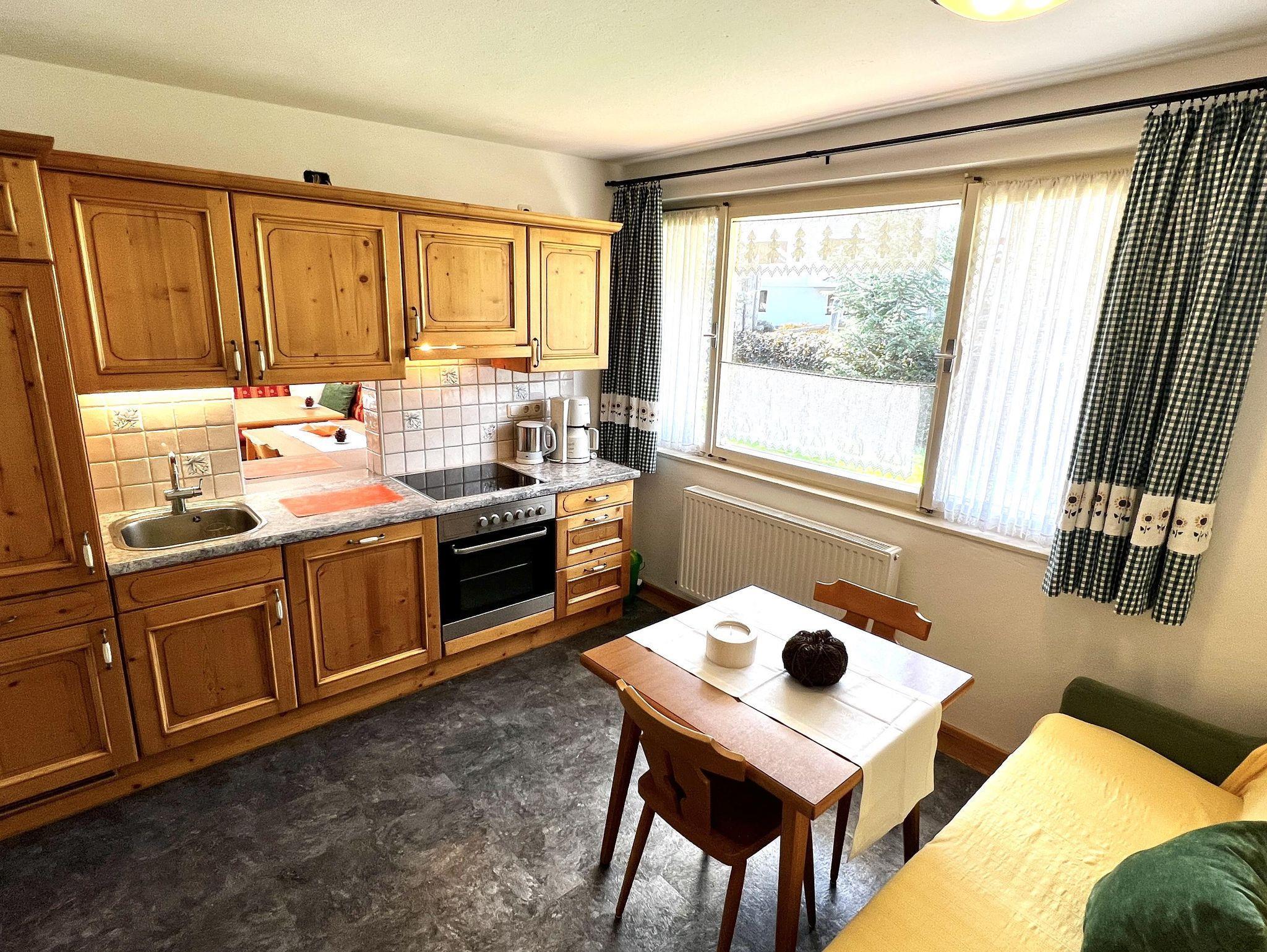 Erdgeschoss: Küche mit Doppelcouch, Küchenzeile mit 4 Platten-Herd, Backrohr, Kühlschrank, Geschirrspüler, Kaffeemaschine, Wasserkocher, reichlich Geschirr. Stereoanlage mit CD Spieler. 1 Schlafraum m. 3 Betten, Bad (Dusche/WC) mit Waschmaschine gegen geringer Gebühr + WC extra, Aufenthaltsraum für ca. 12 Personen Platz.