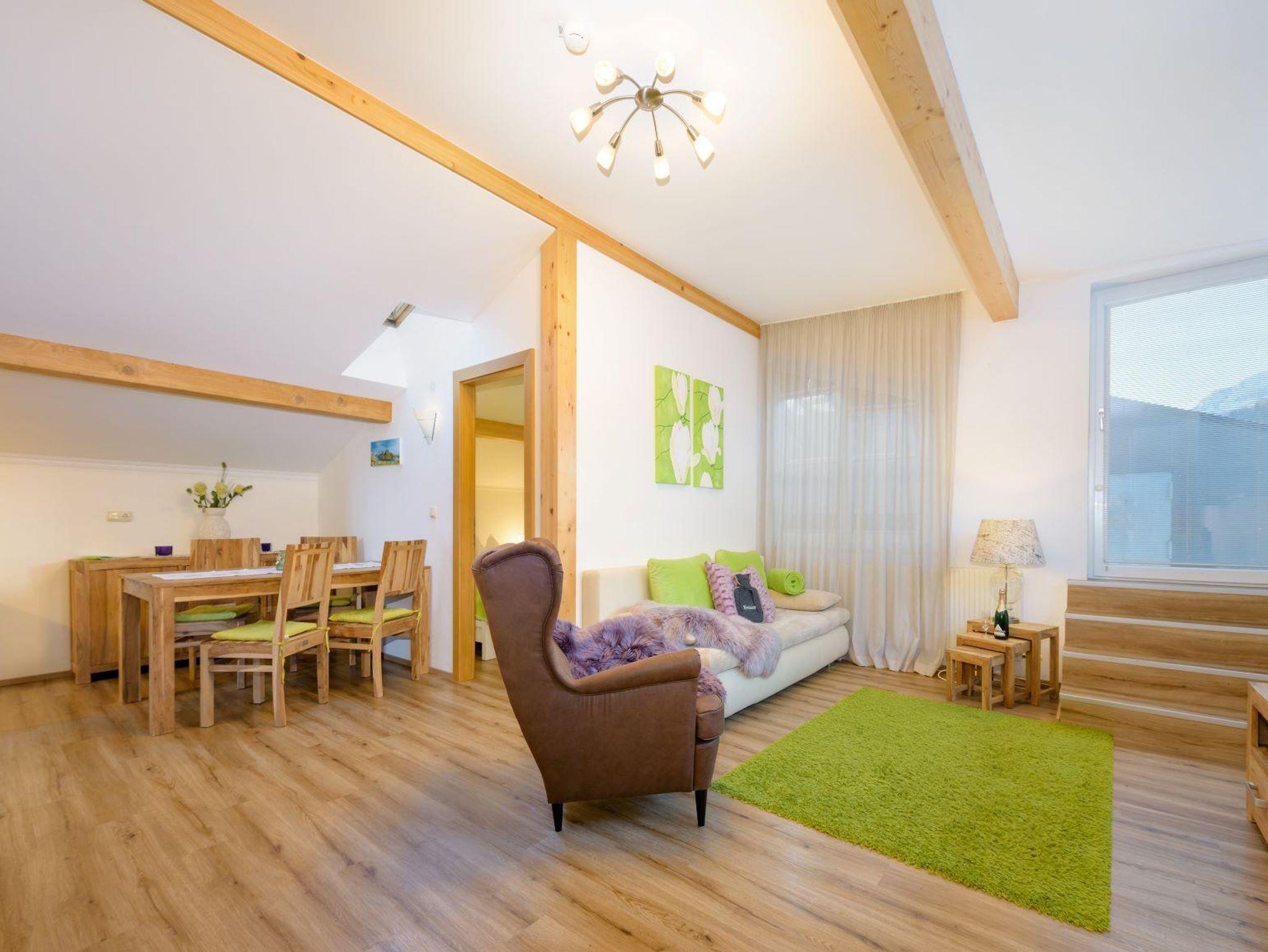 Das neue Penthouse verfügt über ein getrenntes Schlafzimmer, Wohnraum, Küchenzeile, Badezimmer, getrenntes WC und eine toll Dachterrasse mit Blick über das gesamte Tal.