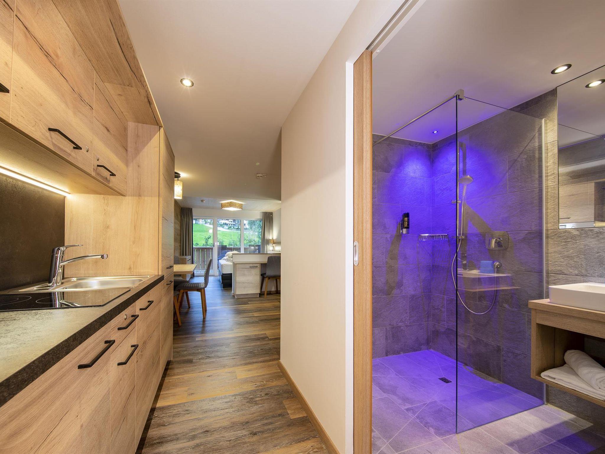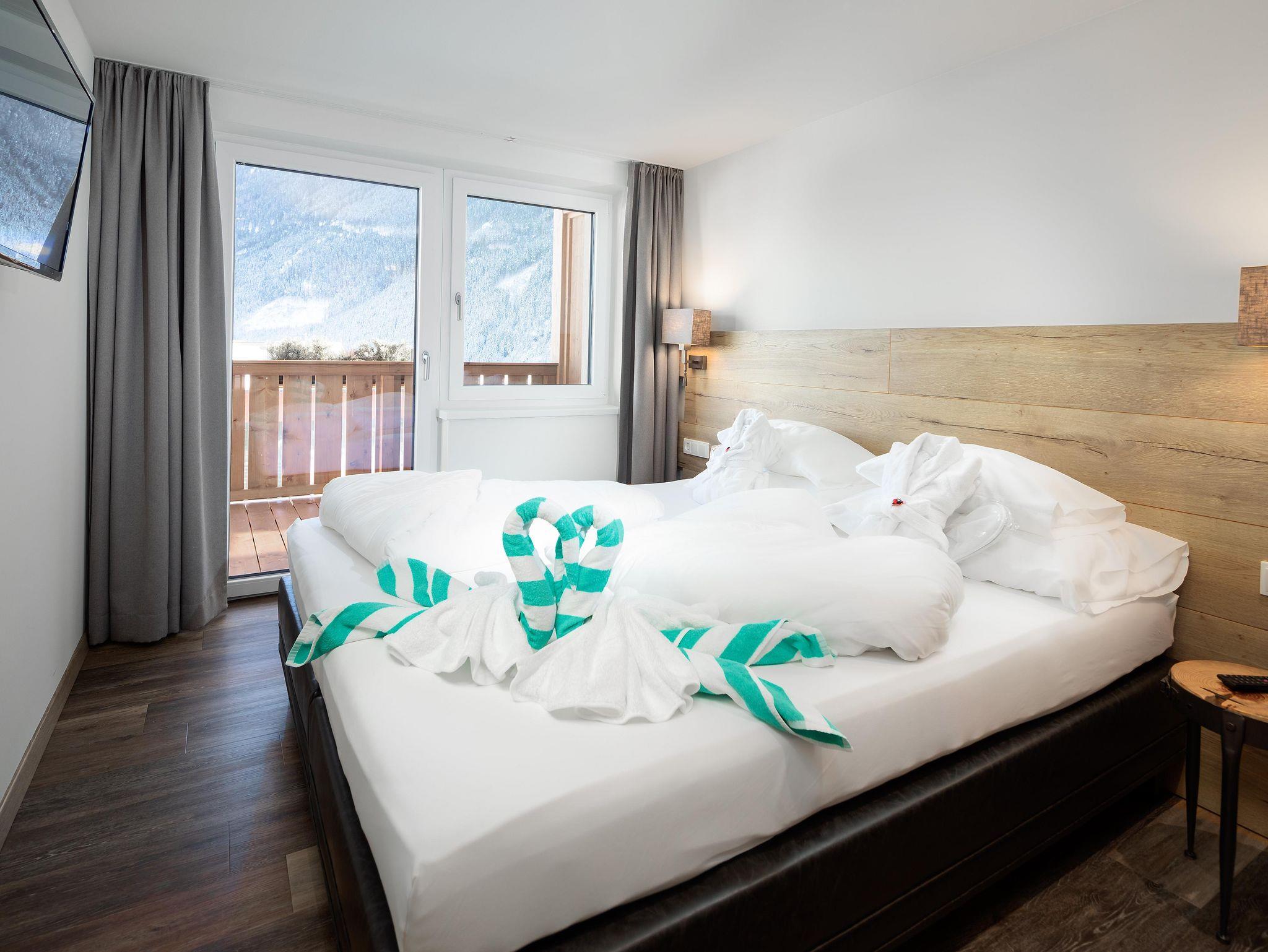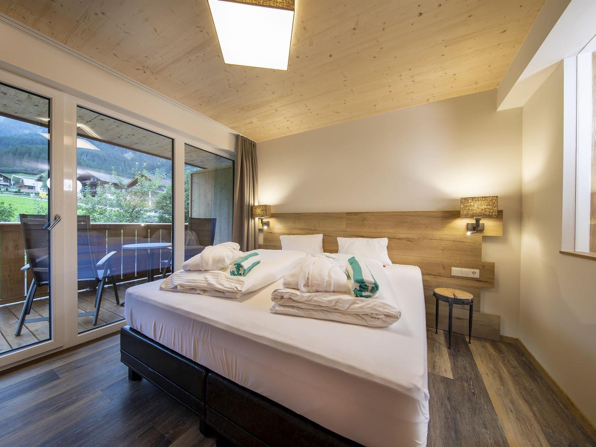Die im Frühjahr 2019 komplett neu renovierten Hotelappartements (1-4 Personen) im alpin-modernen Design wurden mit natürlichen Materialien ausgestattet. Von Ihrem Balkon oder der Terrasse aus genießen Sie den Panoramablick auf die Krimmler Wasserfälle. Die allergikergerechte Ausstattung sorgt für Wohnkomfort mit höchsten Ansprüchen. Das Hotelappartement wird optisch in Wohn- und Schlafraum getrennt
