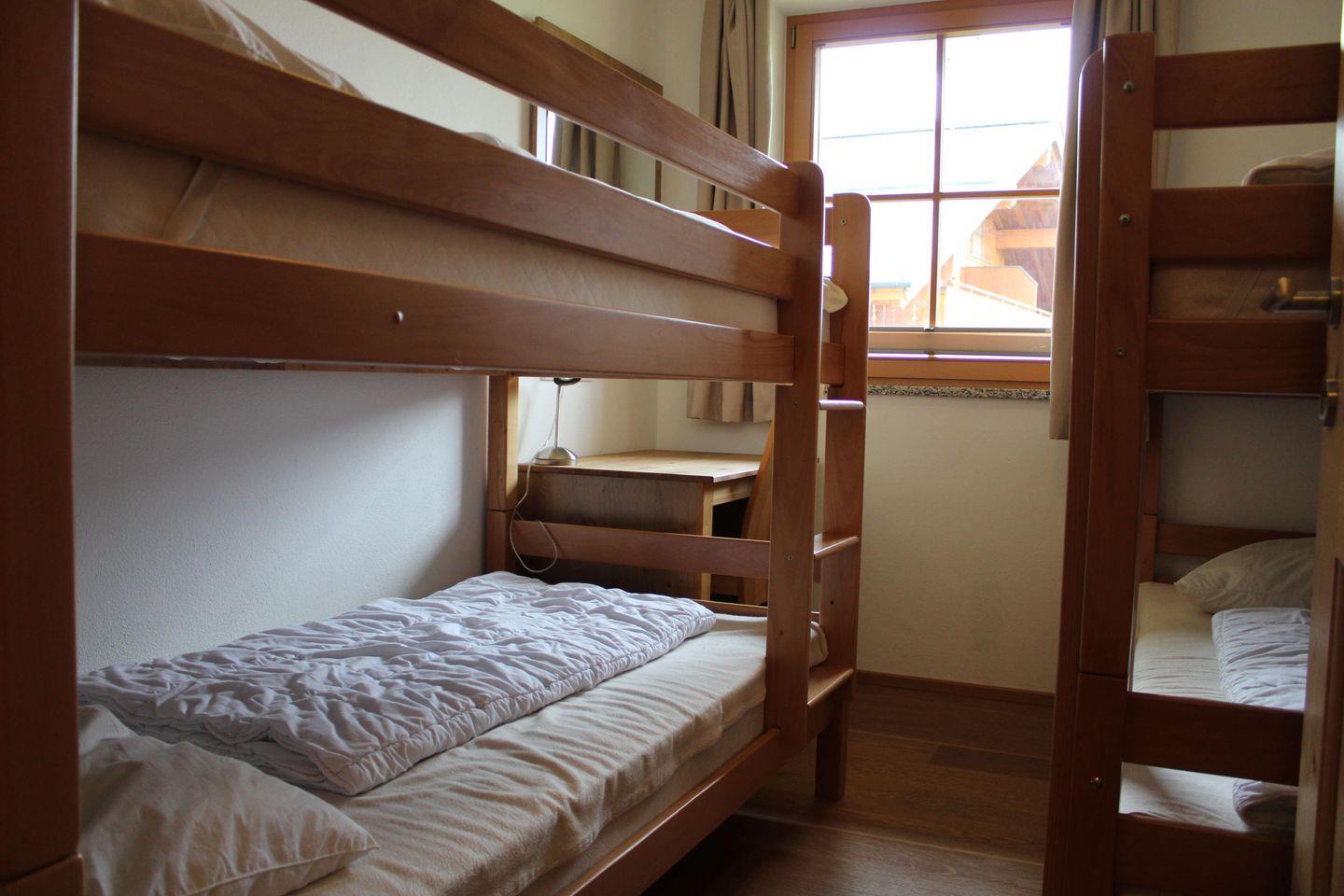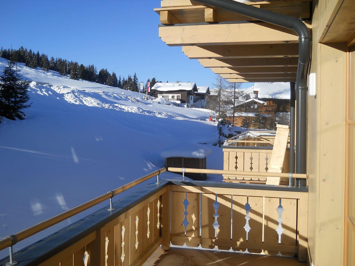 Die helle Wohn-Küche mit vielen Fenstern schafft einen schönen Rundum-Blick und ergibt zusammen mit dem Balkon zum Sonne tanken auch außerhalb der Skisaison eine attraktive Unterkunft für Gruppen oder Familien.