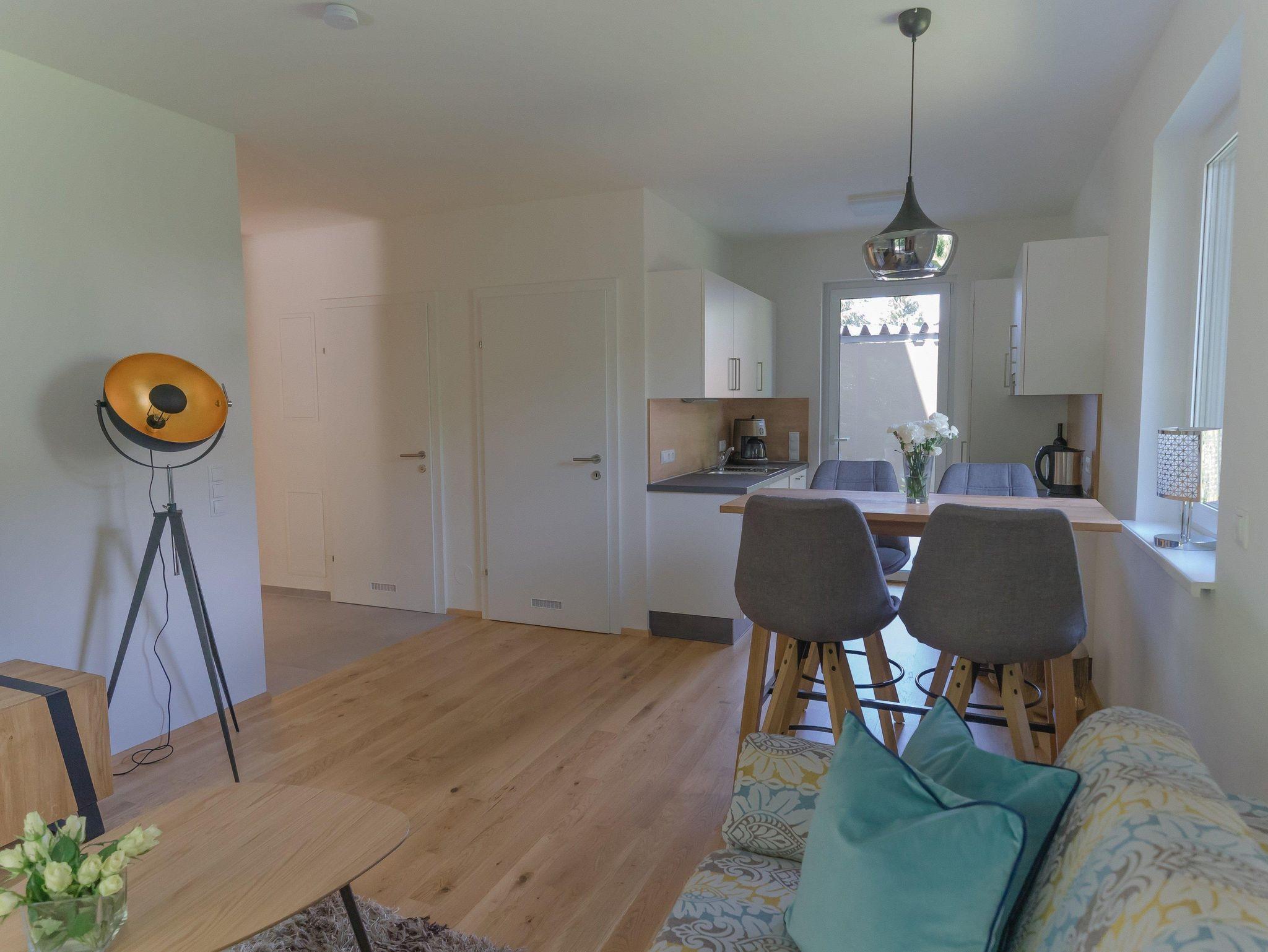 Das moderne und neu errichtete Haus mit 10 Wohneinheiten liegt zentral und Sie können vom Apartment aus zu Fuß den Ort erkunden. Zur Schiffsanlegestelle und zum Parkbad Krumpendorf sind es nur wenige Schritte. Das Richtung Nord/Westen ausgerichtete Apartment (55m2) befindet sich im Erdgeschoss und verfügt über 2 Terrassen mit eigener großzügiger Gartenfläche.