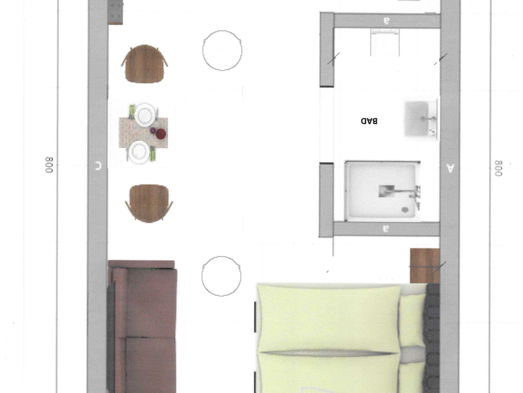 Ausstattung: Wohnküche mit Kochnische und Esstisch, Zimmer (Doppelbett) mit Bad/WC, Fernseher, WLAN, nach Osten ausgerichteter Balkon