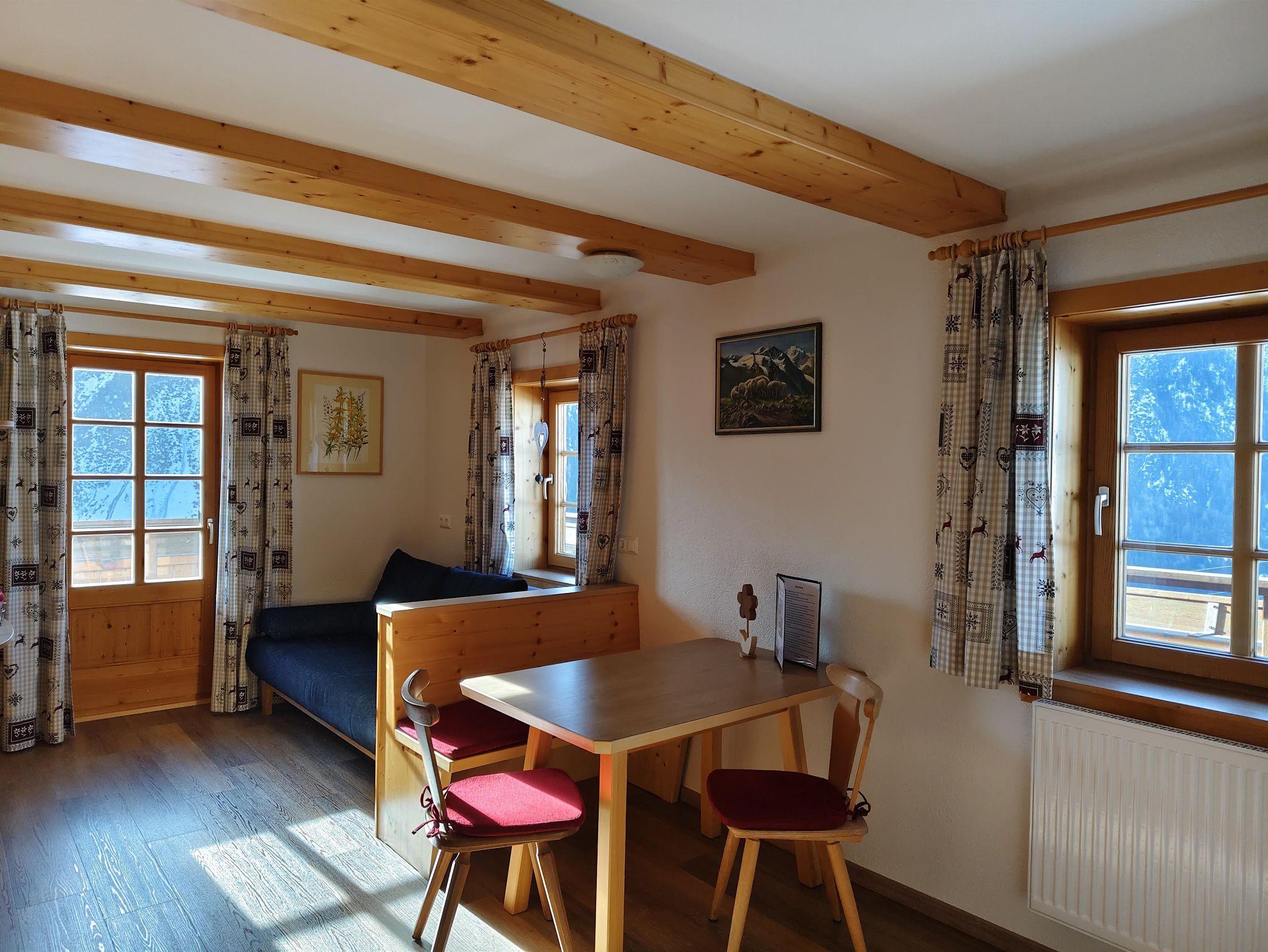 Wir vermieten drei liebevoll renovierte Ferienwohnungen, die Platz für bis zu drei Erwachsene oder für zwei Erwachsene und bis zu zwei Kinder (mit Ausziehcouch) bieten. Das alpine Flair unserer Unterkünfte, kombiniert mit modernem Komfort, schafft eine gemütliche Atmosphäre, in der Sie sich vom ersten Moment an wohlfühlen. Besonders Familien, Naturliebhaber und Ruhesuchende schätzen die entspannte Umgebung und die Nähe zur Natur.