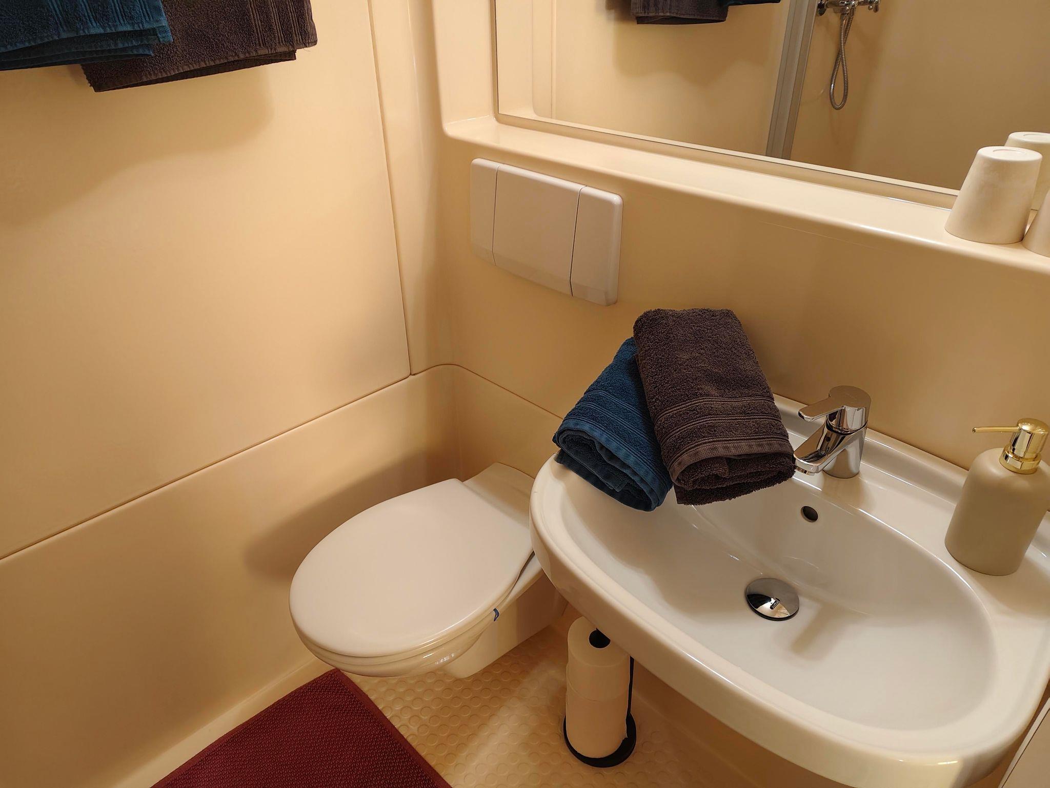 Ausstattung: Wohnküche mit Kochnische, Esstisch und Couch, Fernseher, WLAN, Zimmer (Doppelbett) mit Bad/WC, nach Süden ausgerichteter Balkon